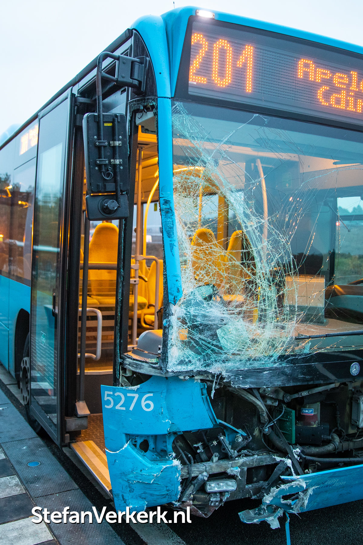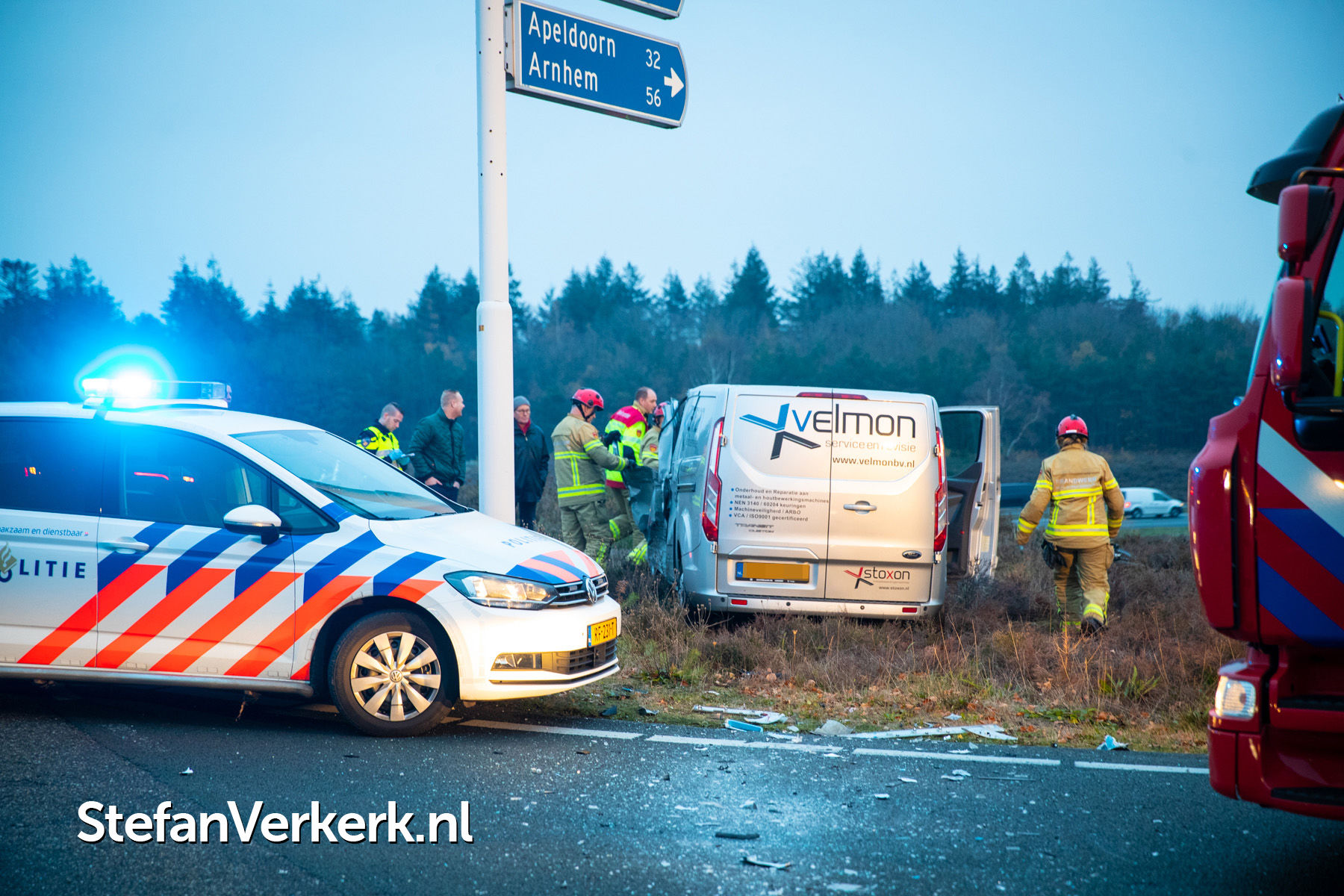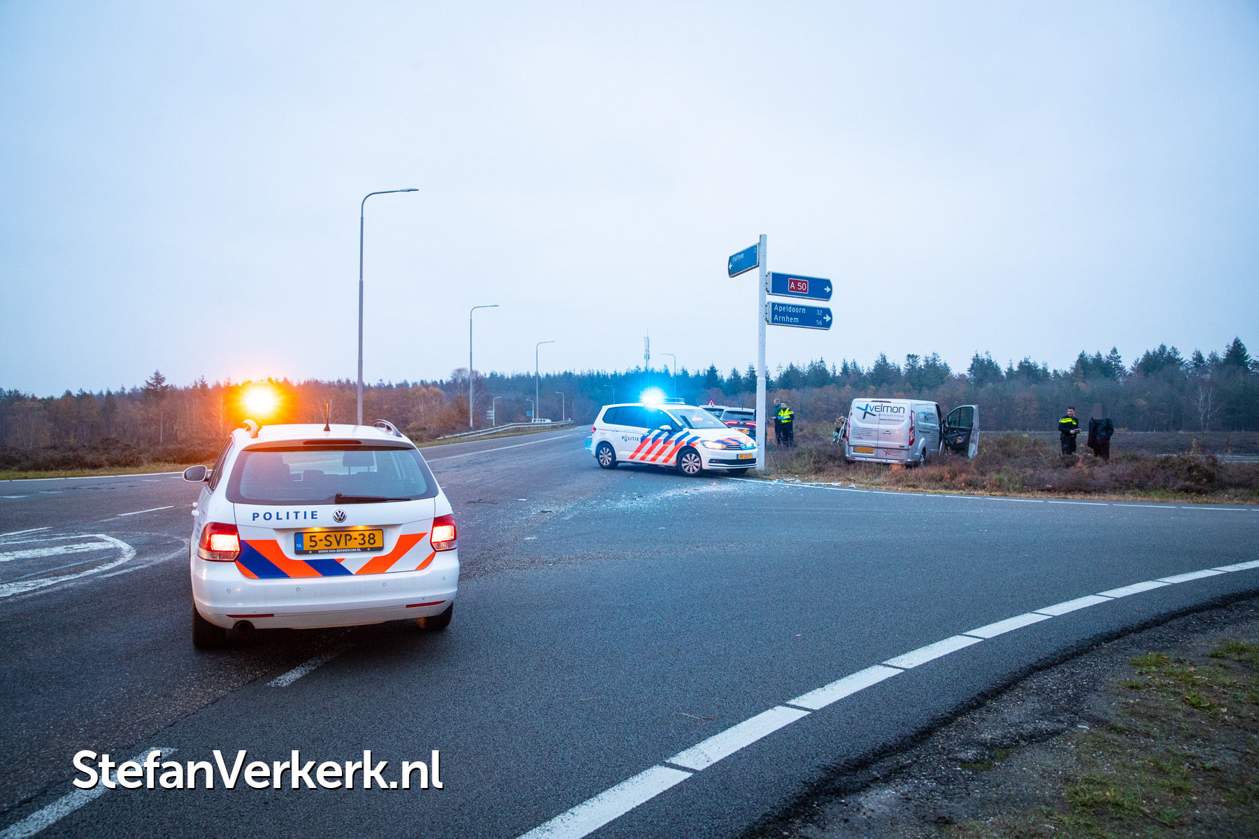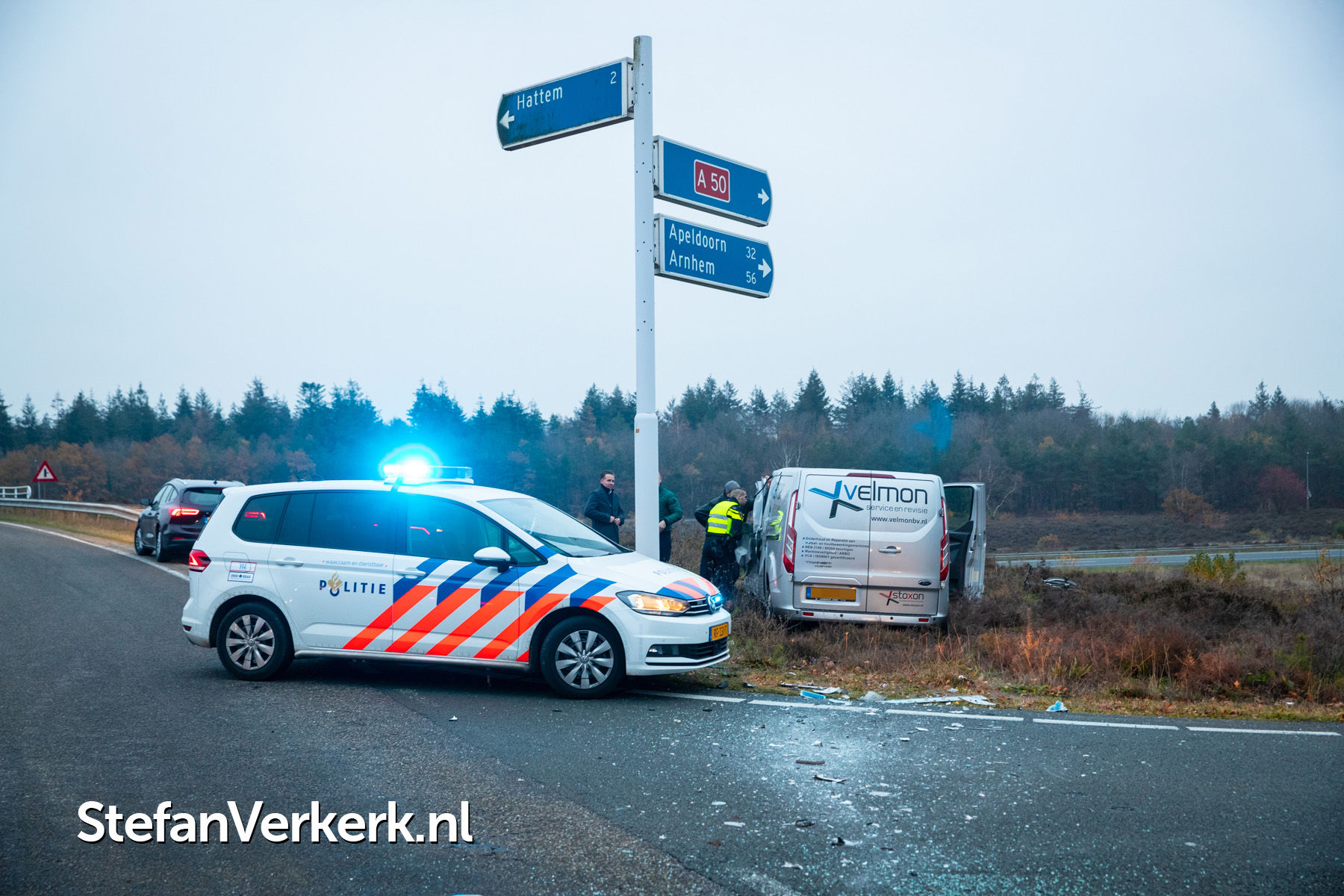 Foto's: Ongeval lijnbus - bedrijfsbusje Hessenweg - afrit A50 Hattem