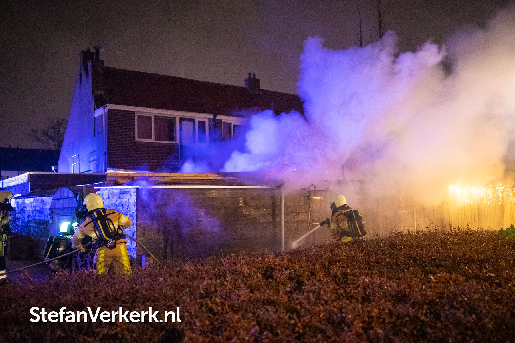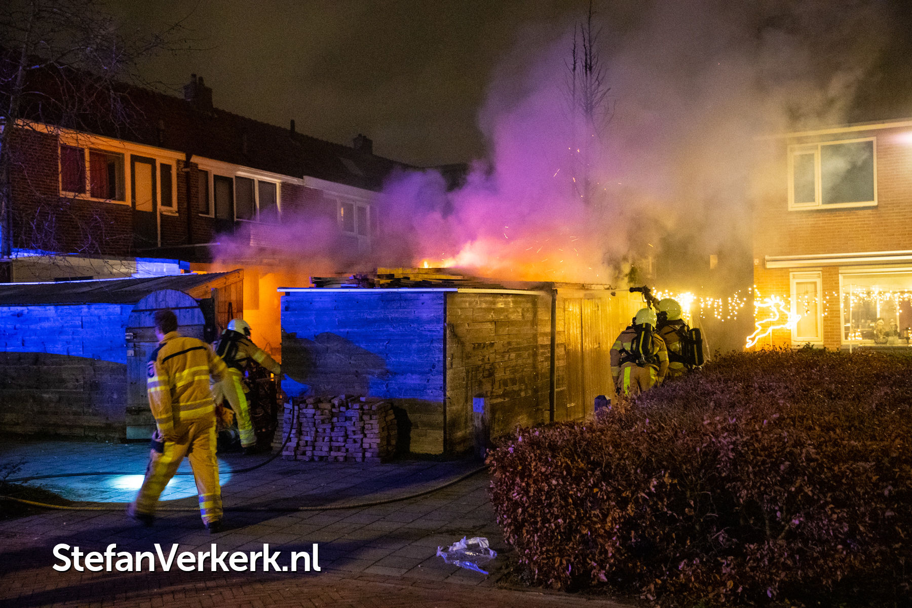 Foto's: Middelbrand schuur achter woning in brand Kleine Baan Zwolle
