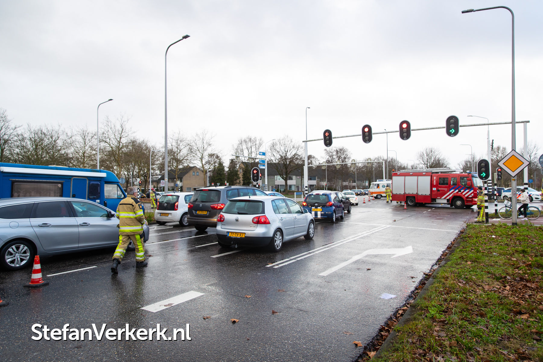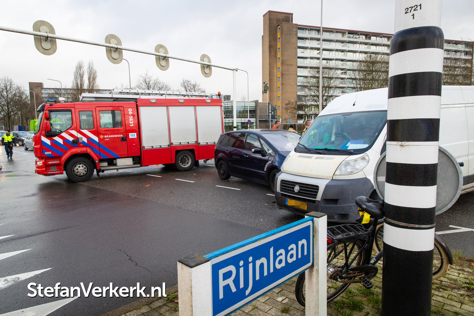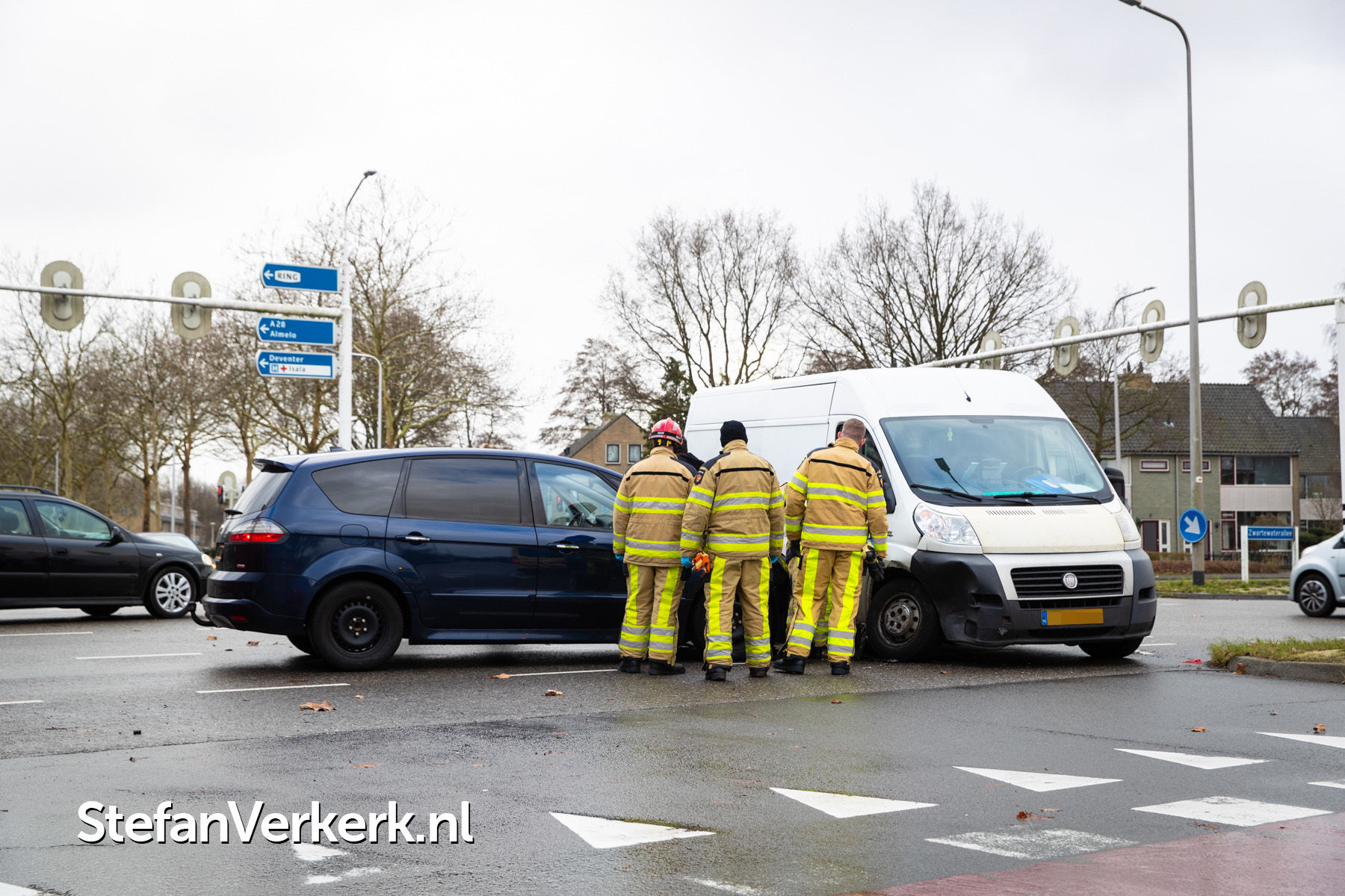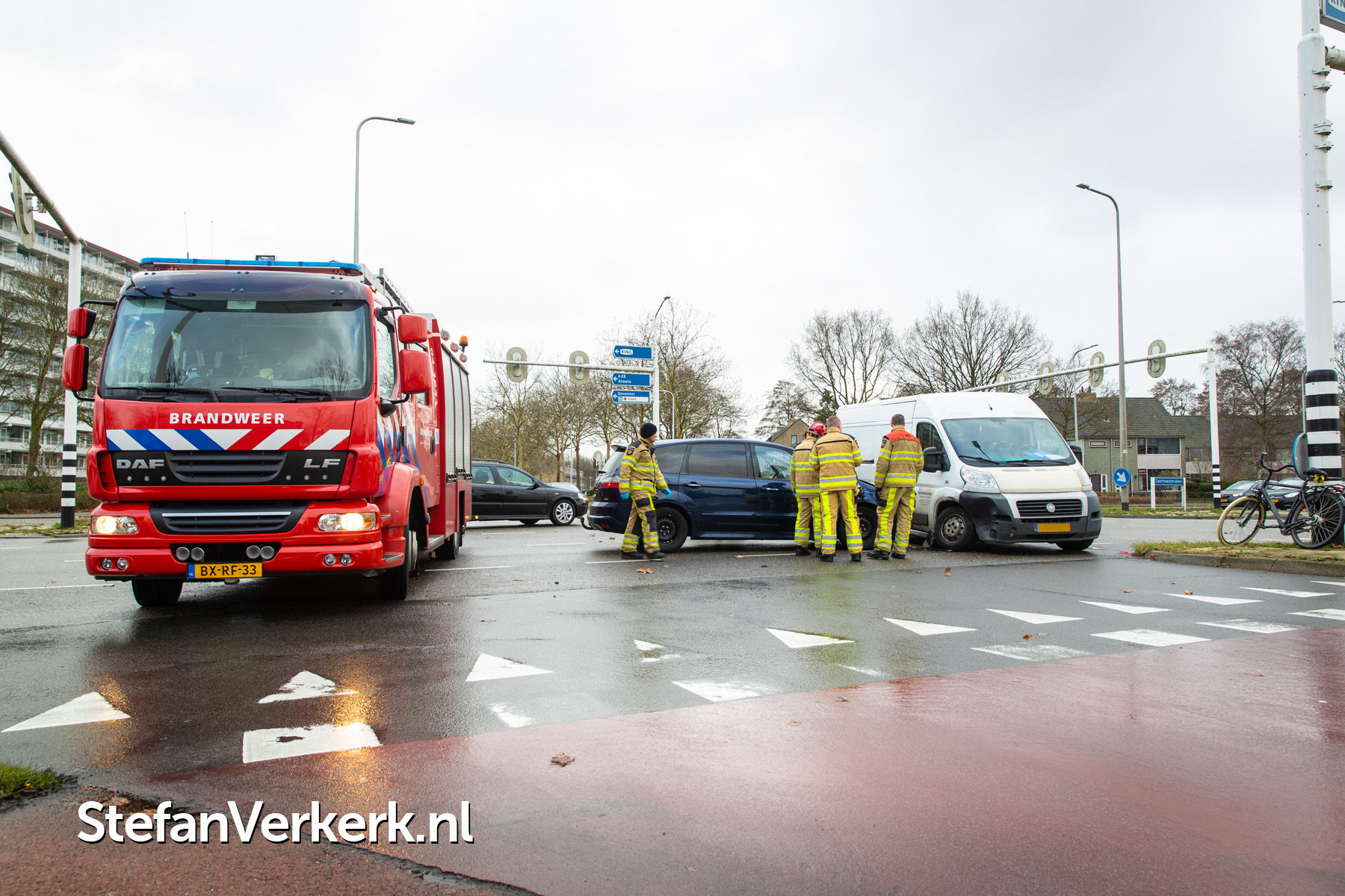 Foto's: Ongeval auto-bedrijfsbus Zwartewaterallee - Rijnlaan Zwolle