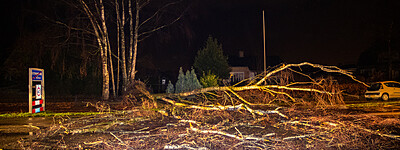 Stormschade boom over de weg Zuiderzeestraatweg Hattemerbroek