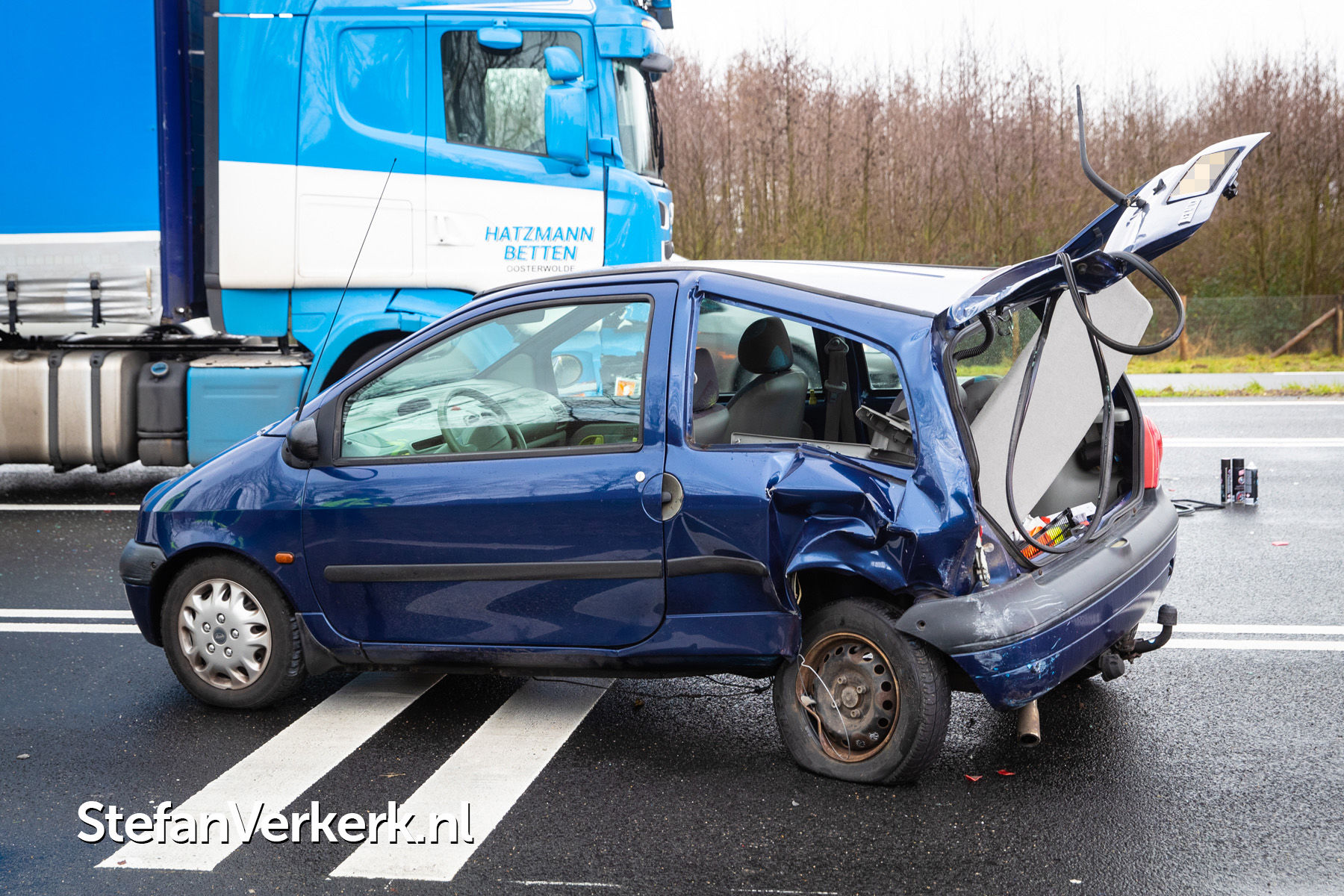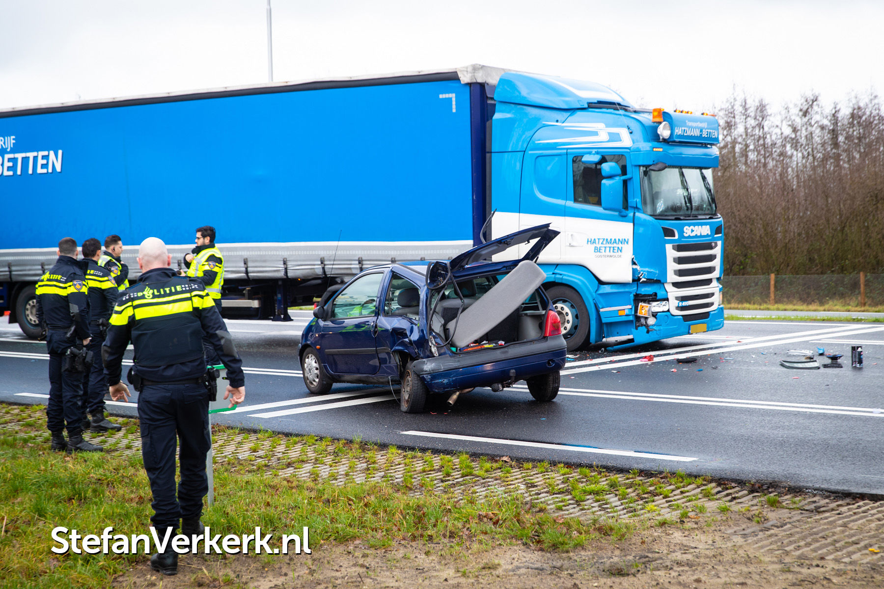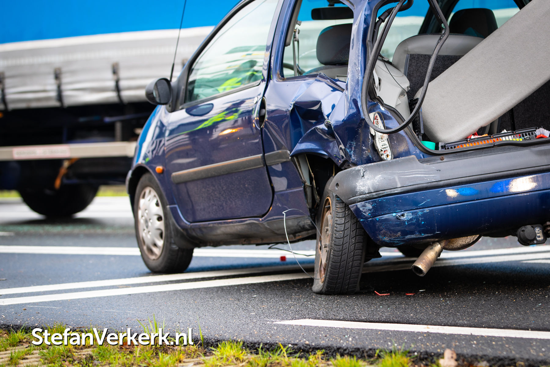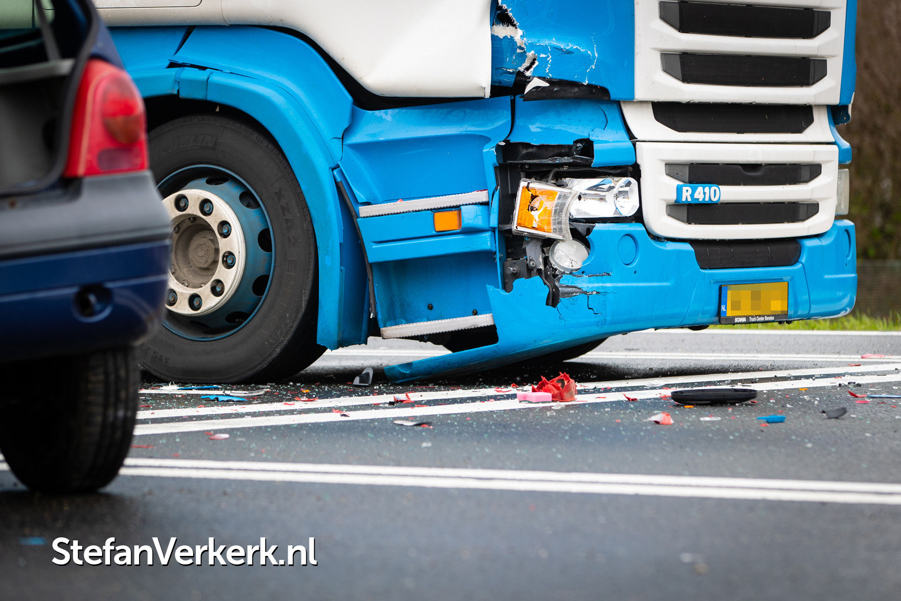 Foto's: Kopstaart aanrijding vrachtwagen - personenauto N35 Nieuwe Heinoseweg Li 8,5 Zwolle