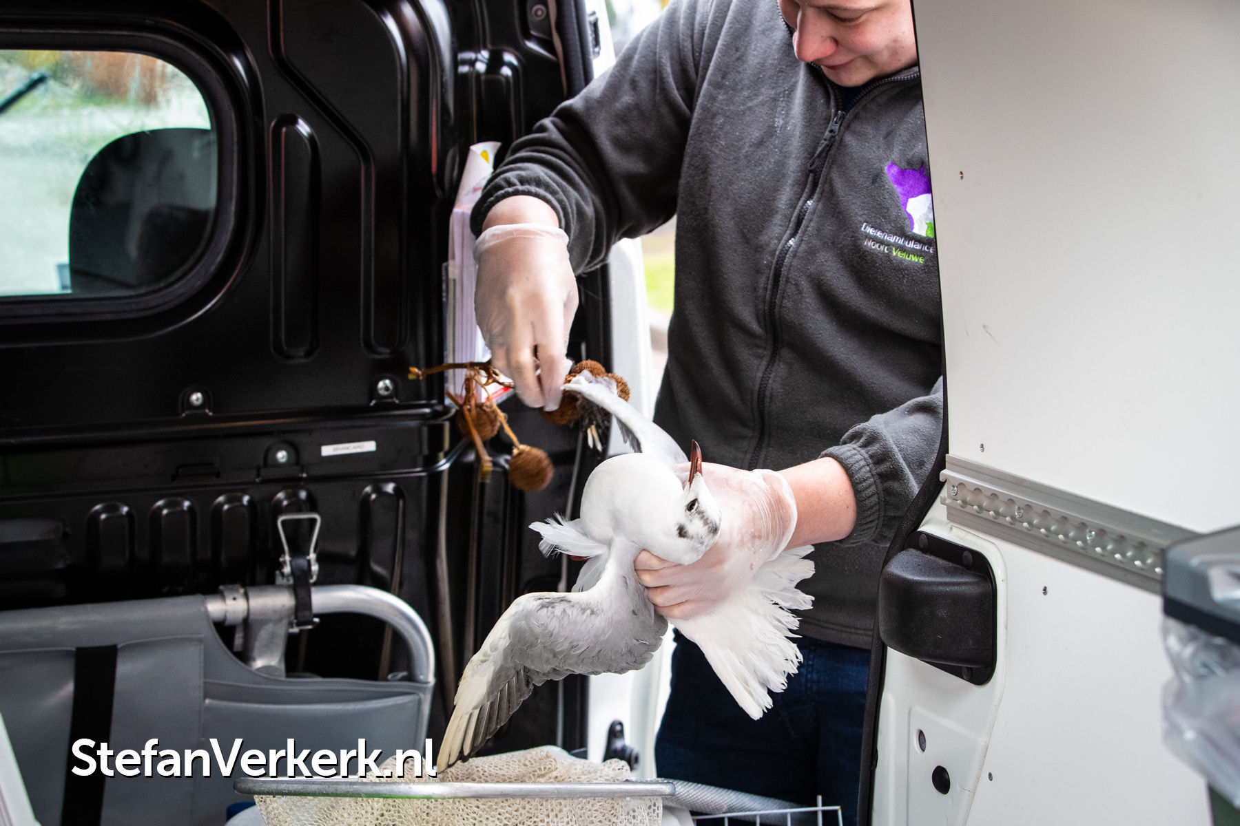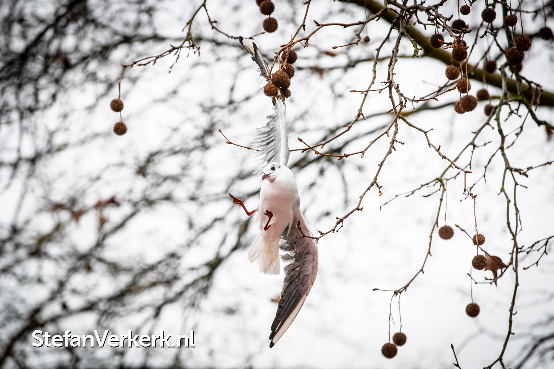 Foto's: Dierenhulp meeuw vast aan tak boom Lijsterbesweg Nunspeet