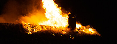 Middelbrand rietgedekte woning Brandsweg Wezep