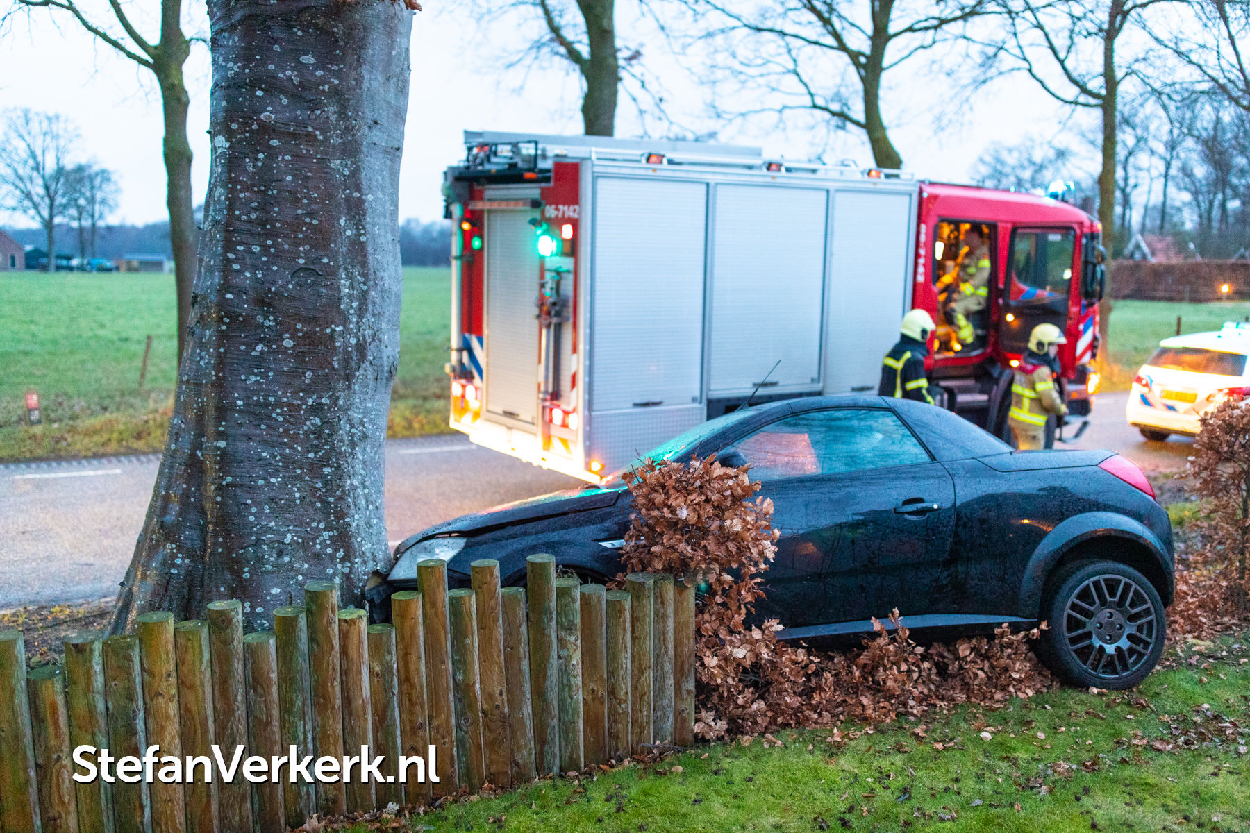 Foto's: Ongeval auto tegen boom Bovenweg Doornspijk
