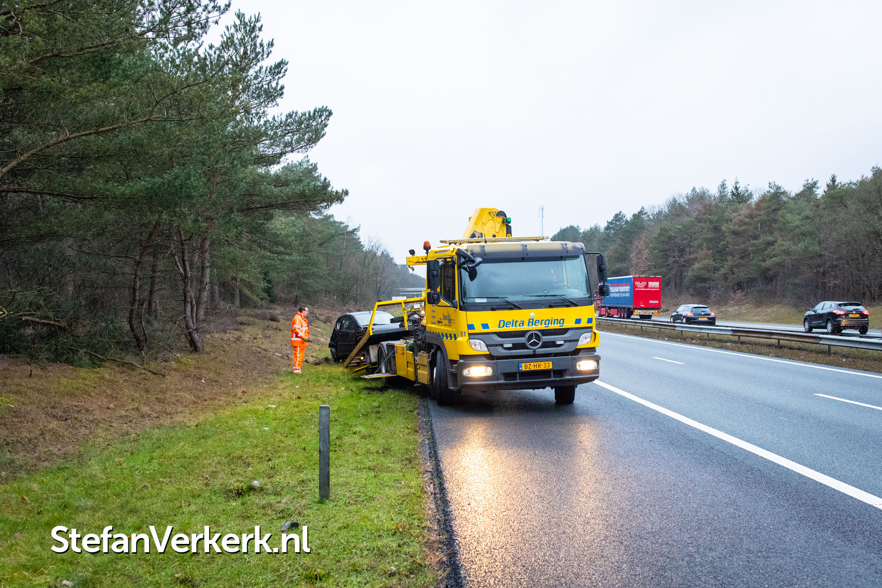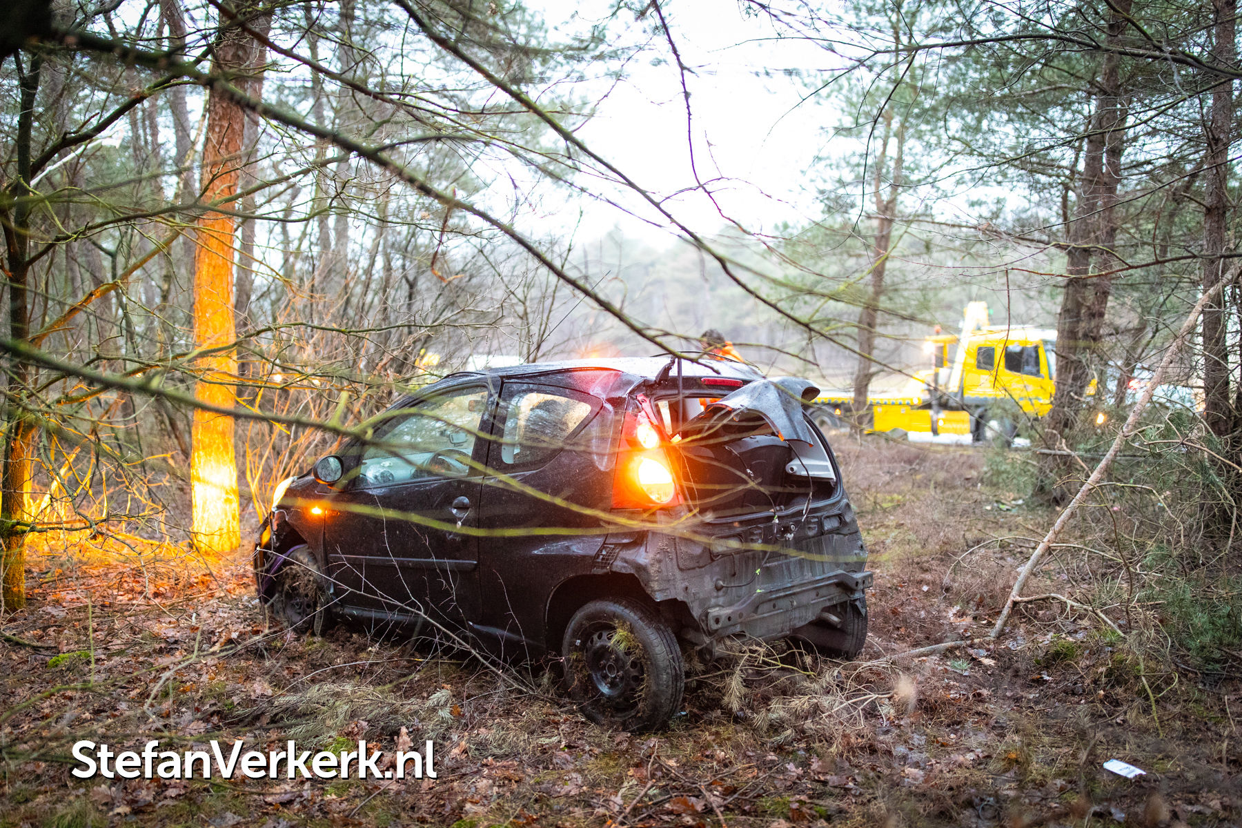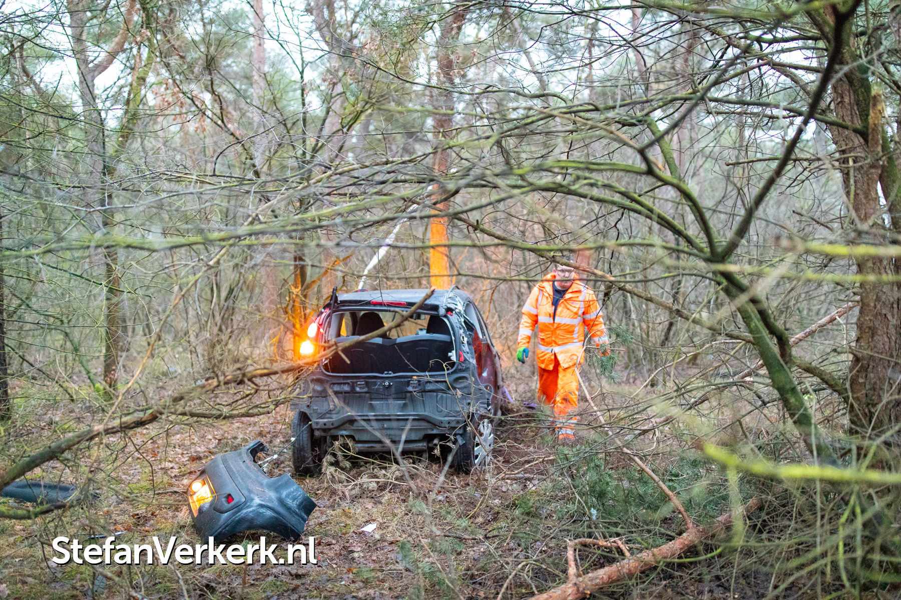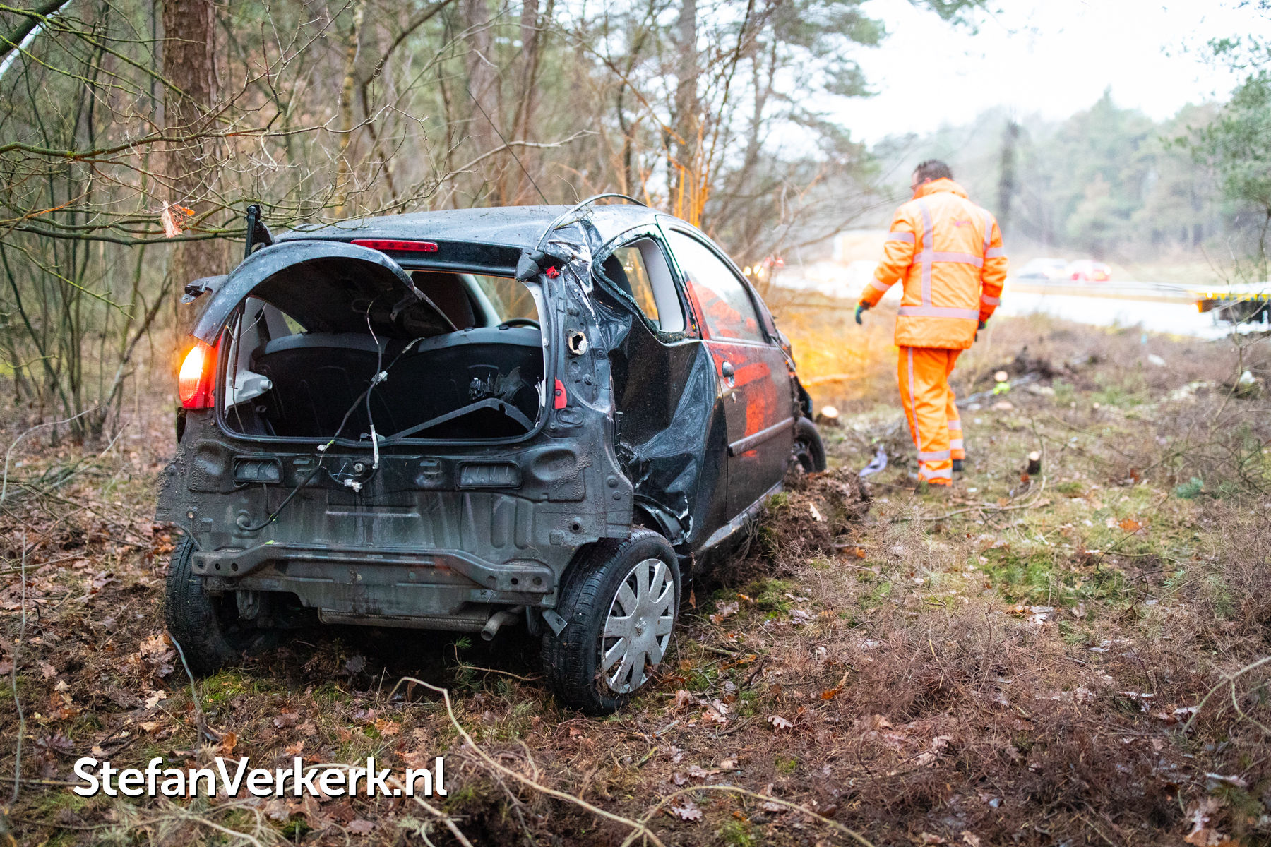 Foto's: Ongeval auto tussen de bomen in berm A28 R 64,5 Nunspeet