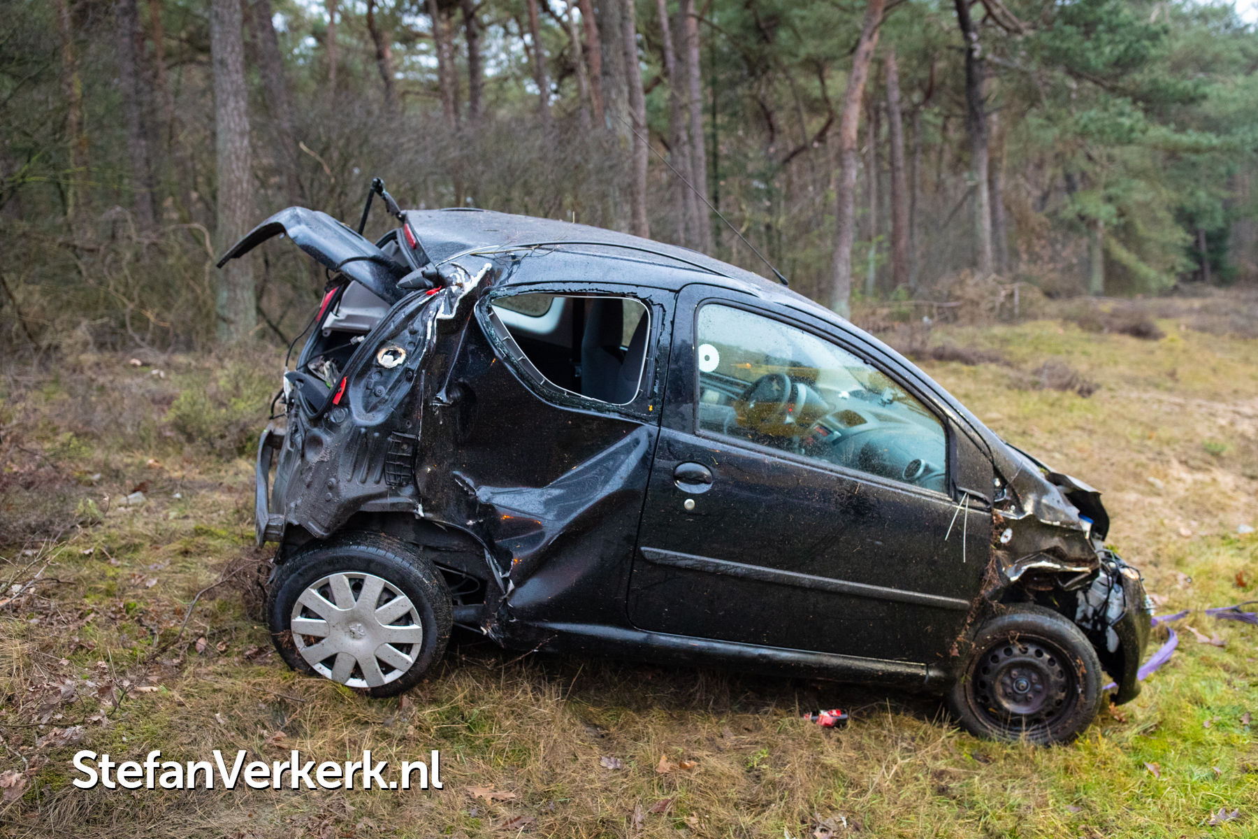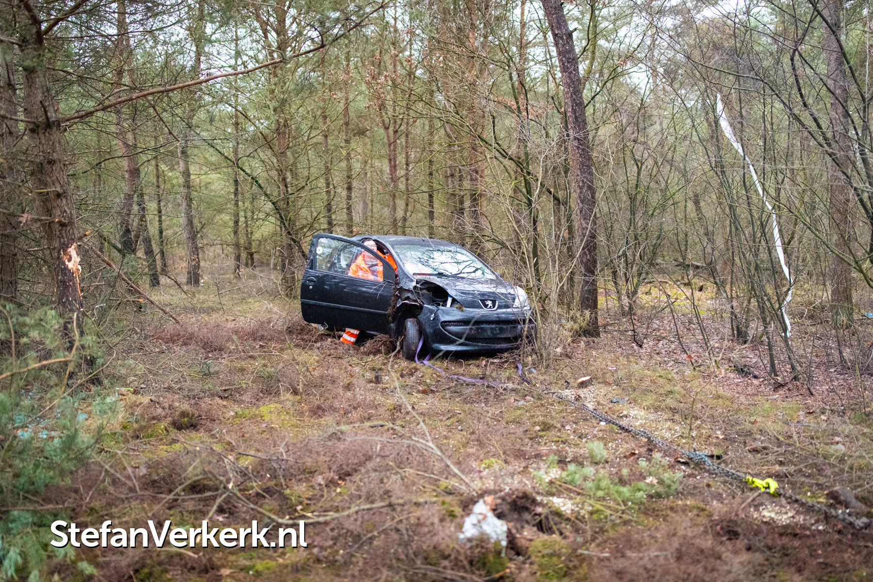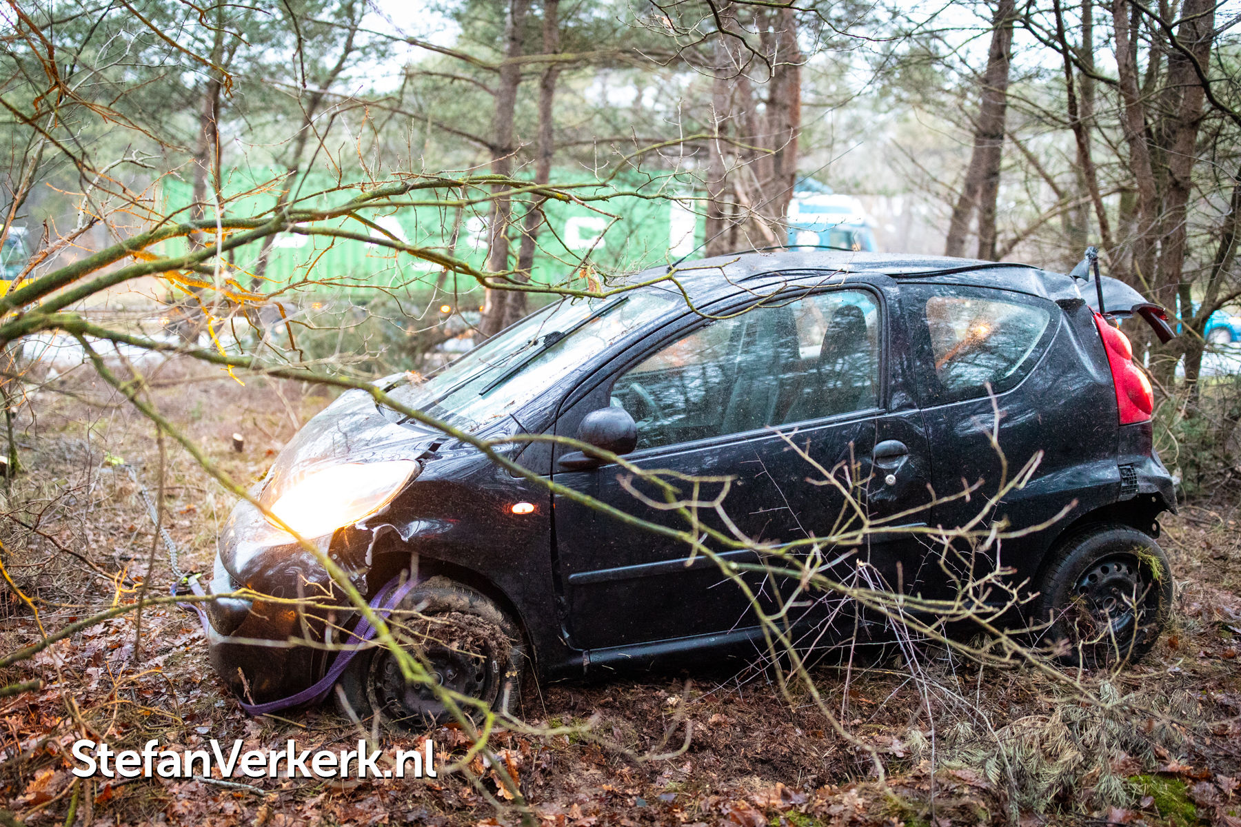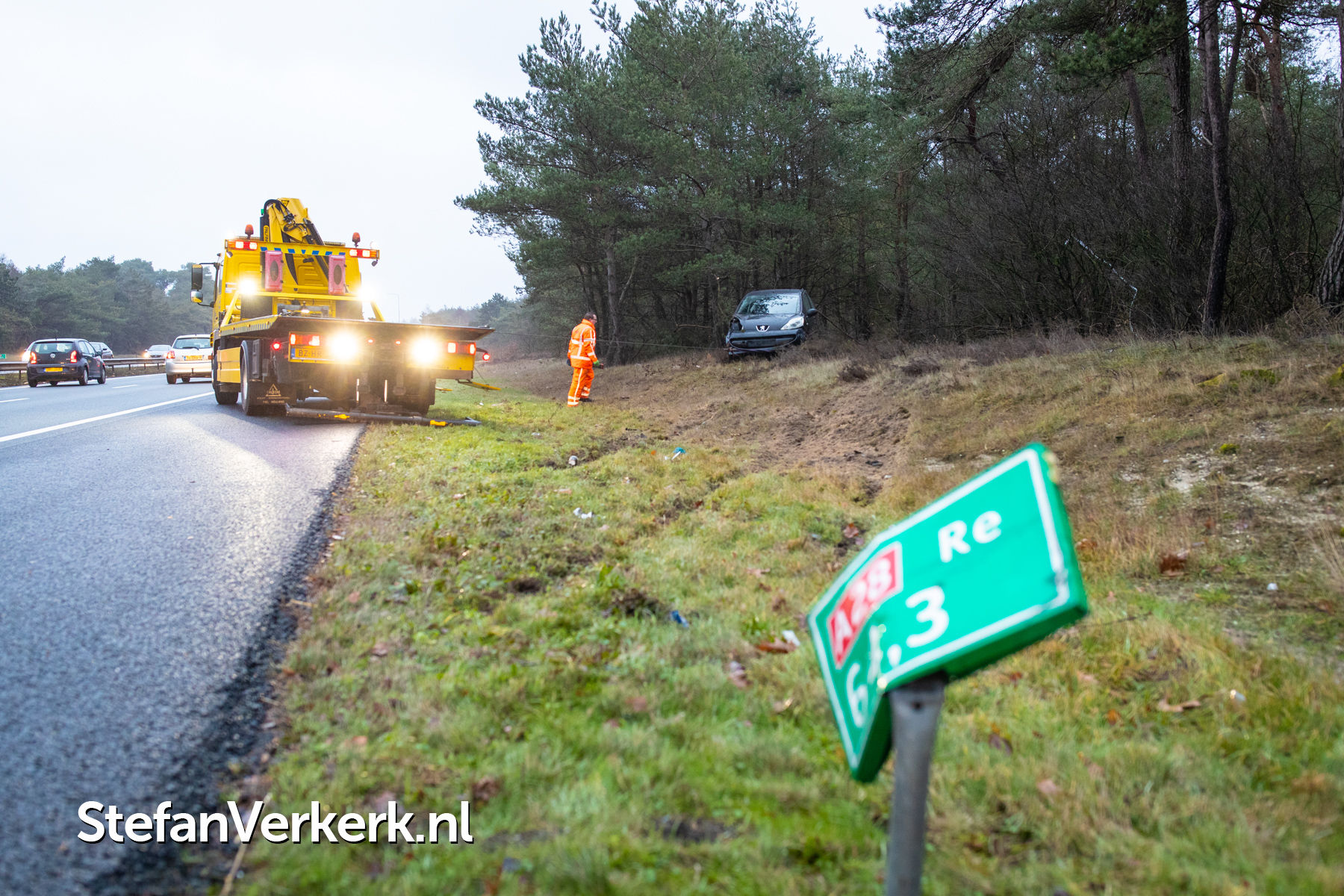 Foto's: Ongeval auto tussen de bomen in berm A28 R 64,5 Nunspeet