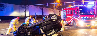 Ongeval letsel auto over de kop bij aanrijding Ceintuurbaan Zwolle
