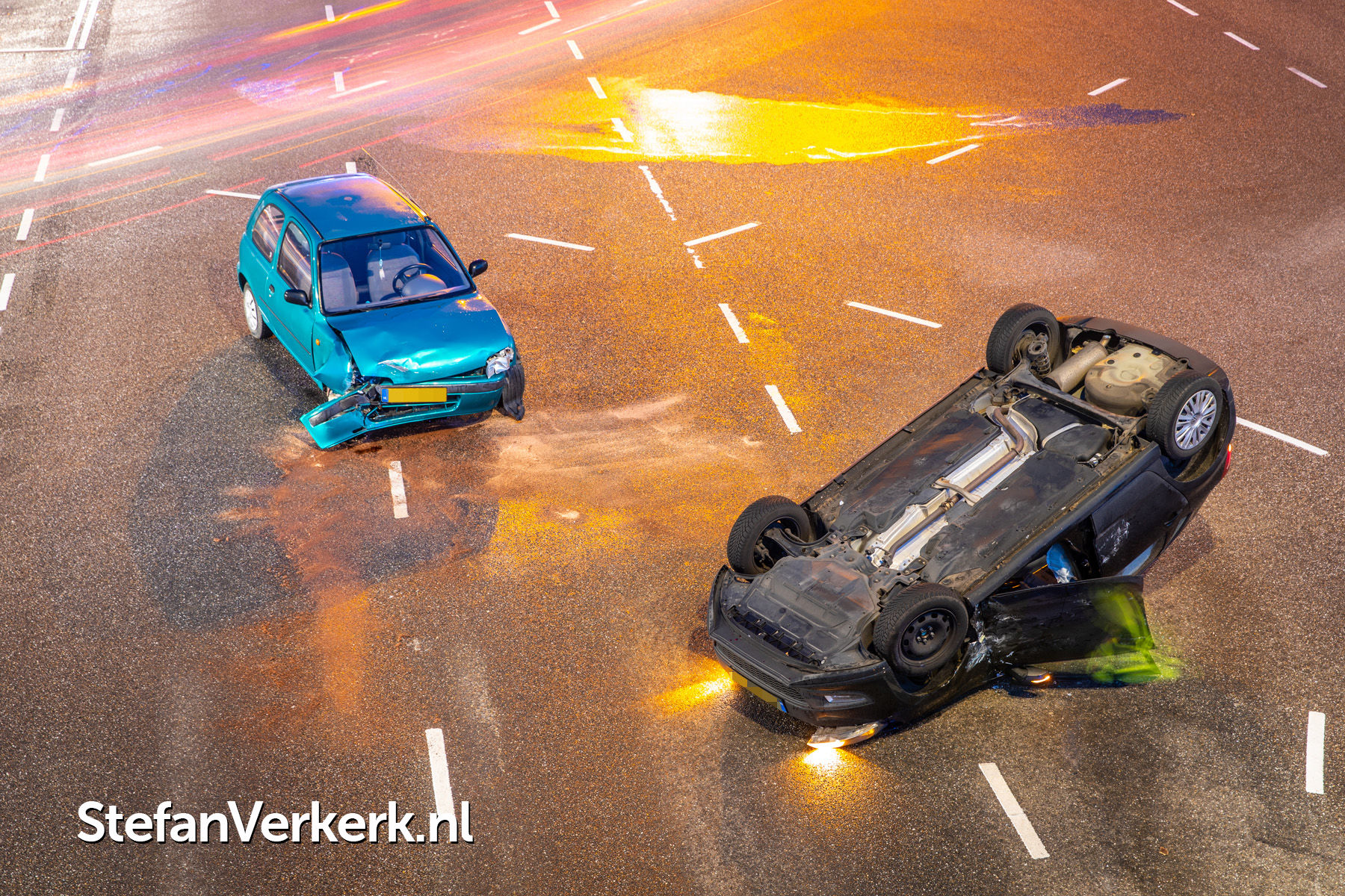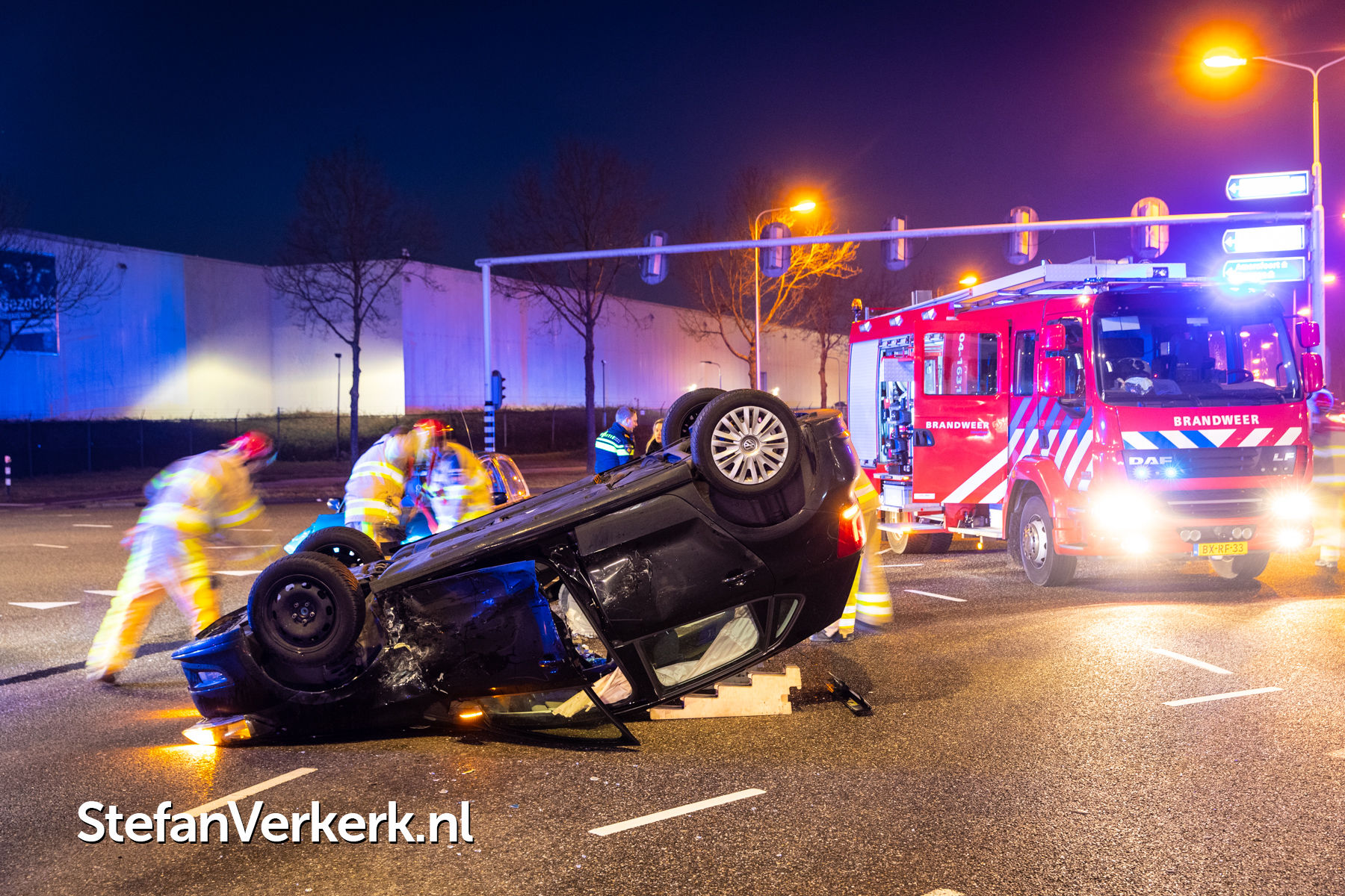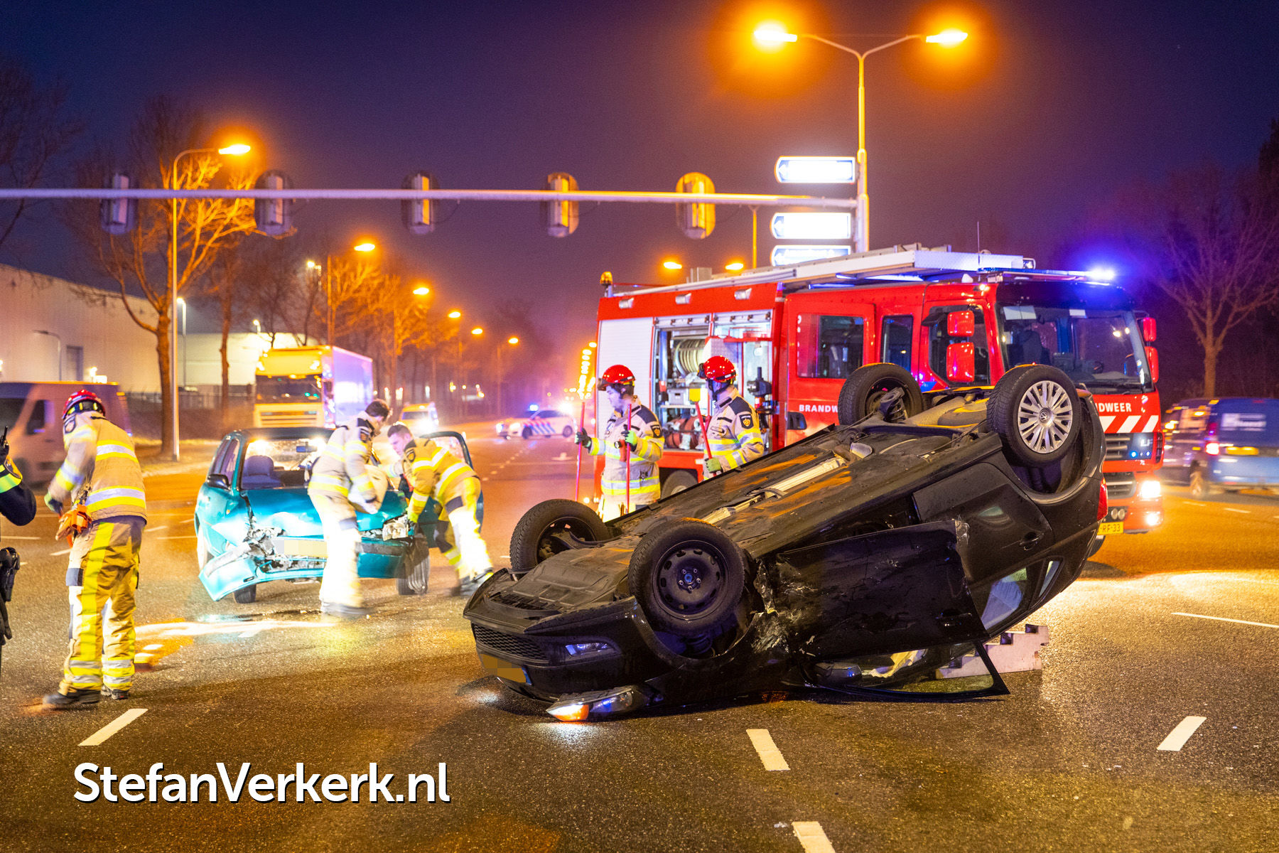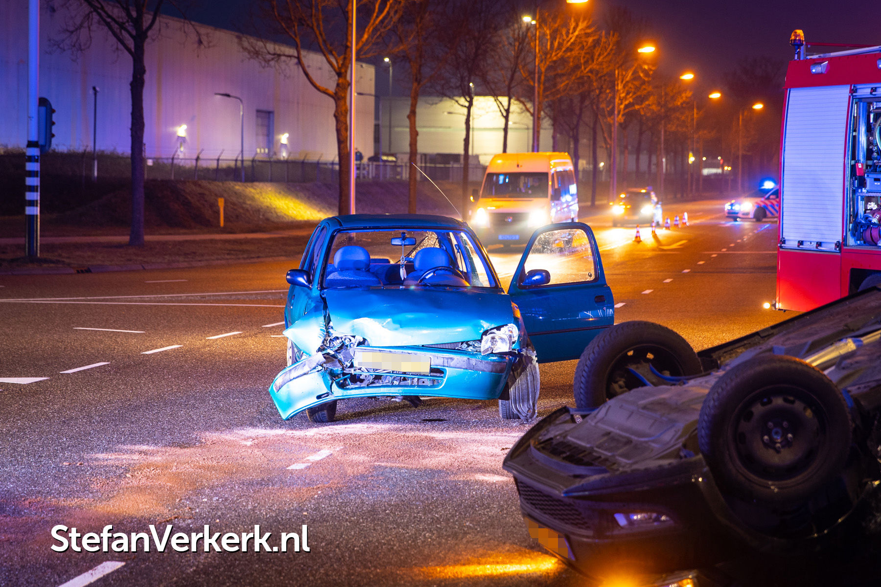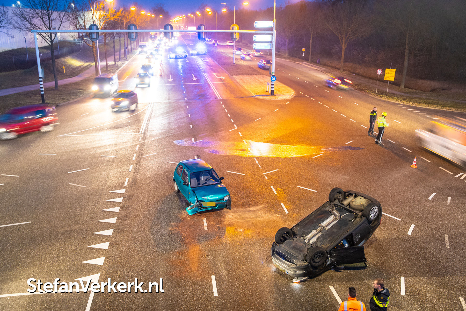 Foto's: Ongeval letsel auto over de kop bij aanrijding Ceintuurbaan Zwolle
