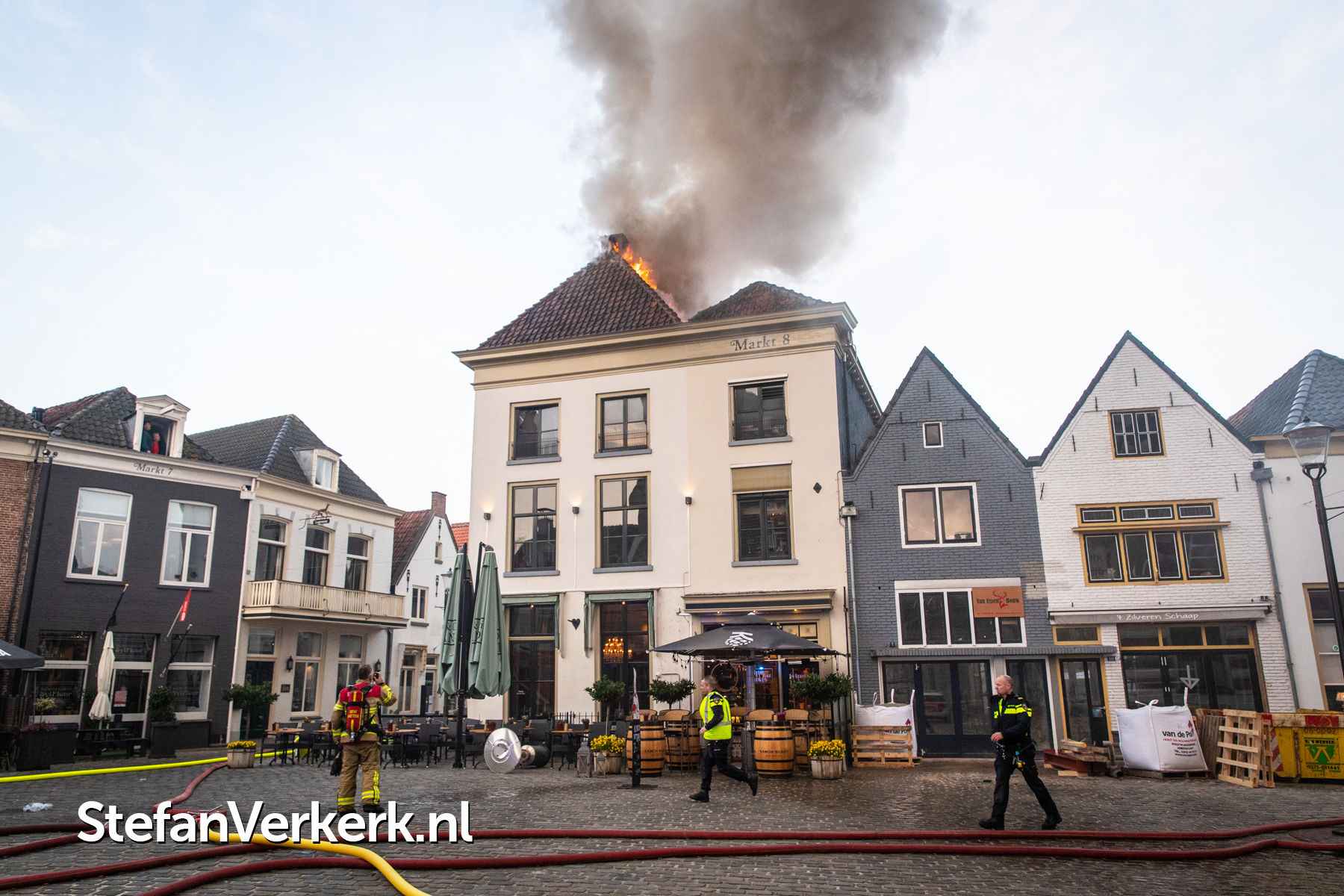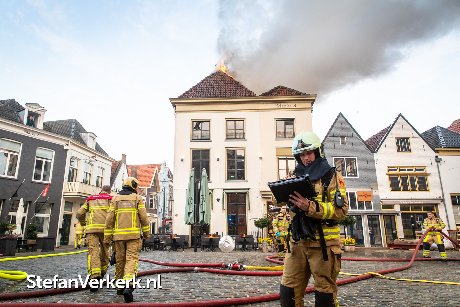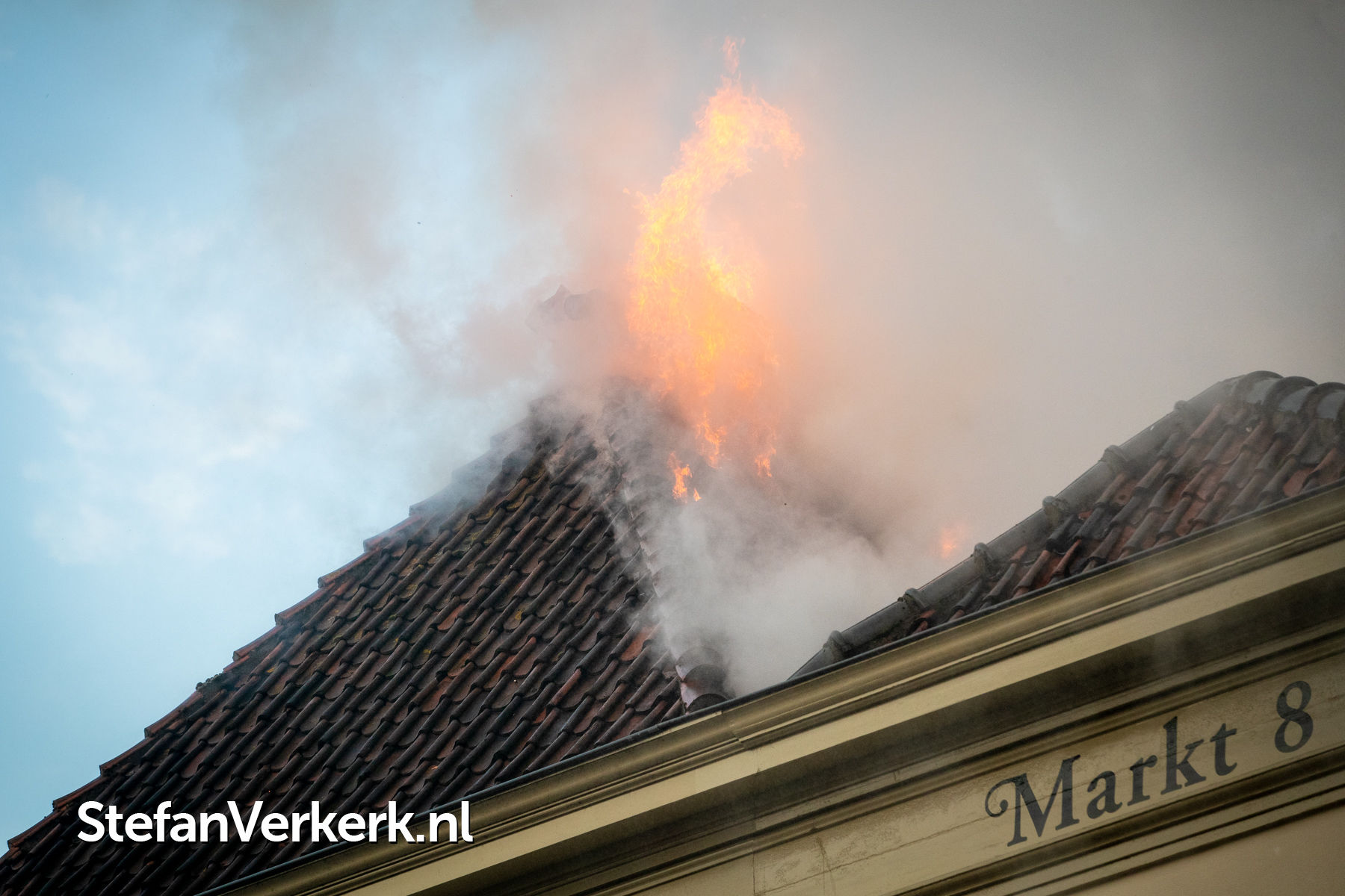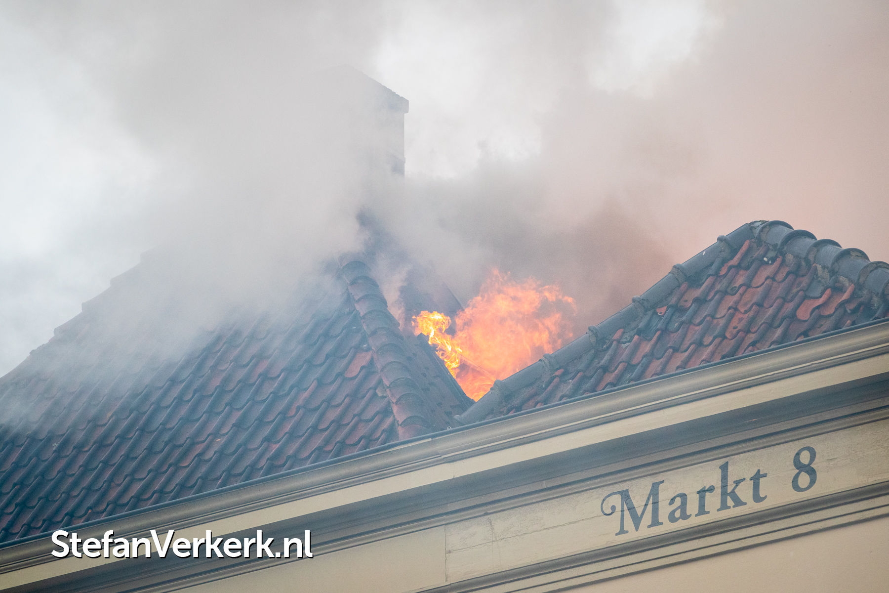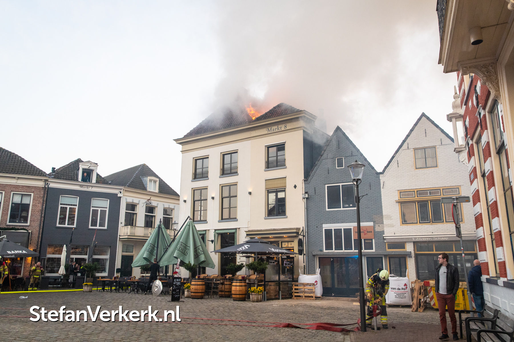 Foto's: Grote brand in dak appartement boven Bistro Daandels Kerkstraat Hattem