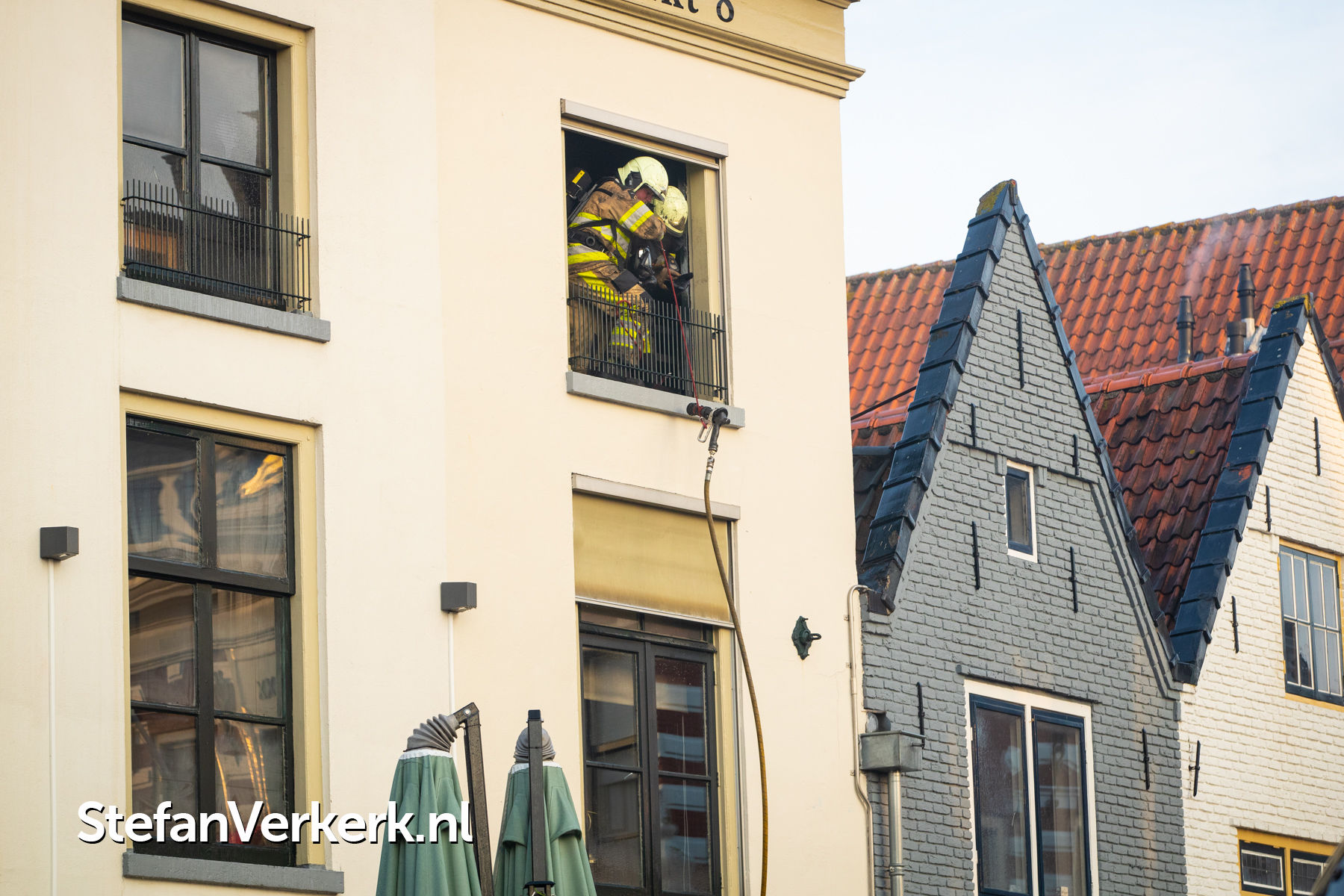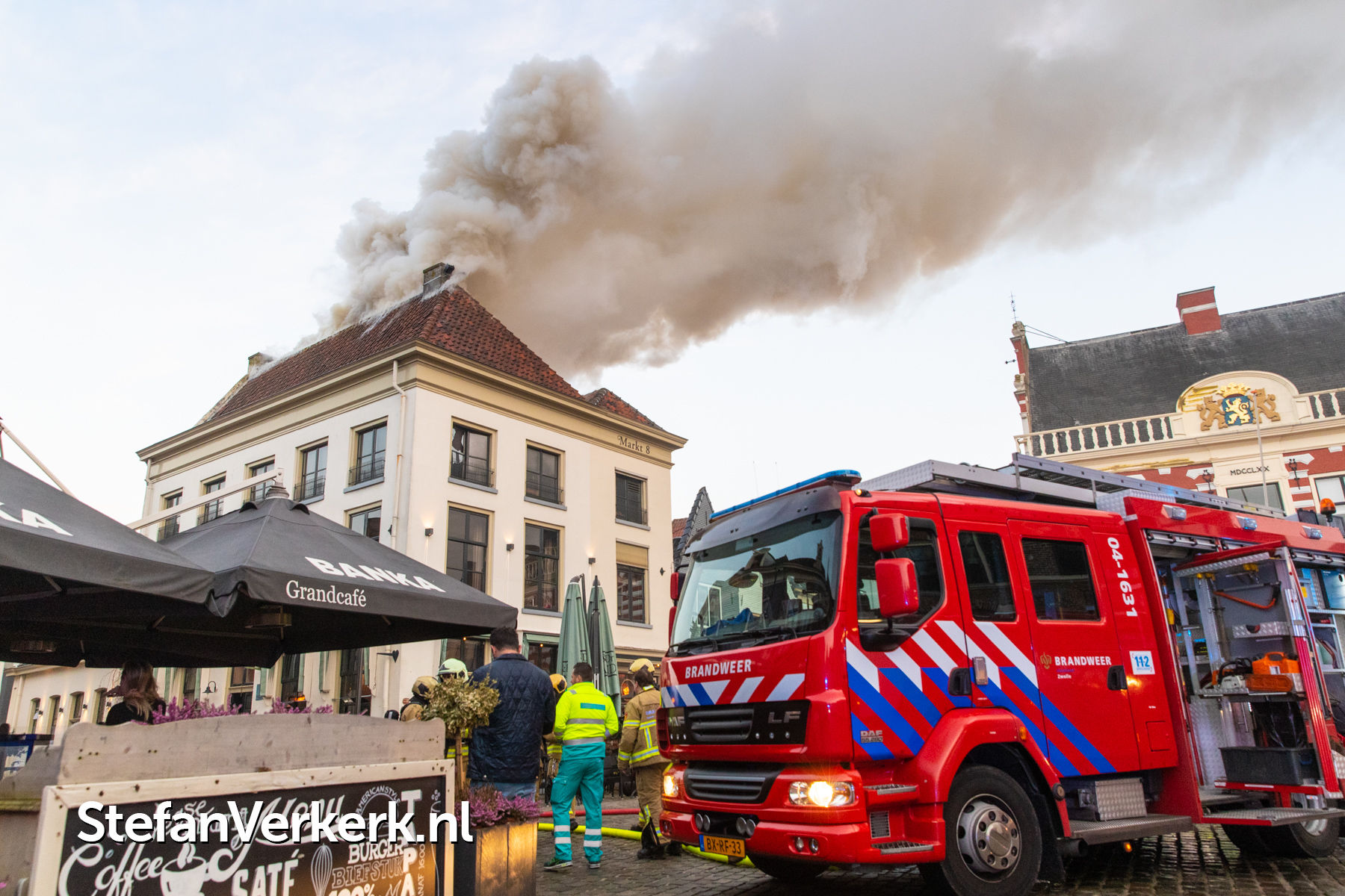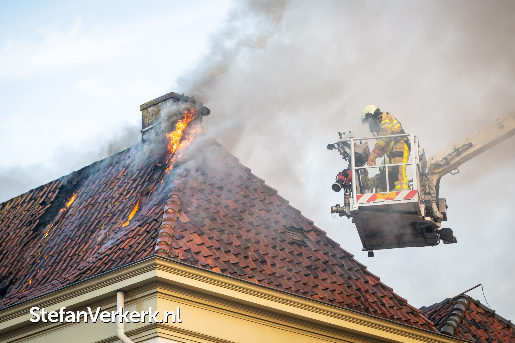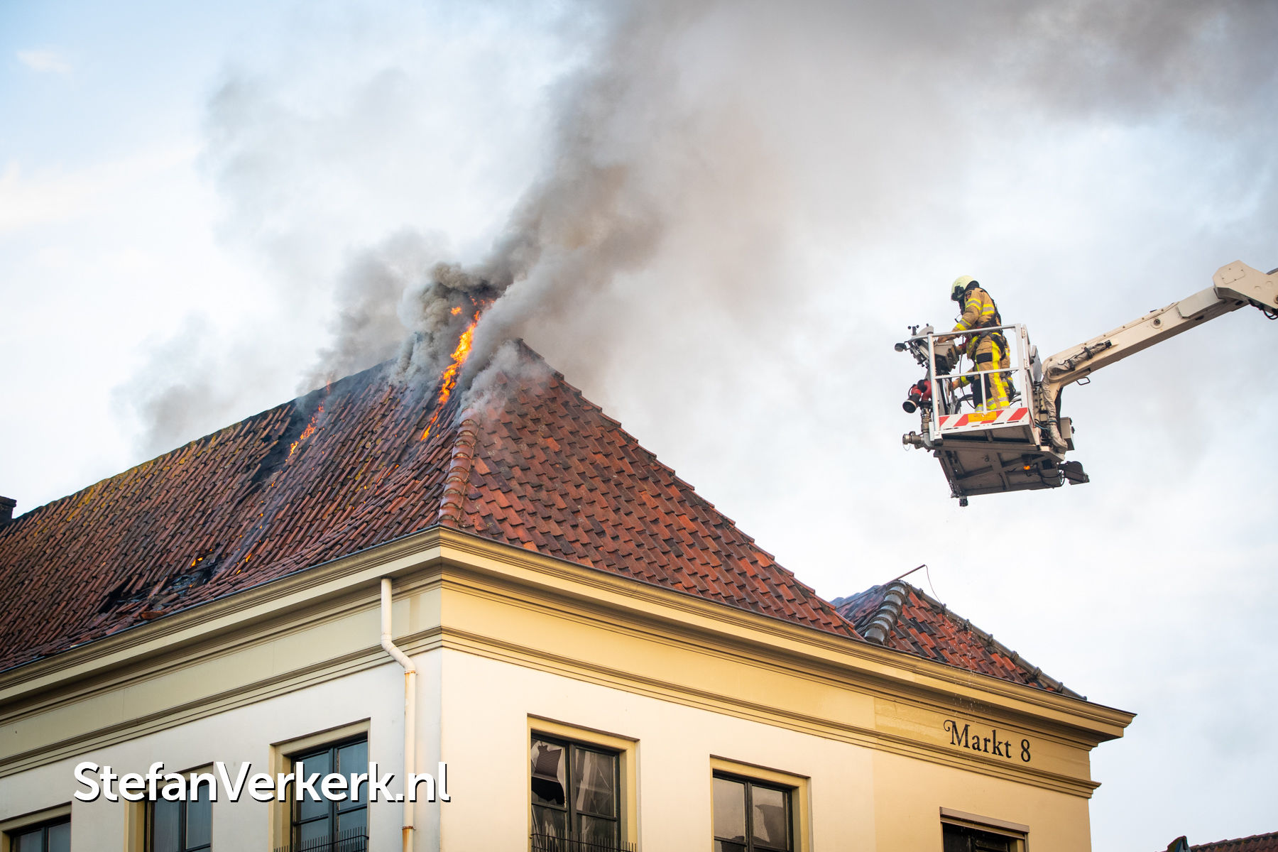Foto's: Grote brand in dak appartement boven Bistro Daandels Kerkstraat Hattem