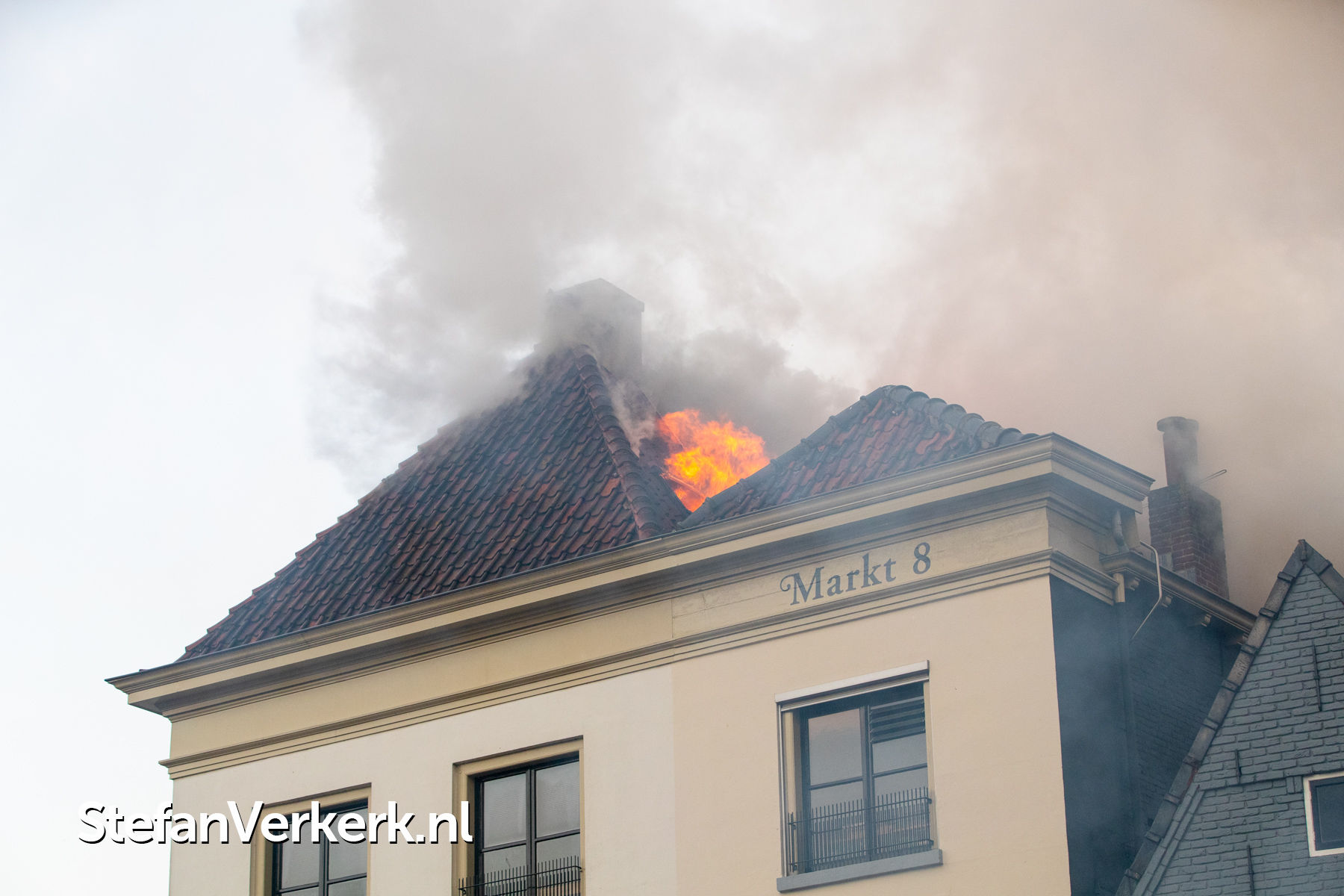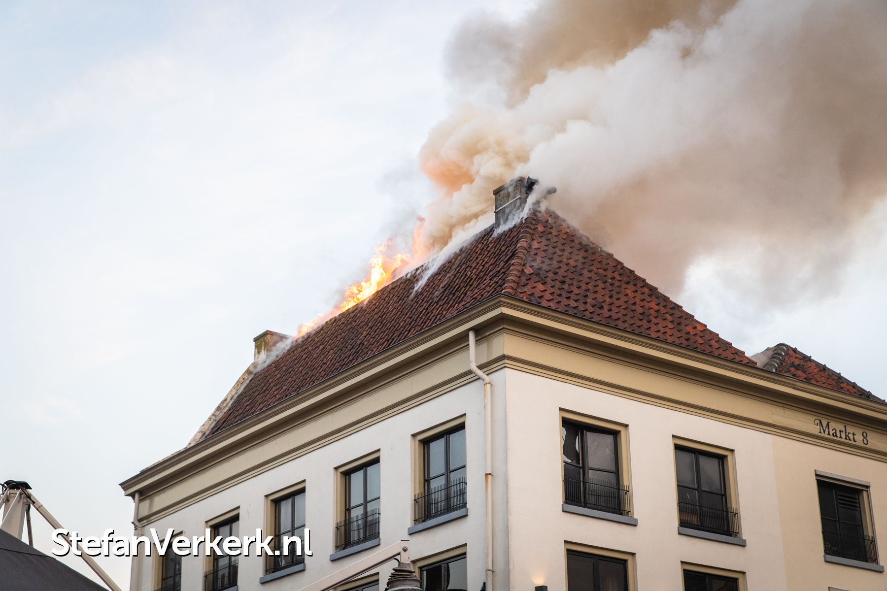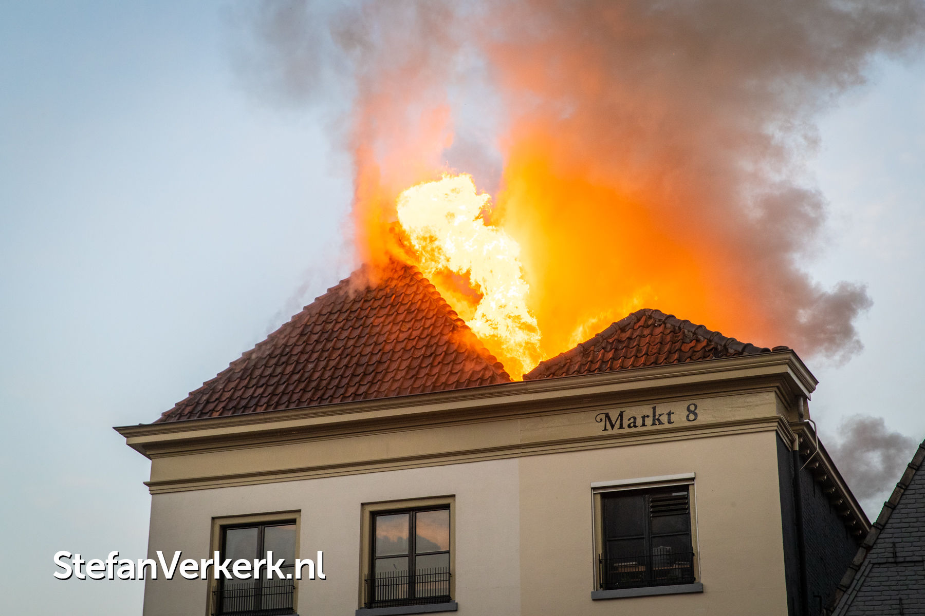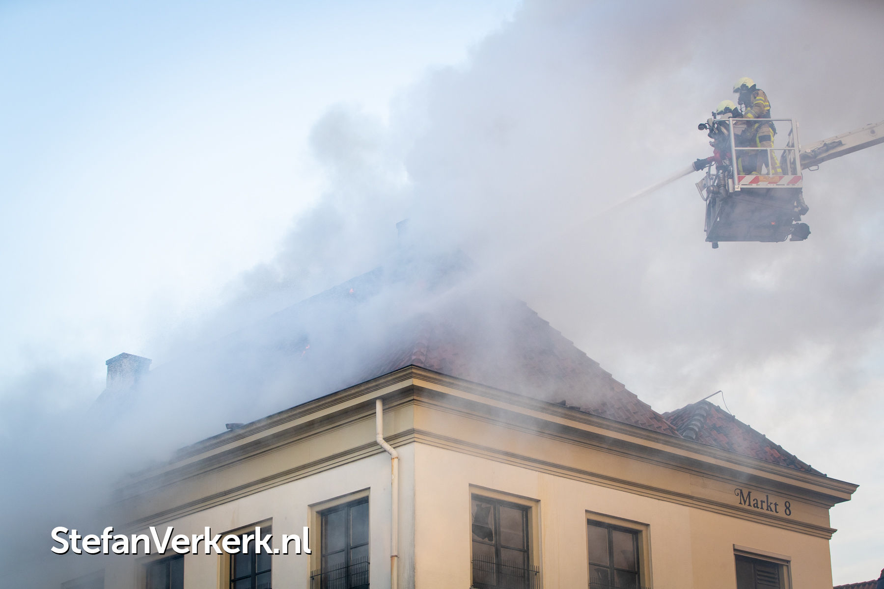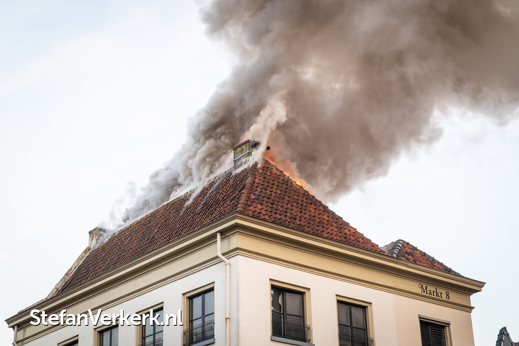 Foto's: Grote brand in dak appartement boven Bistro Daandels Kerkstraat Hattem
