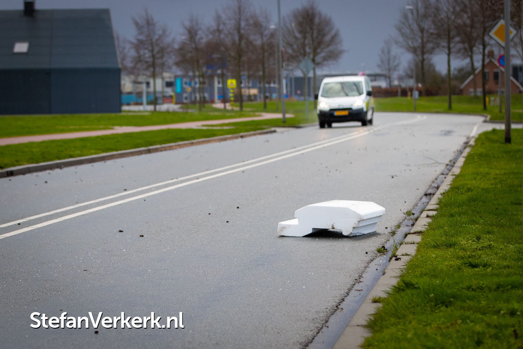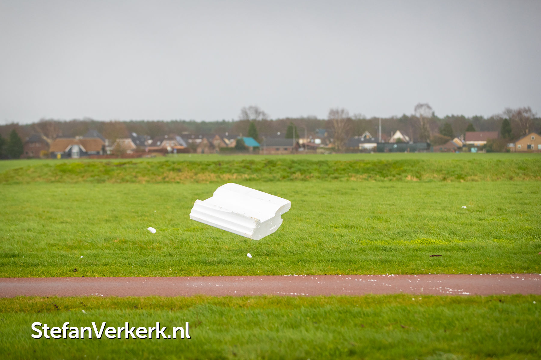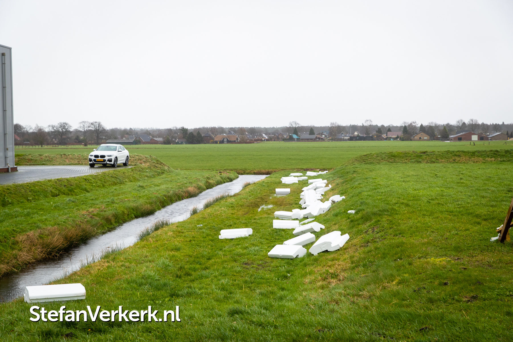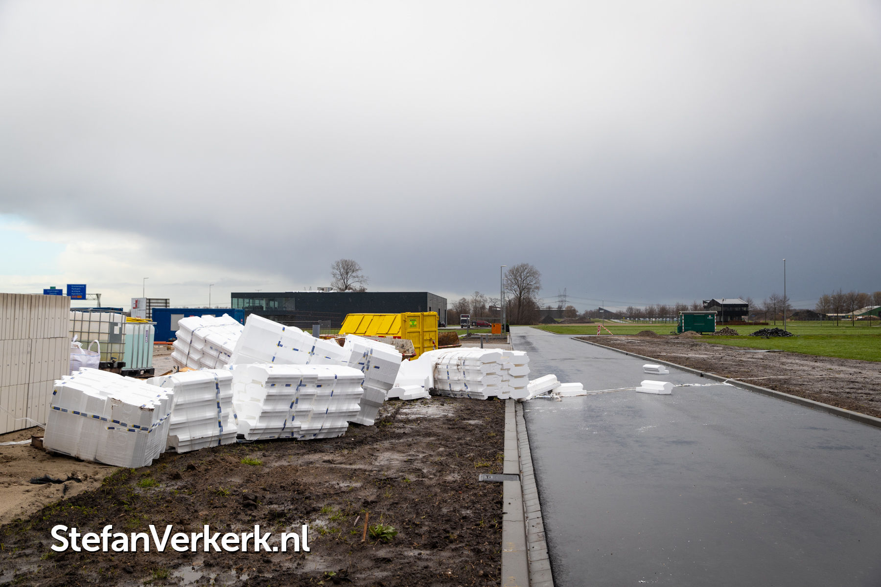Foto's: Tientallen piepschuim blokken waaien weg van bouwplaats Rendementstraat Hattemerbroek