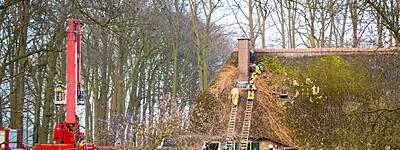 Schoorsteenbrand rietgedekte woning Zwaluwenburg 't Harde