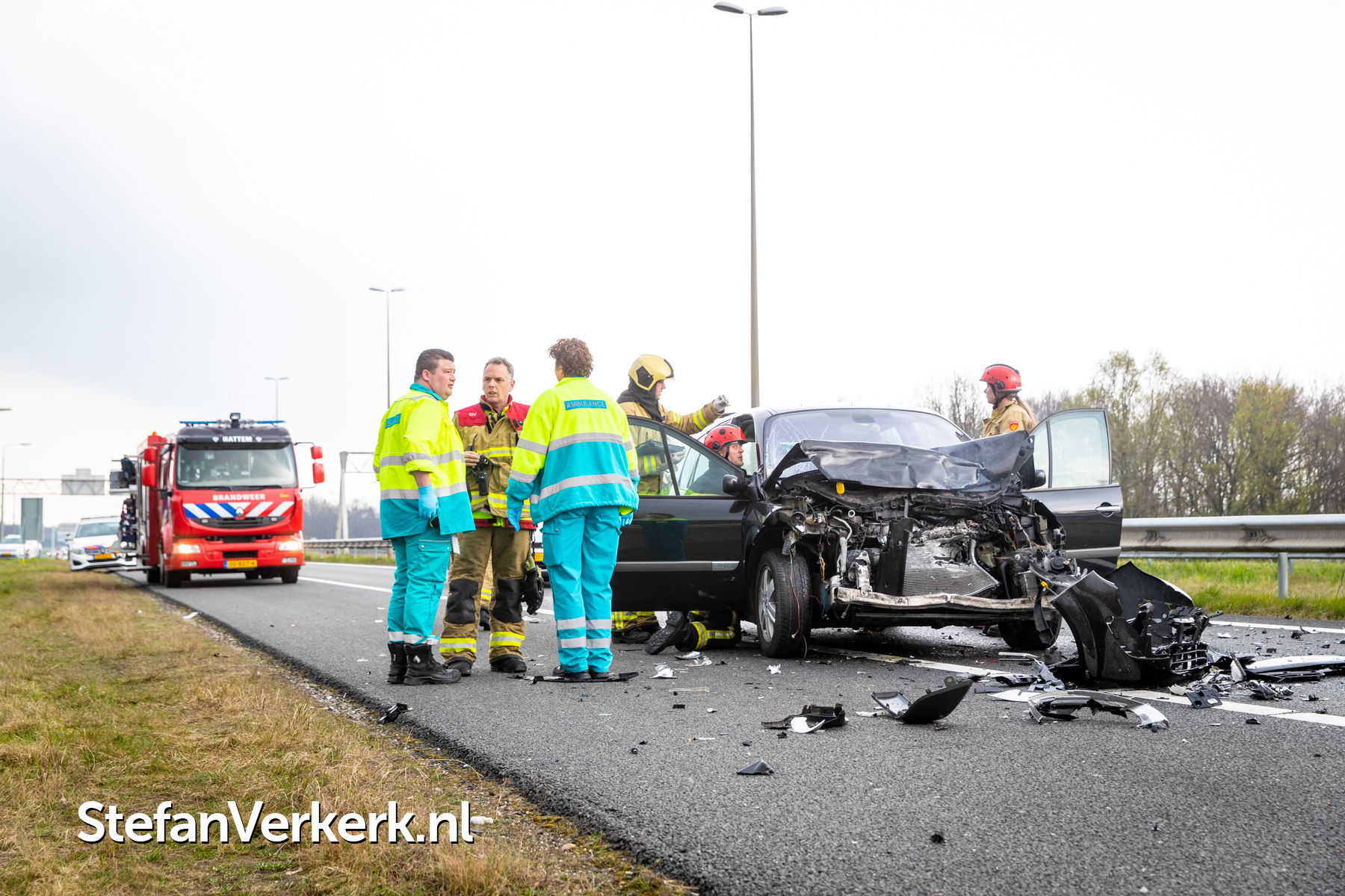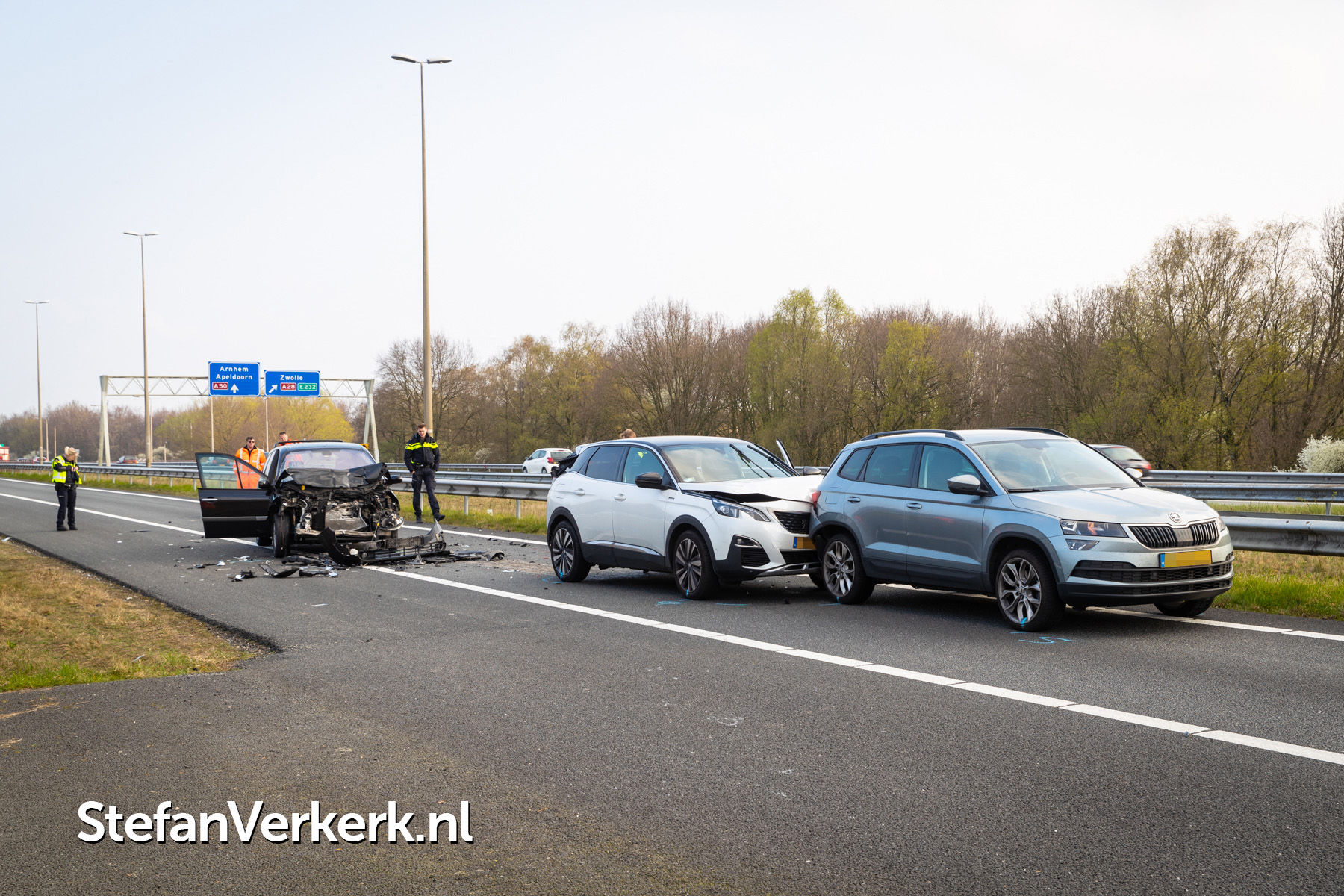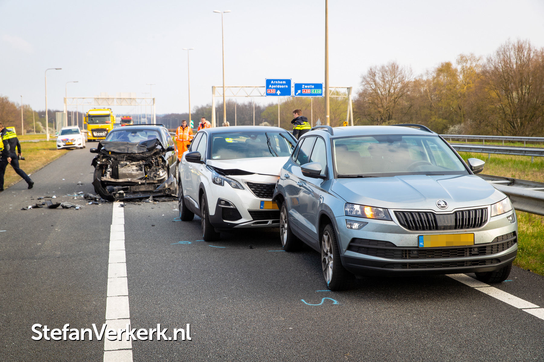 Foto's: Ongeval letsel kopstaart aanrijding 3 voertuigen A50 R 238,6 knp. Hattemerbroek