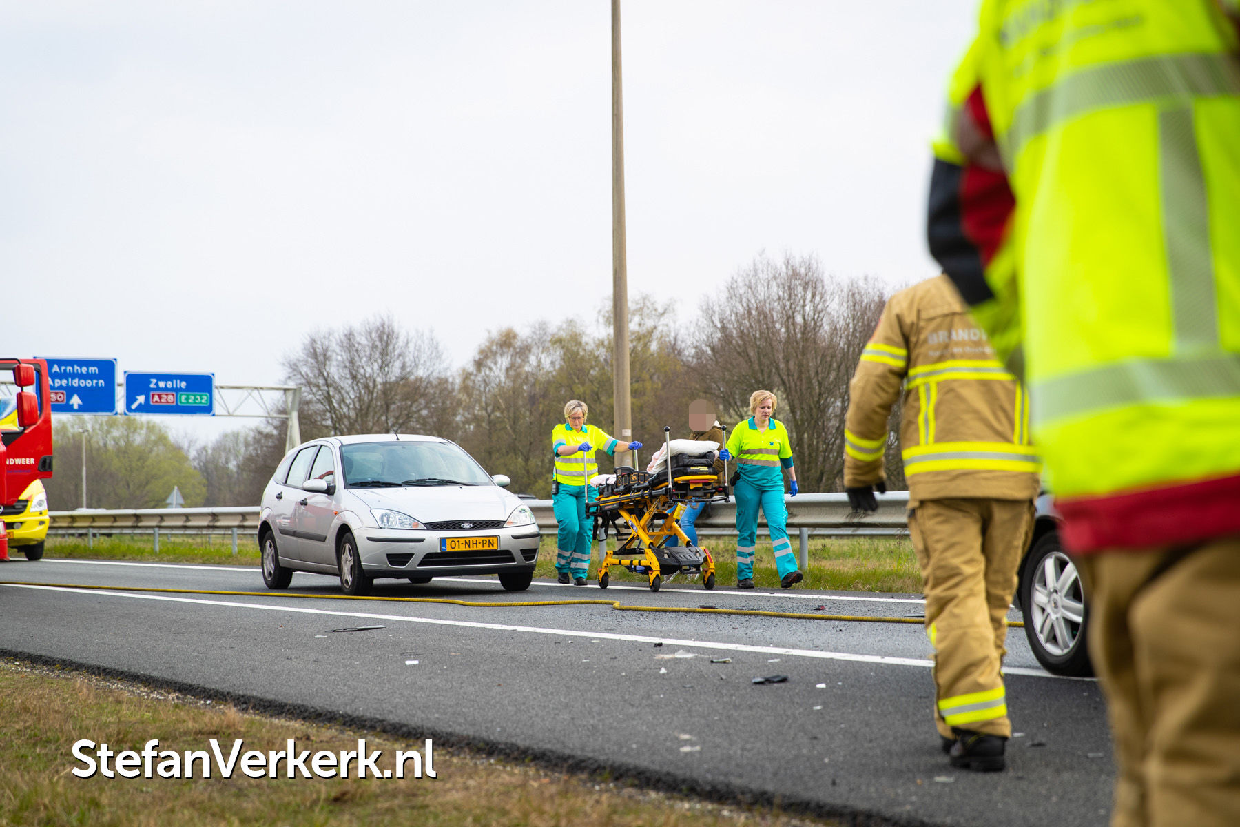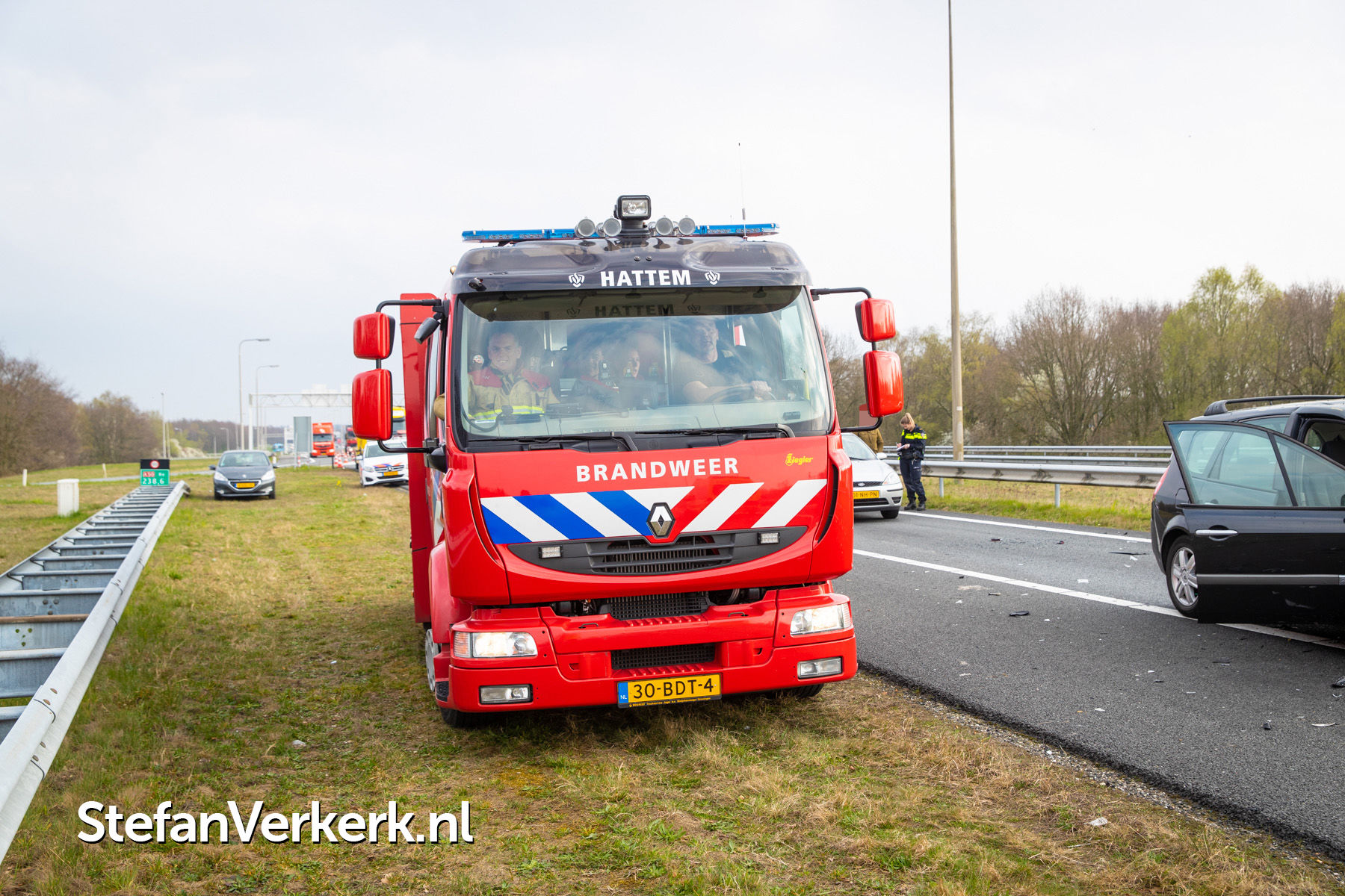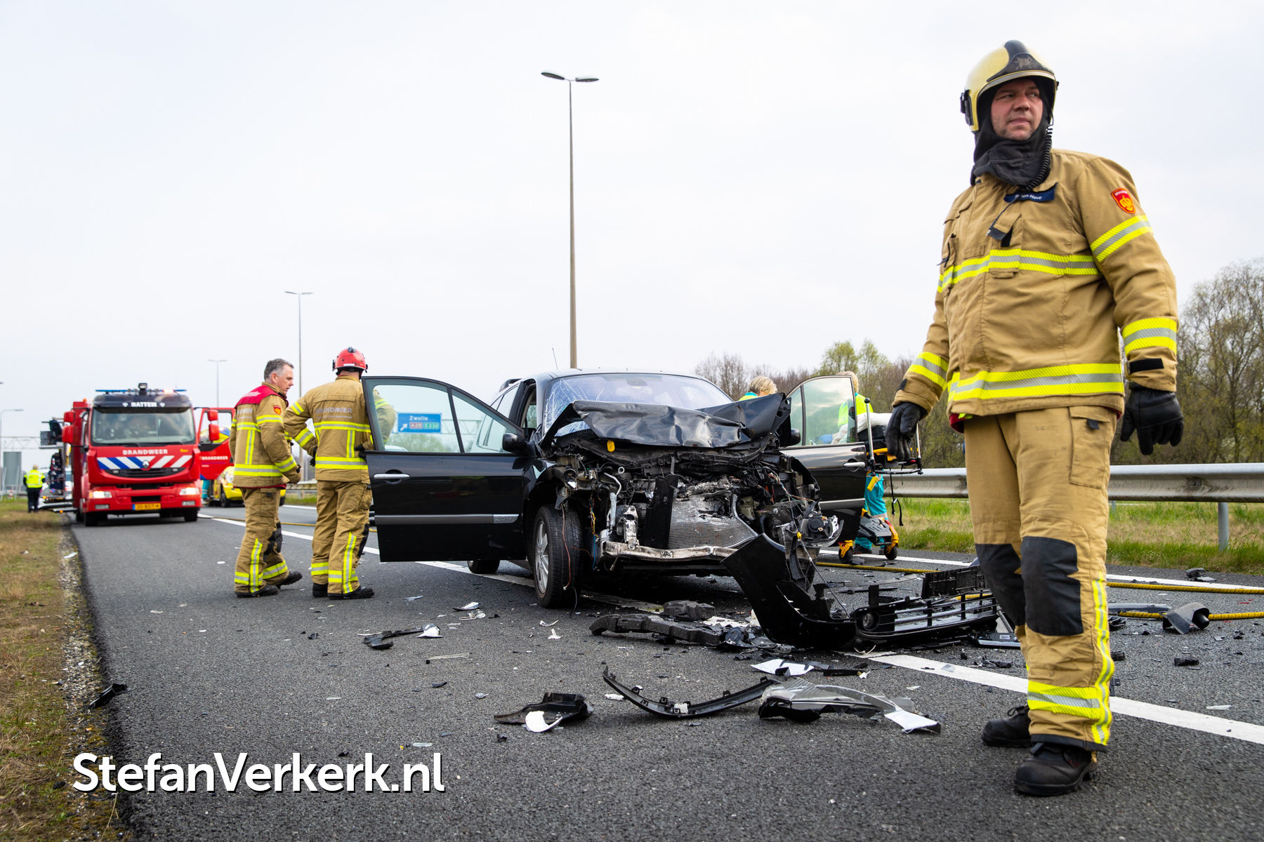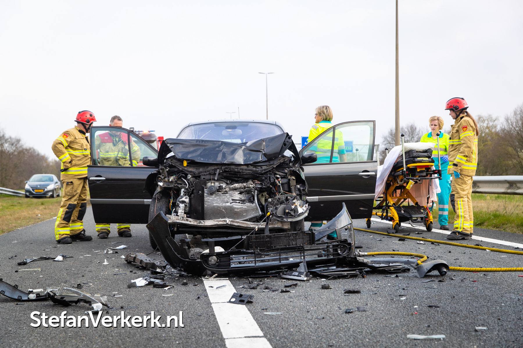 Foto's: Ongeval letsel kopstaart aanrijding 3 voertuigen A50 R 238,6 knp. Hattemerbroek