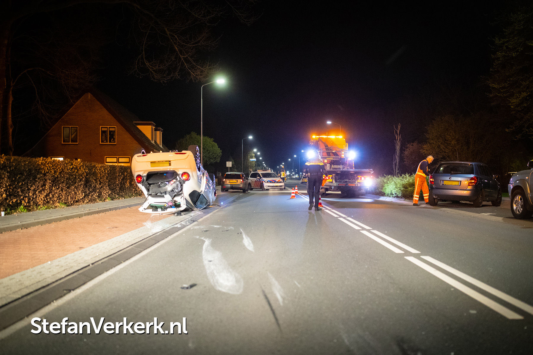 Foto's: Ongeval auto over de kop Stationsweg - Oude Keizersweg Wezep