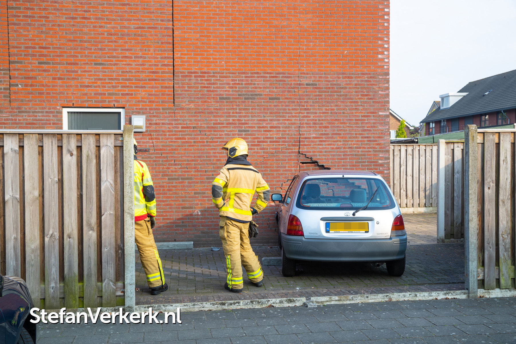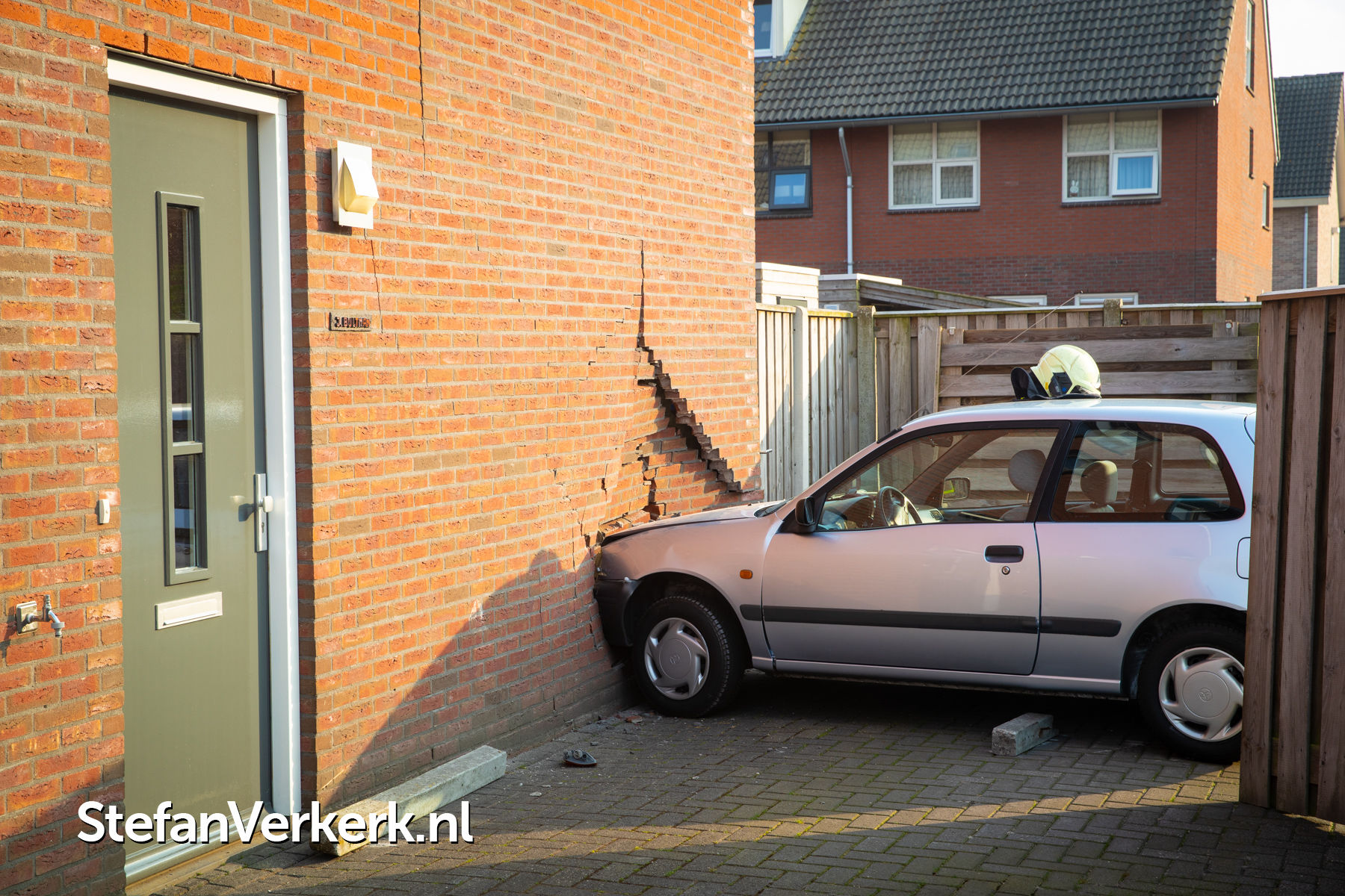 Foto's: Ongeval auto rijdt woning in Ien Dalesstraat - Beelhof Wezep