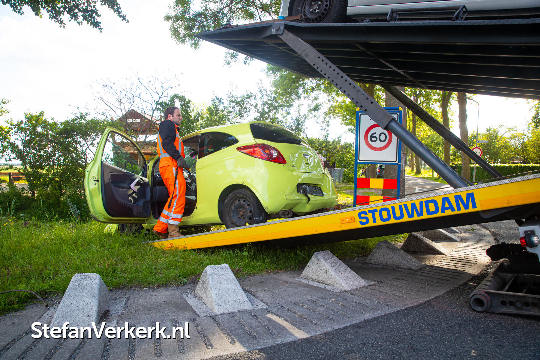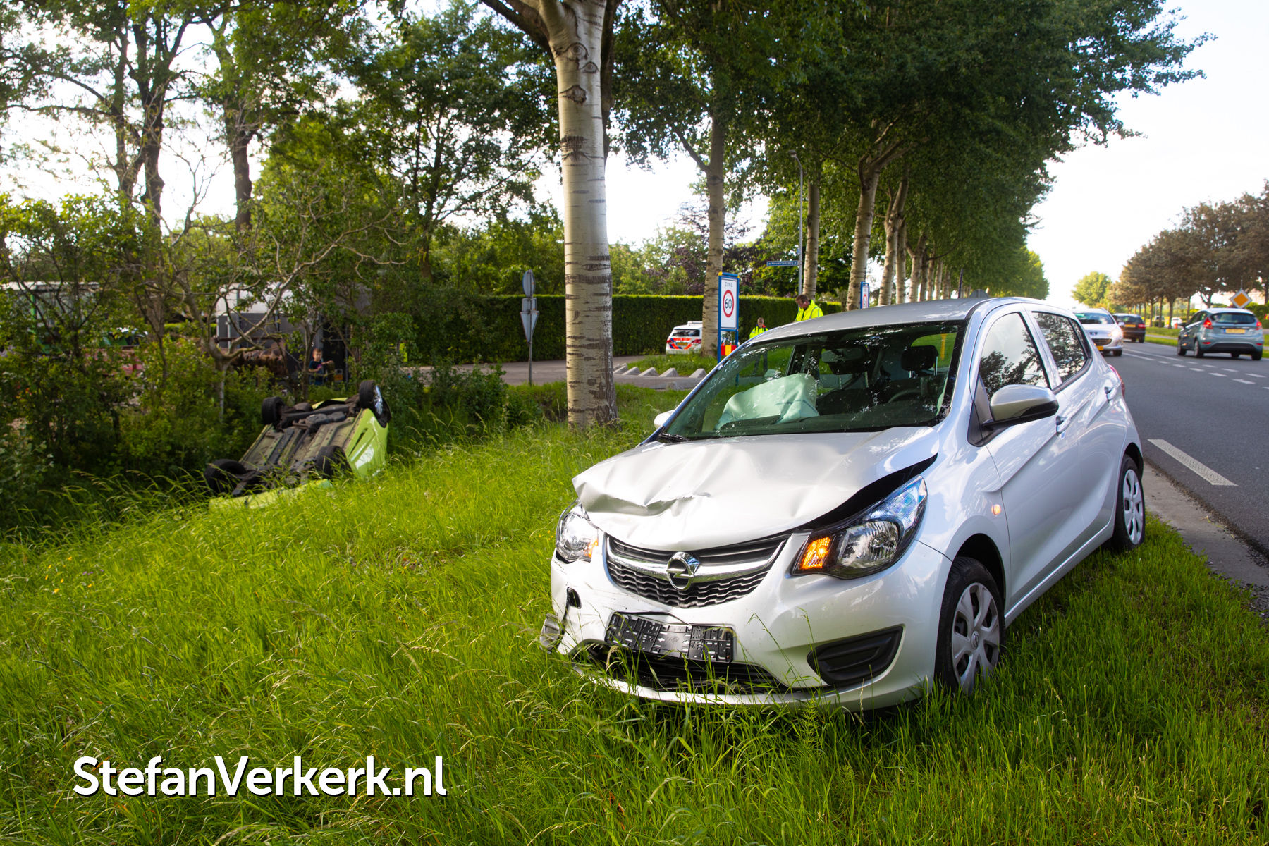 Foto's: Ongeval auto over de kop bij kopstaart aanrijding Flevoweg Nieuwstadsweg Elburg