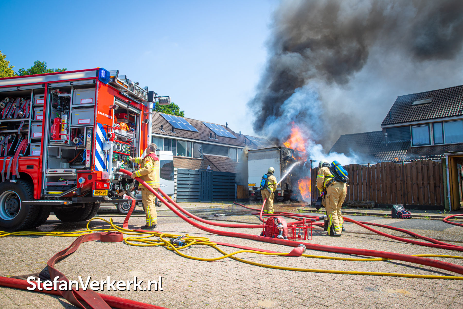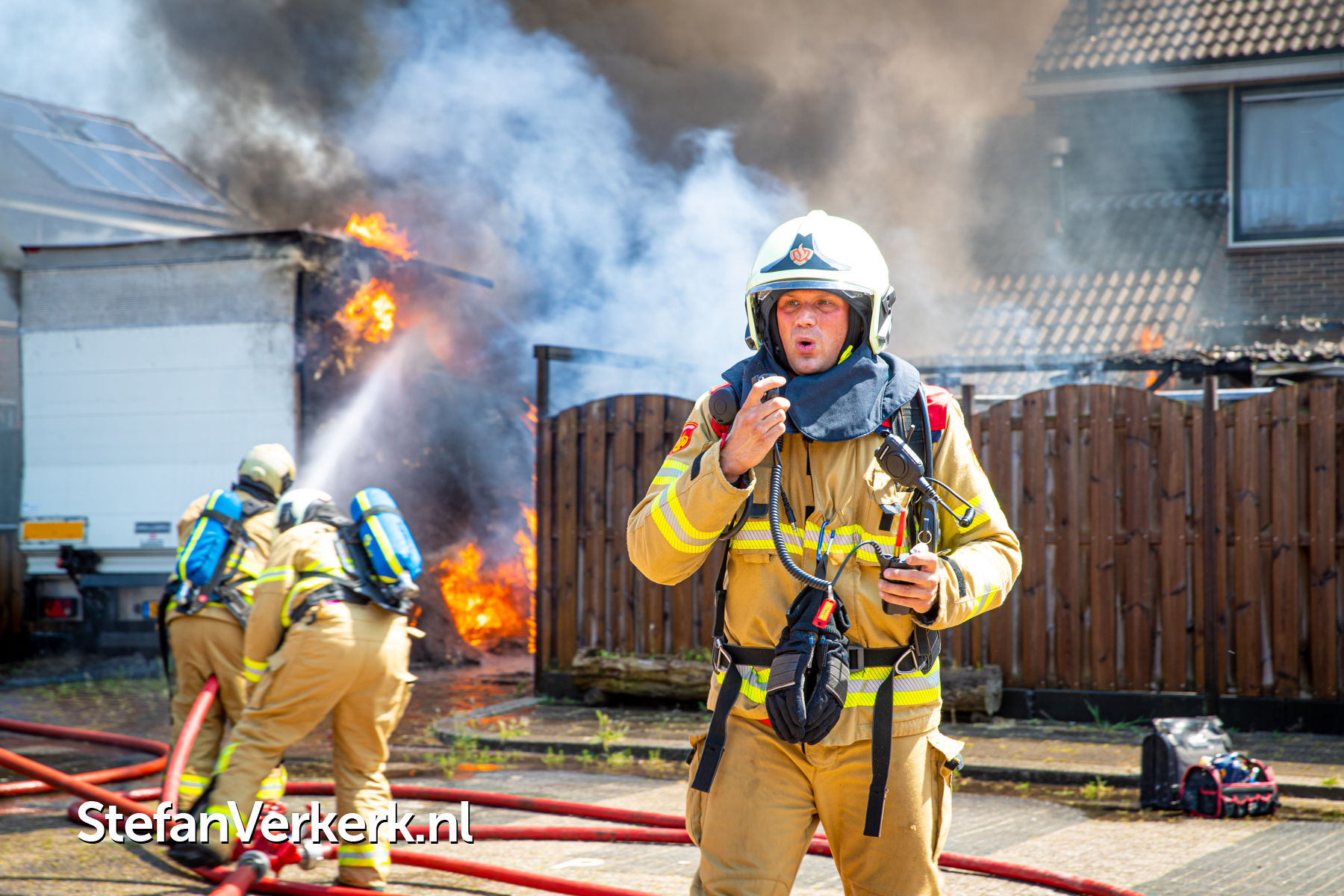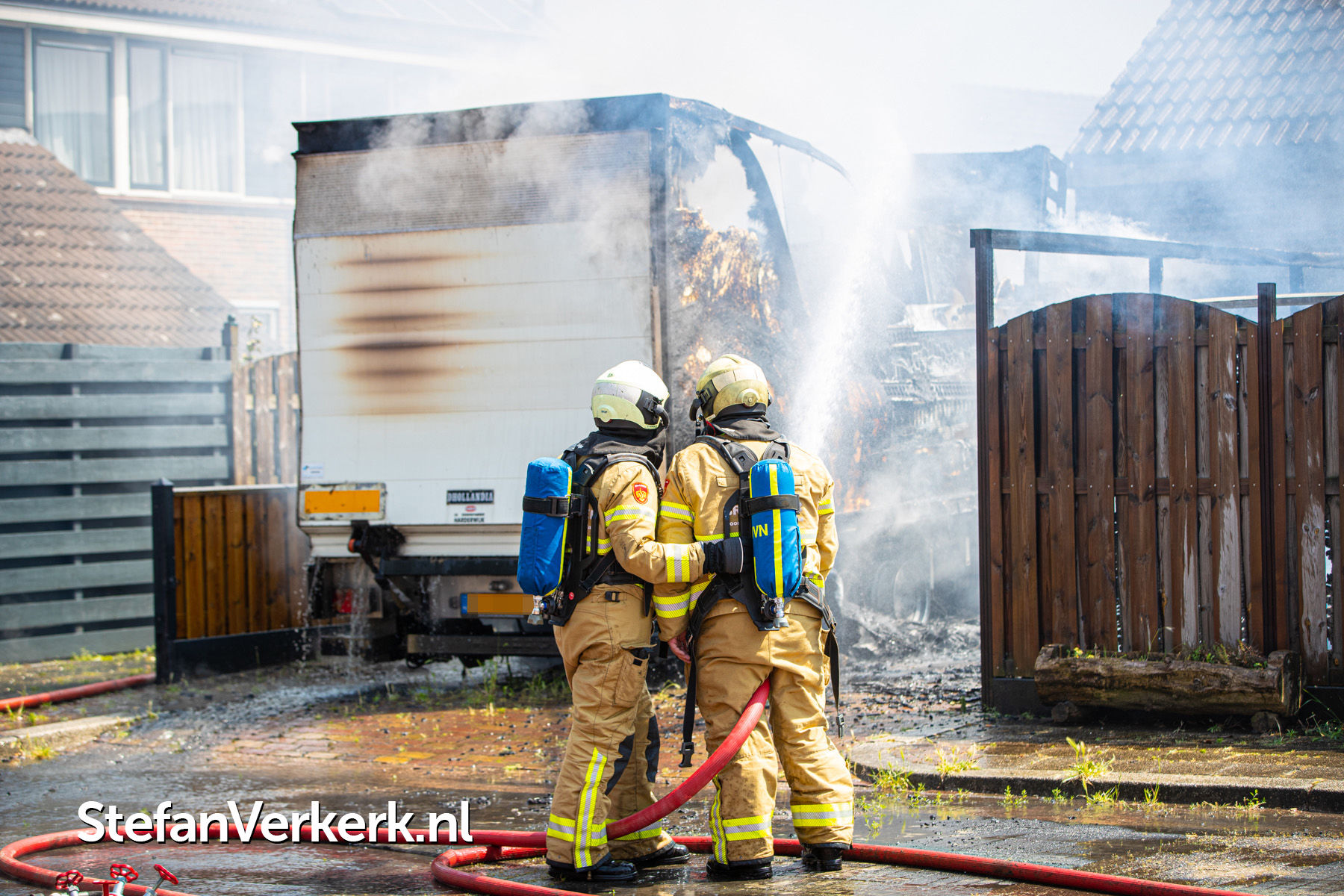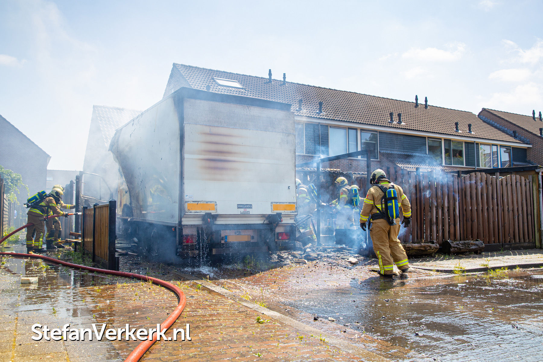 Foto's: Grote brand vrachtwagen, schuur en woning Eessenkamp Wapenveld