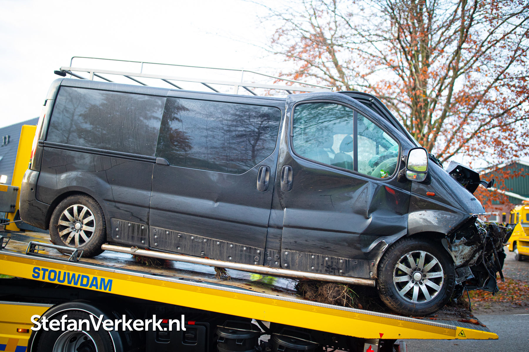 | Nieuwsbericht: | Bedrijfsbus van de weg in beek en botst tegen boomstronk Vreeweg Nunspeet |