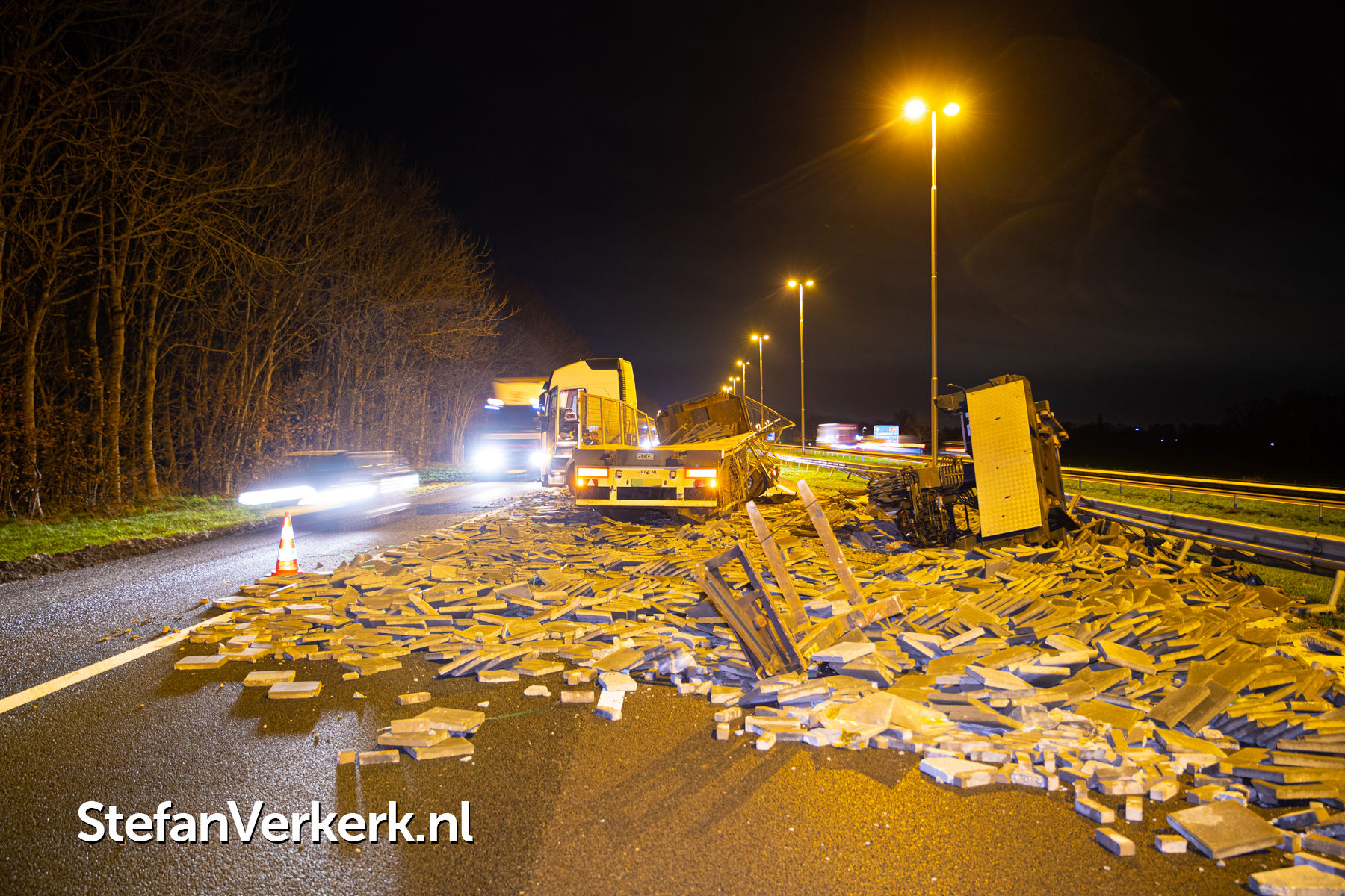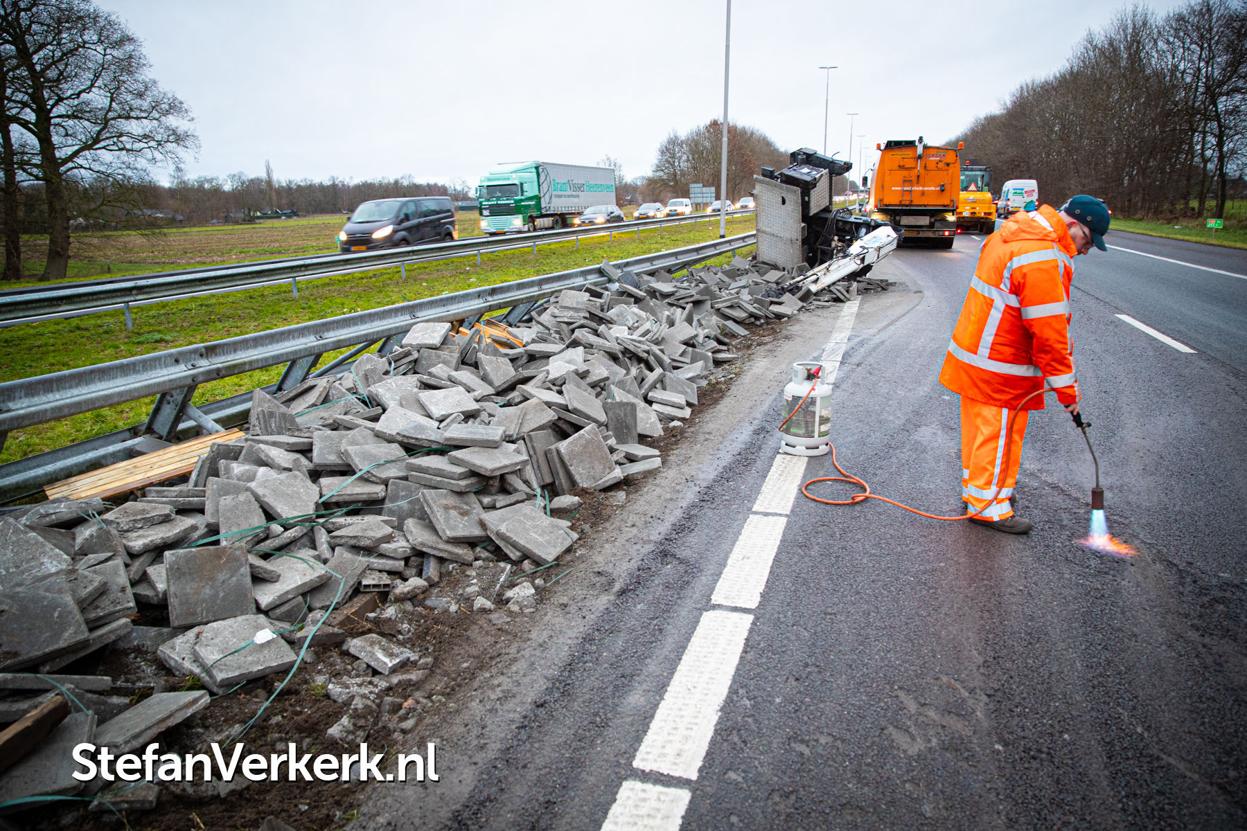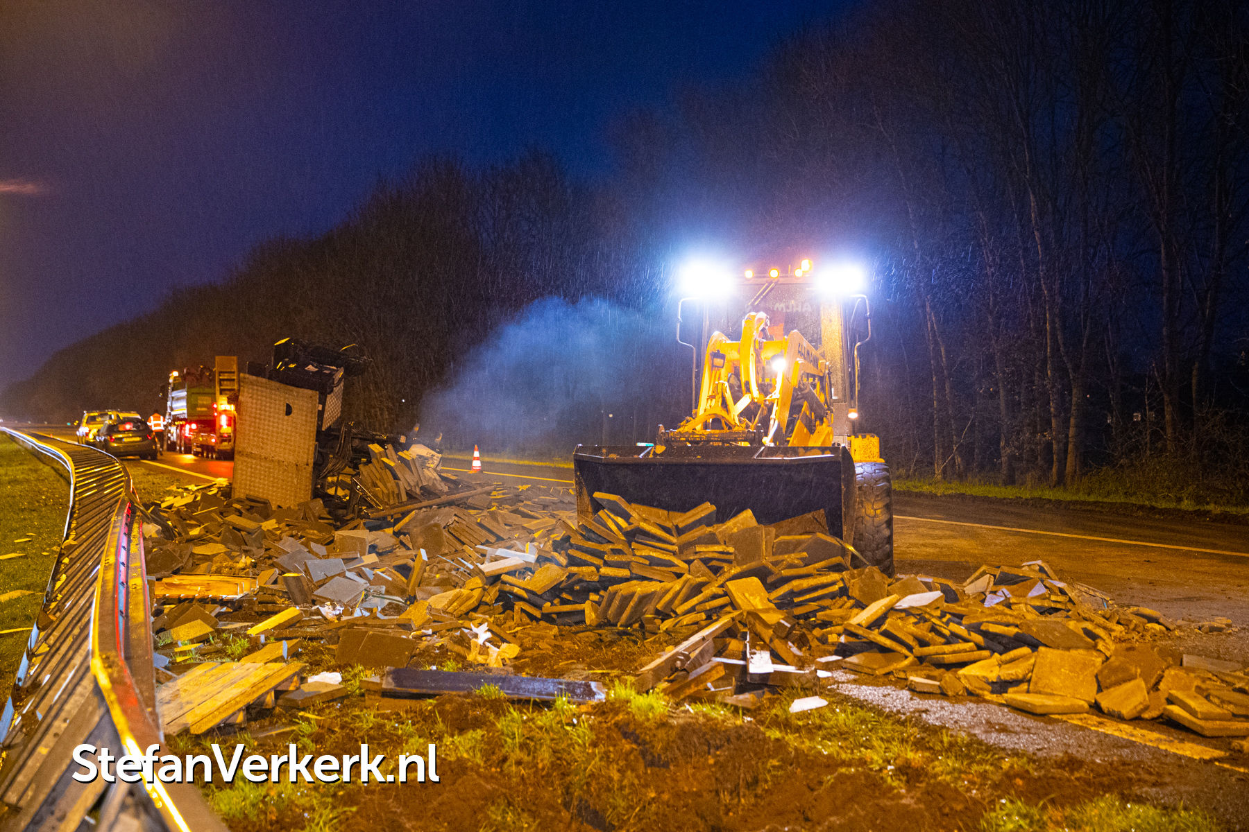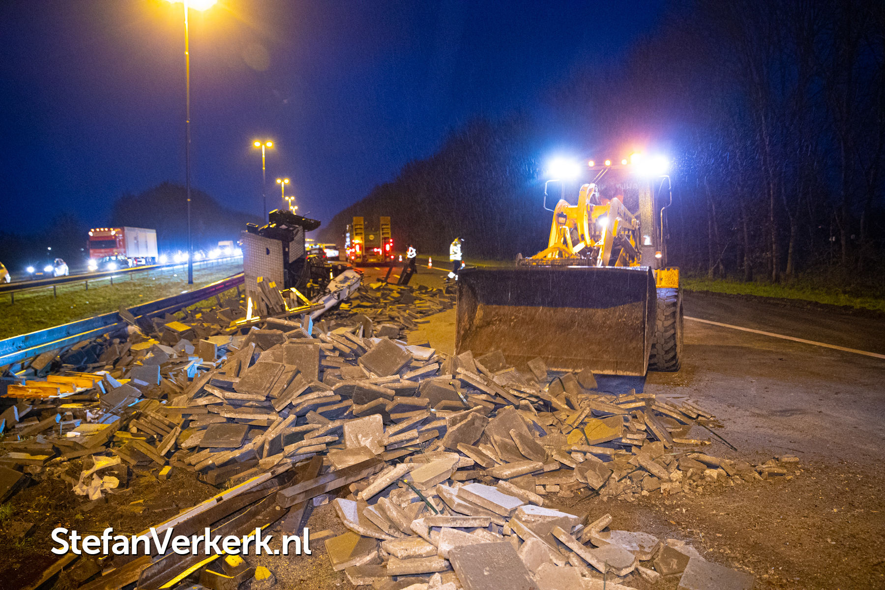 Foto's: Ongeval vrachtwagen met stoeptegels A50 Re 217,1 Vaassen