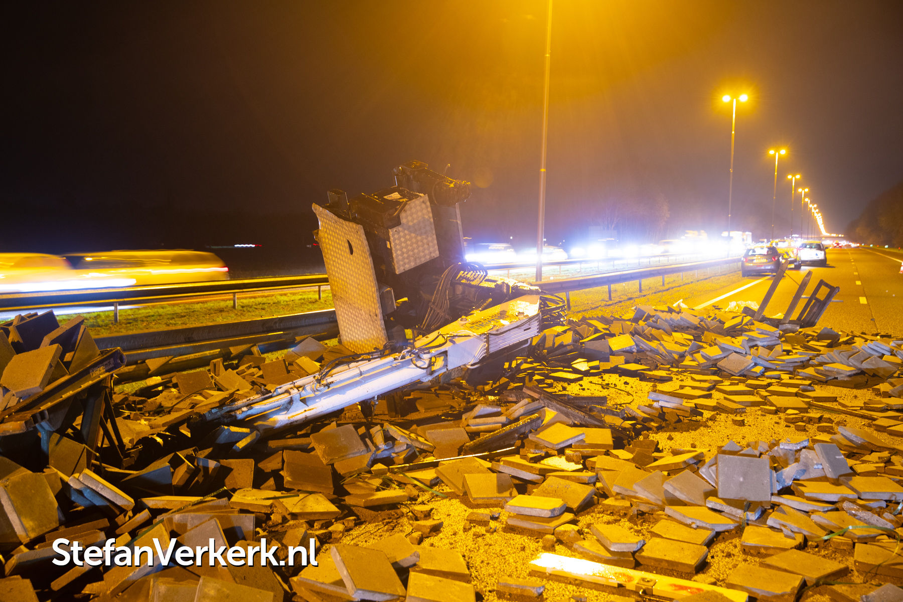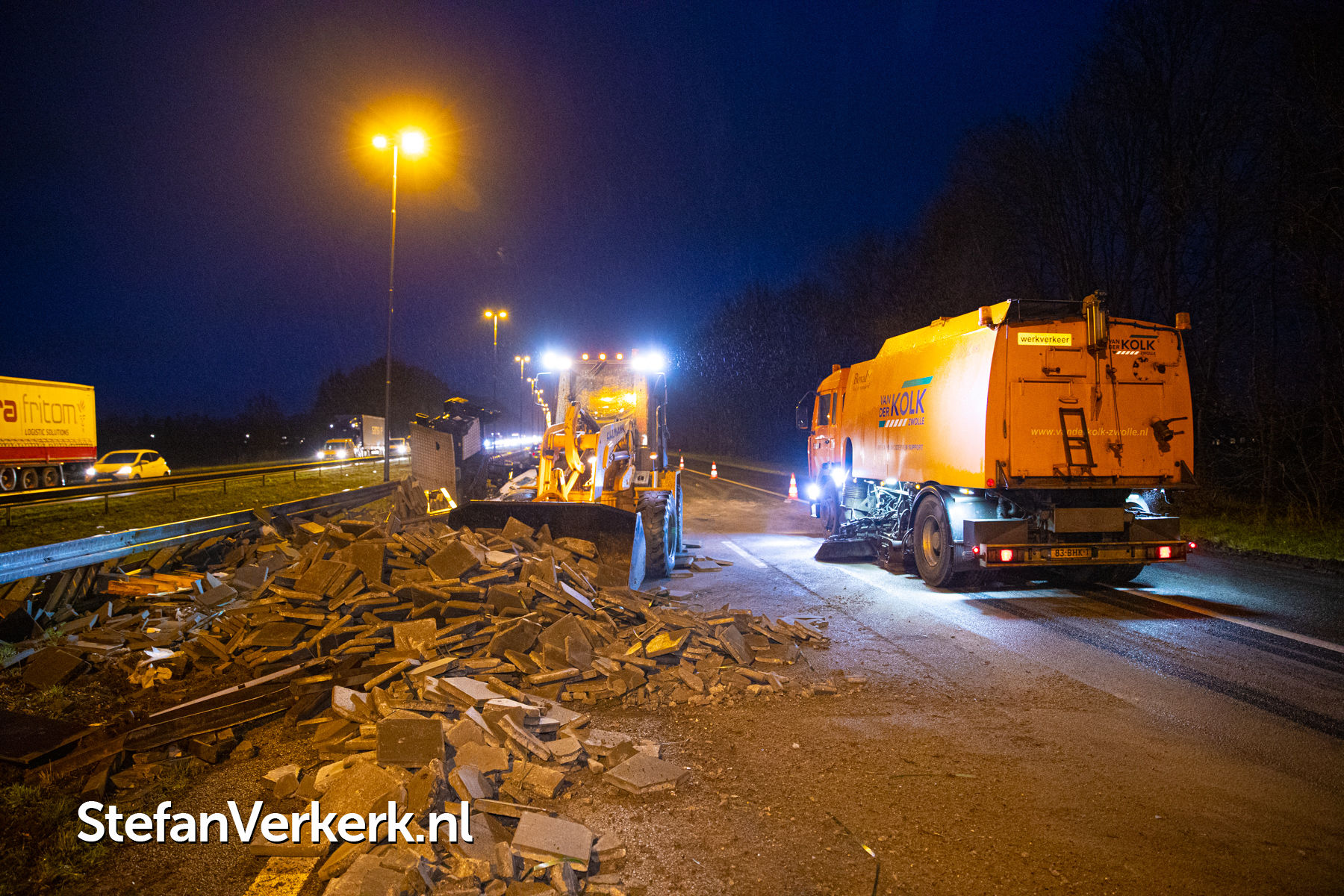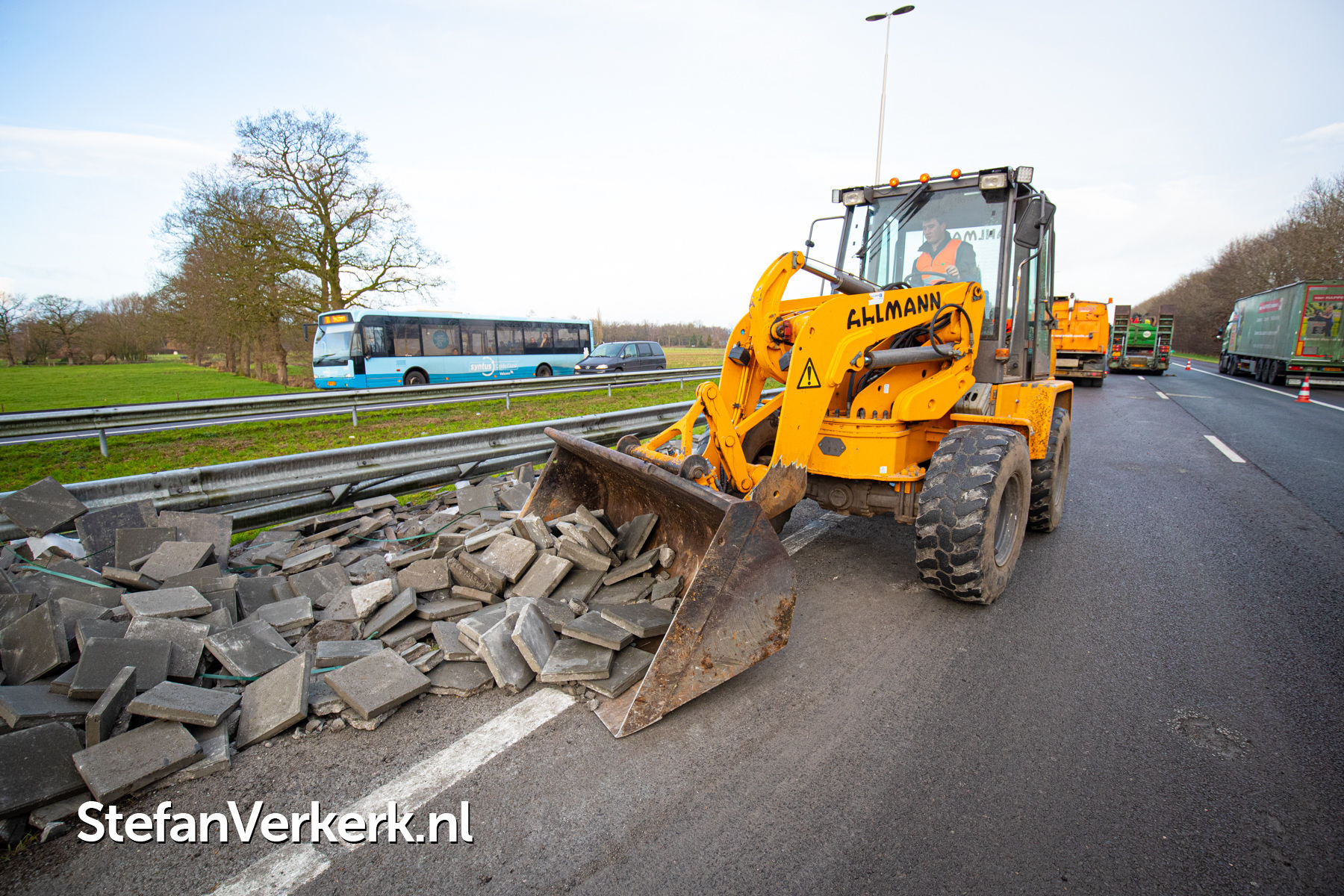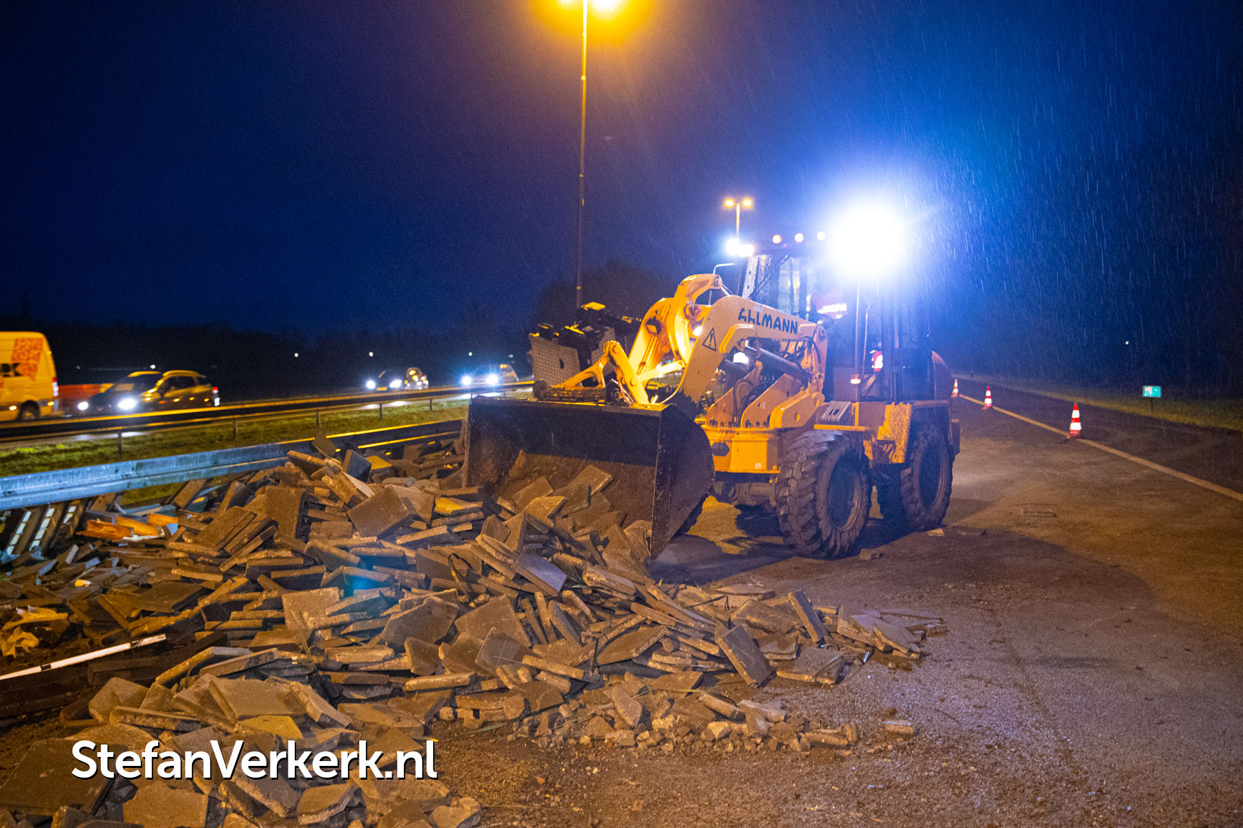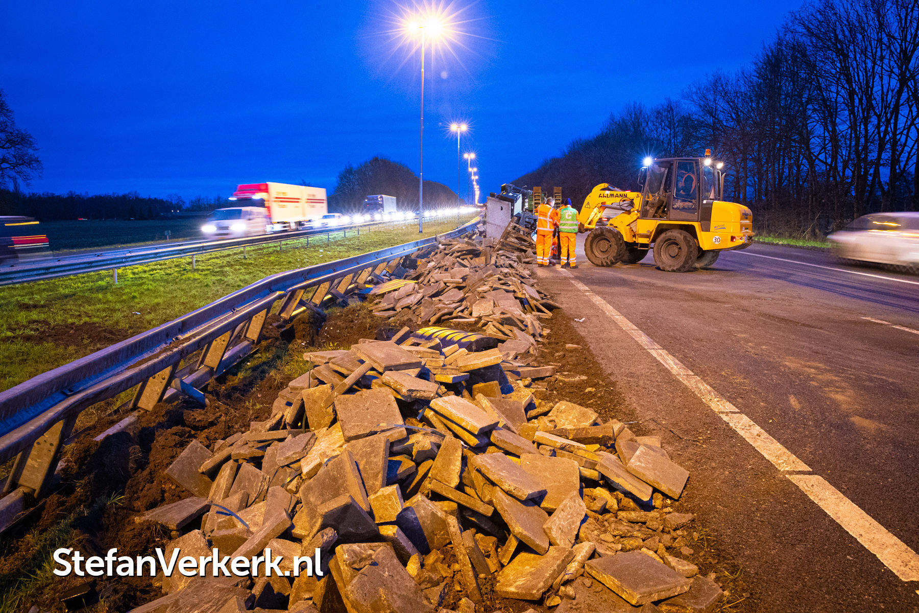 Foto's: Ongeval vrachtwagen met stoeptegels A50 Re 217,1 Vaassen