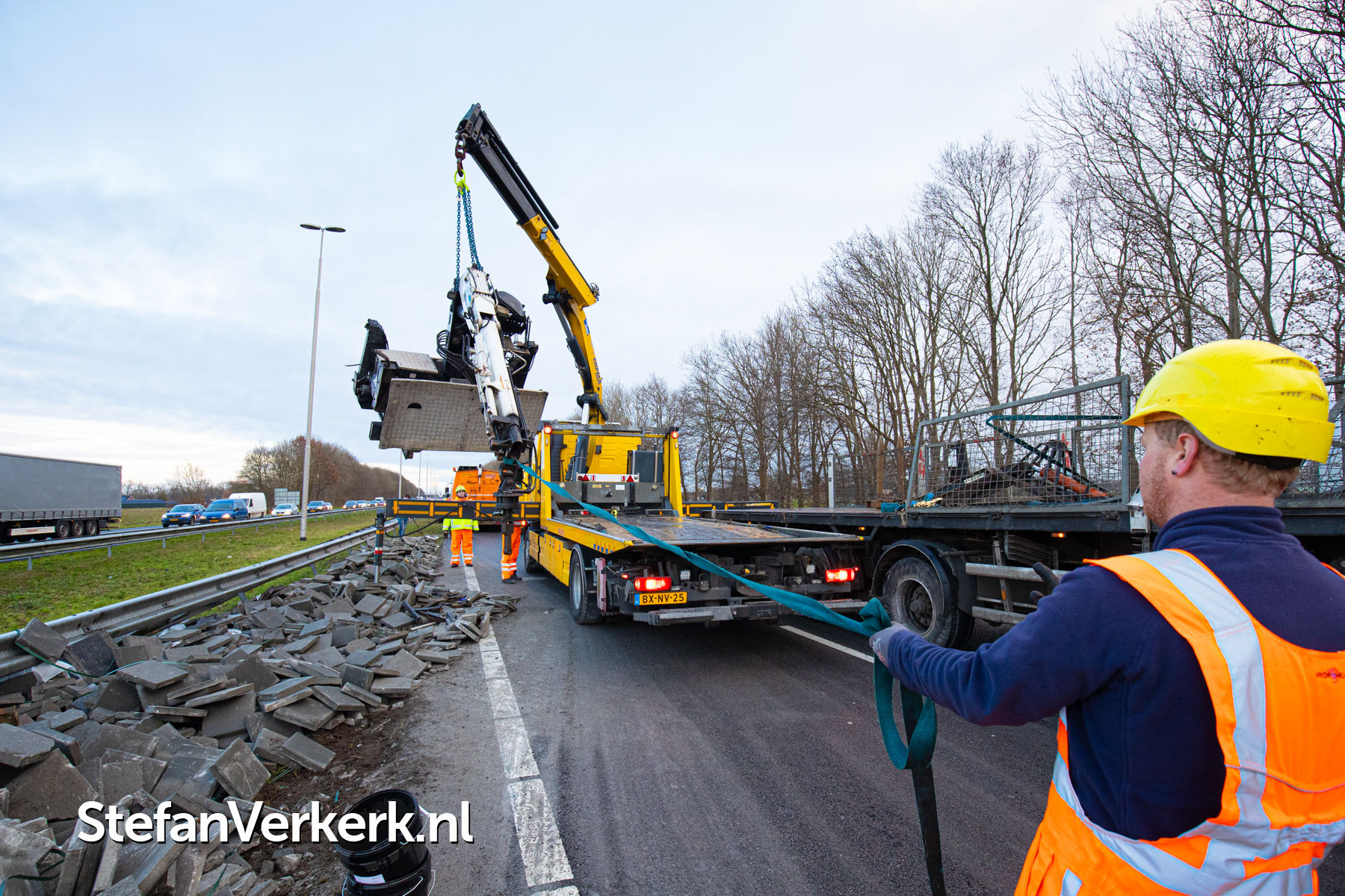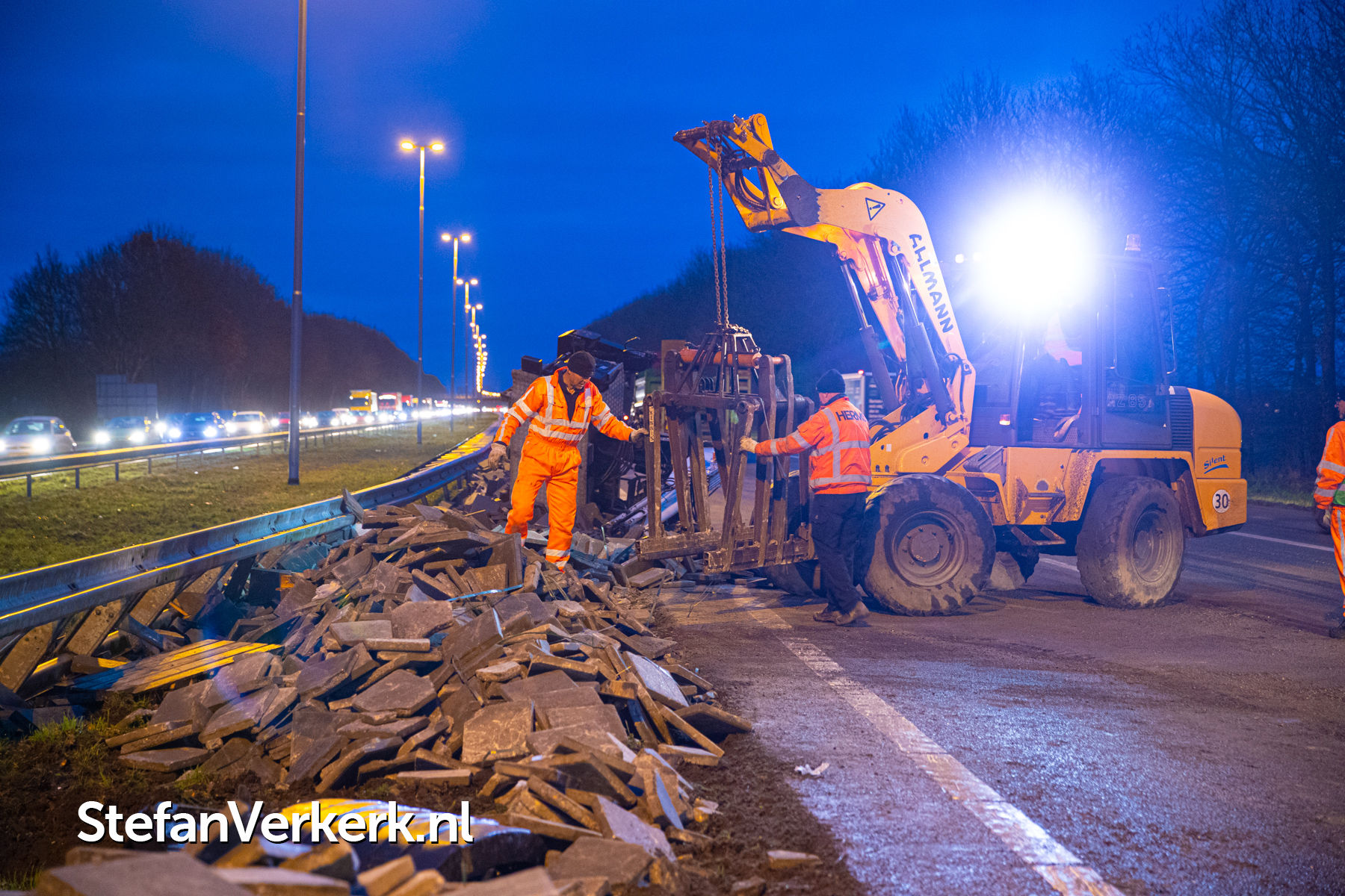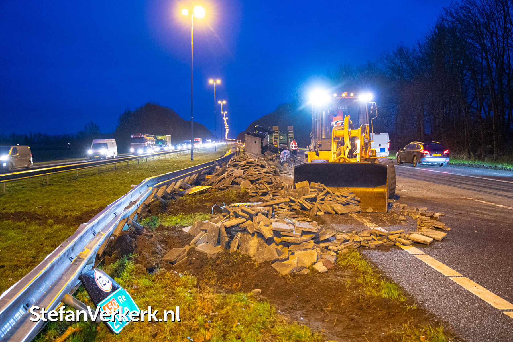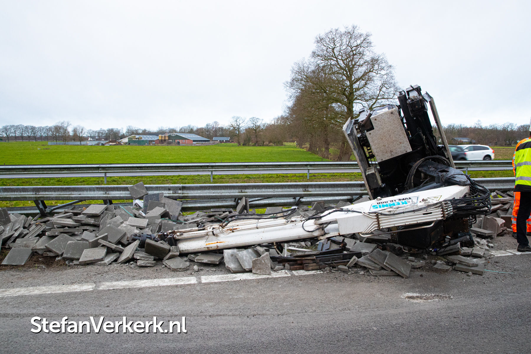 Foto's: Ongeval vrachtwagen met stoeptegels A50 Re 217,1 Vaassen