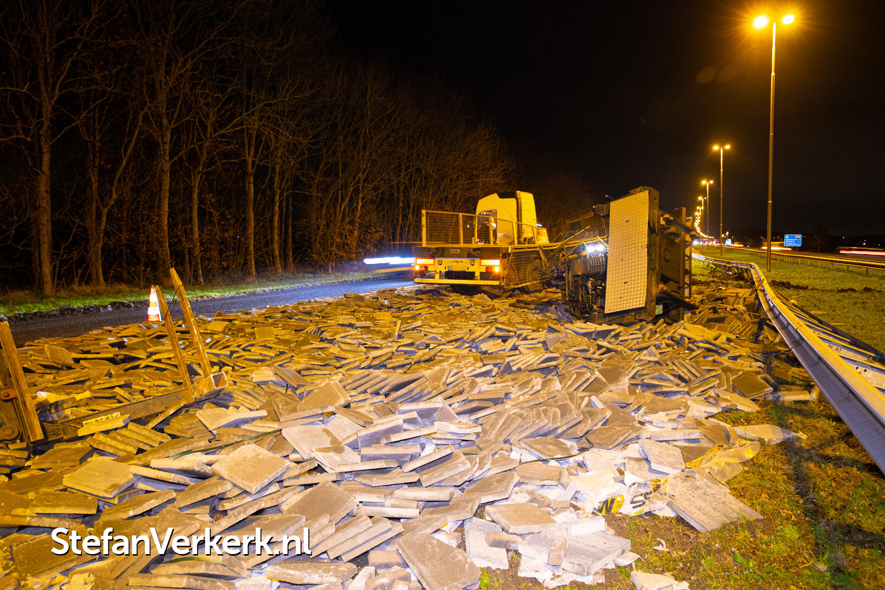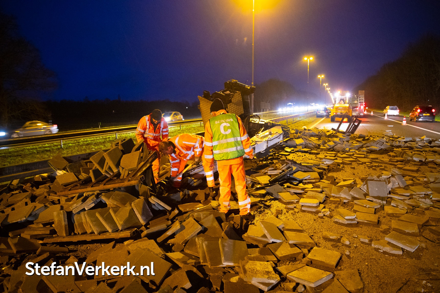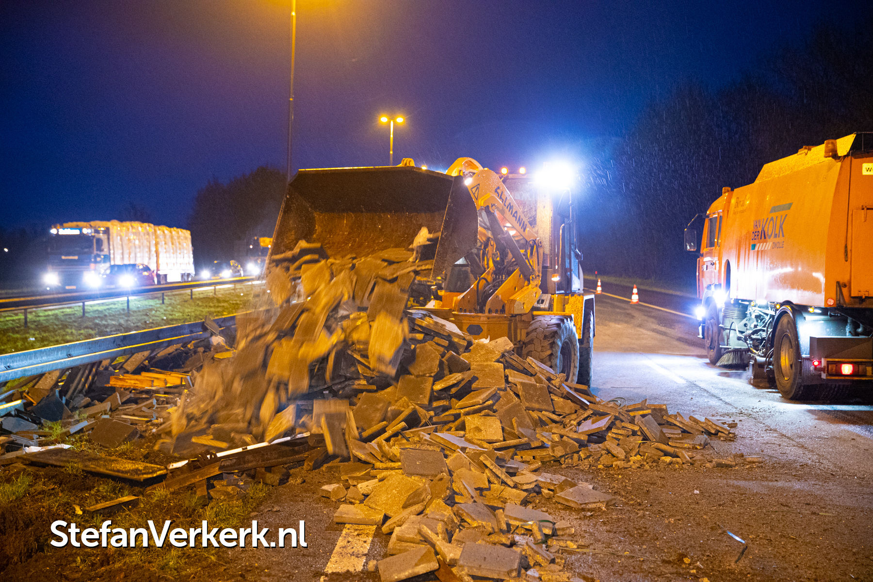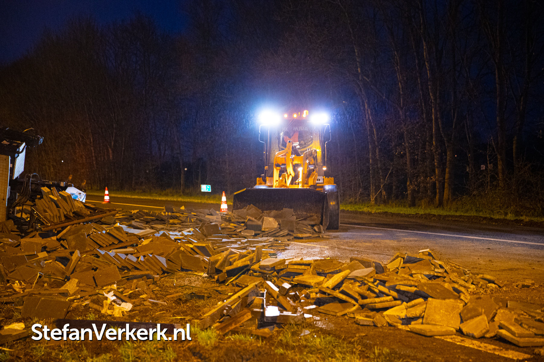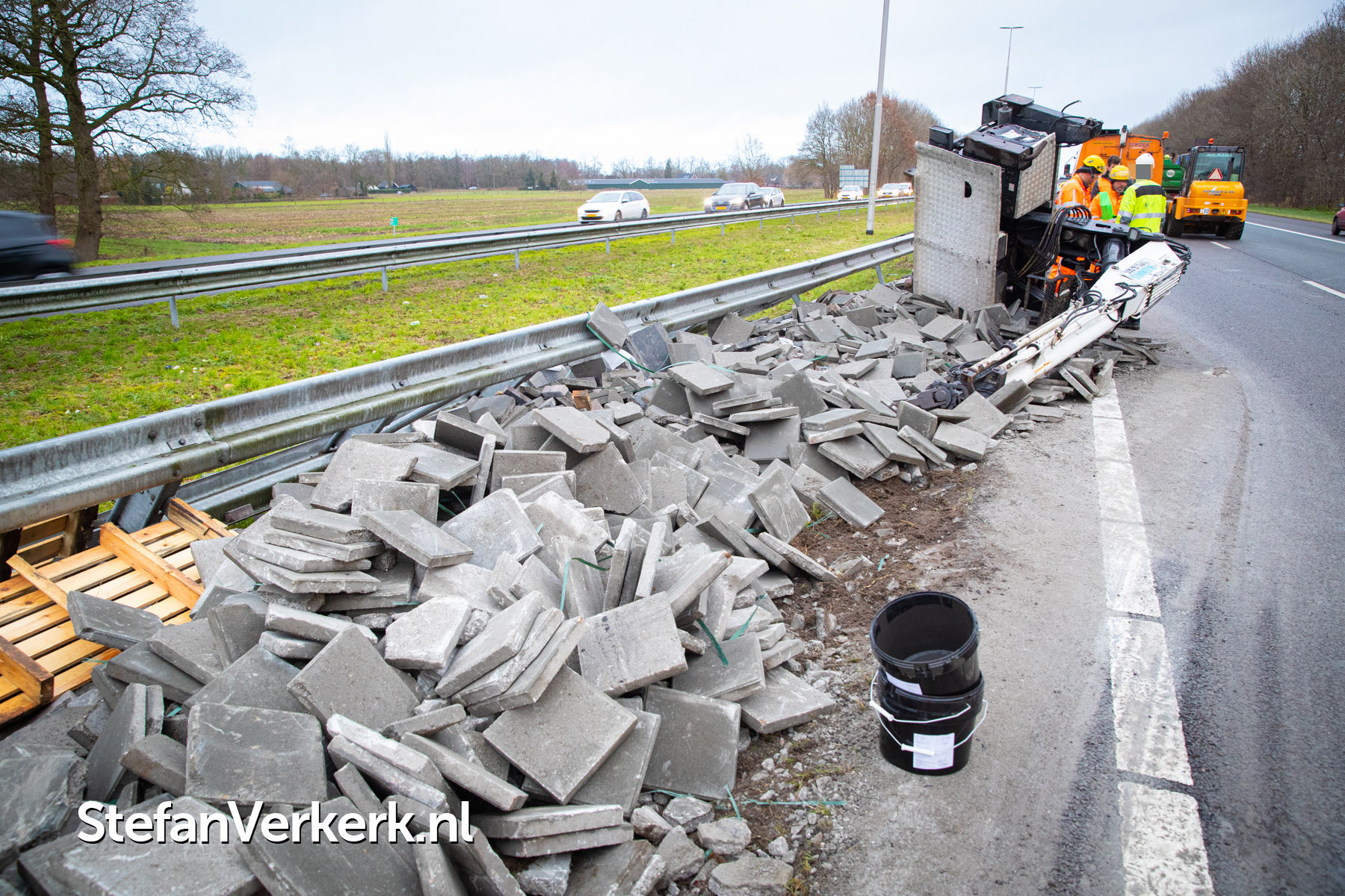 Foto's: Ongeval vrachtwagen met stoeptegels A50 Re 217,1 Vaassen
