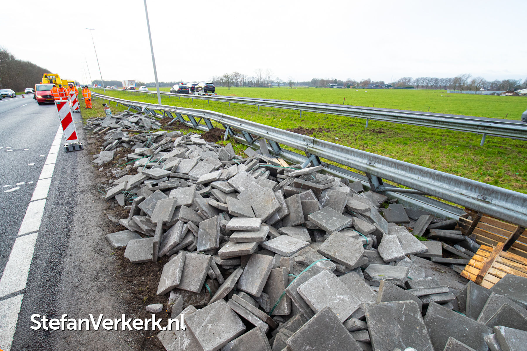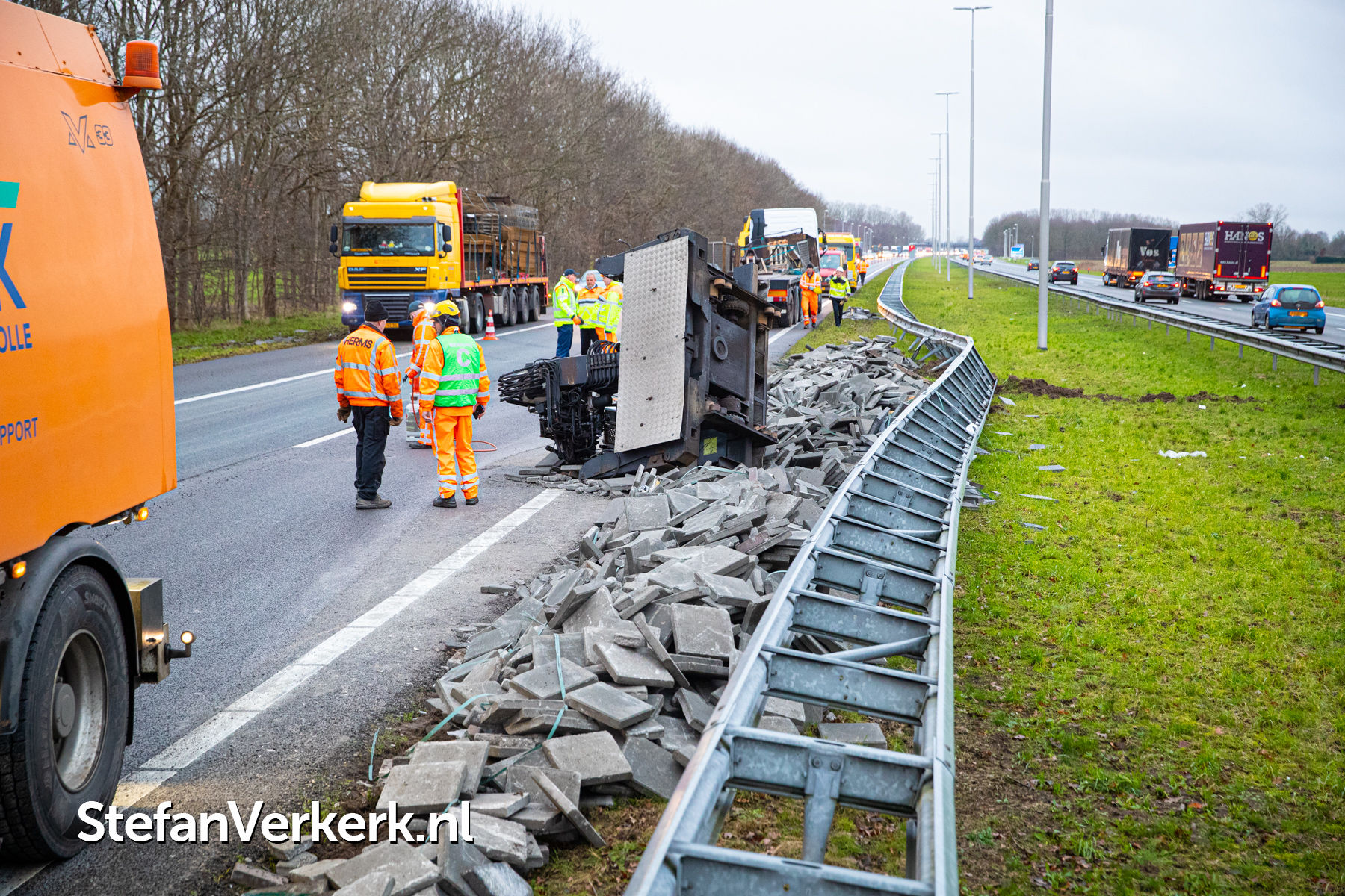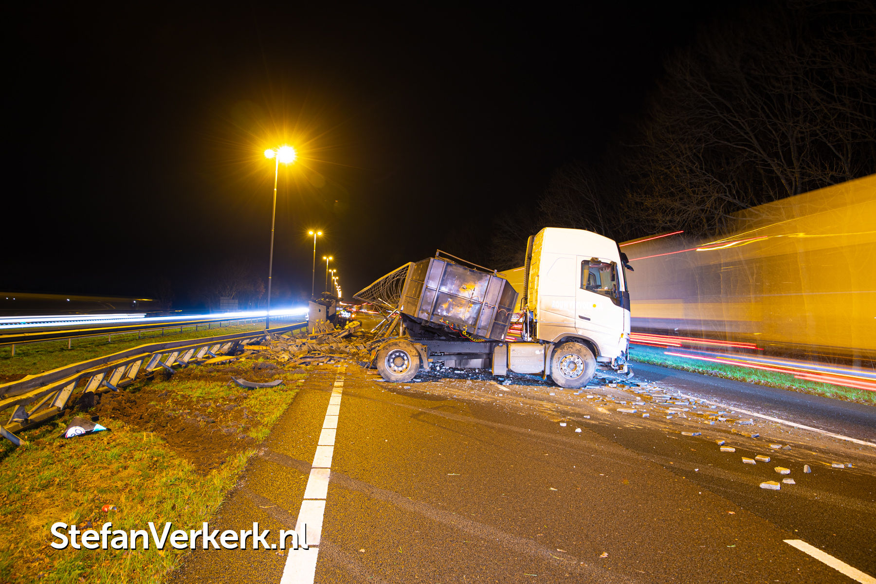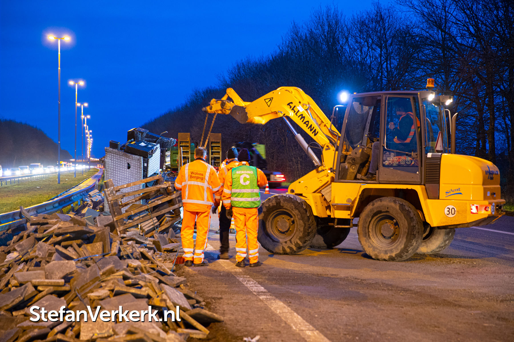 Foto's: Ongeval vrachtwagen met stoeptegels A50 Re 217,1 Vaassen