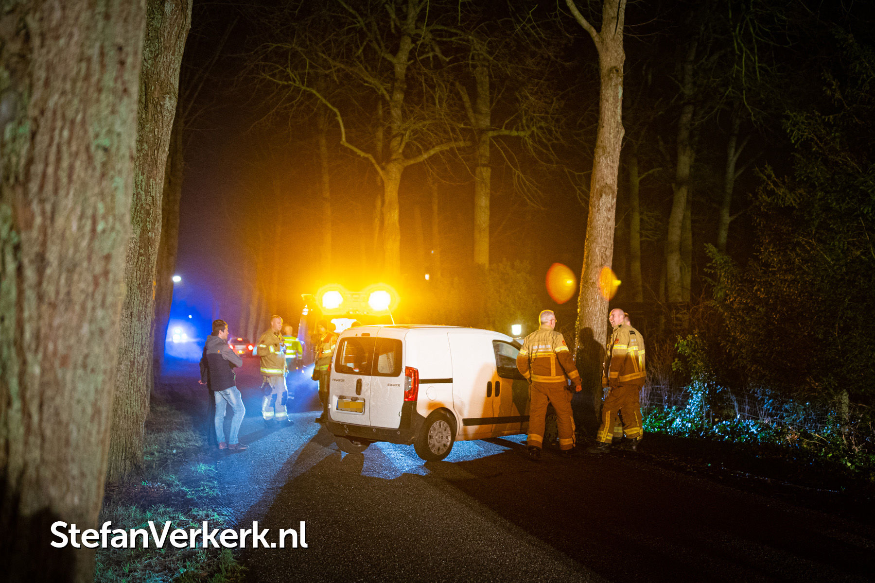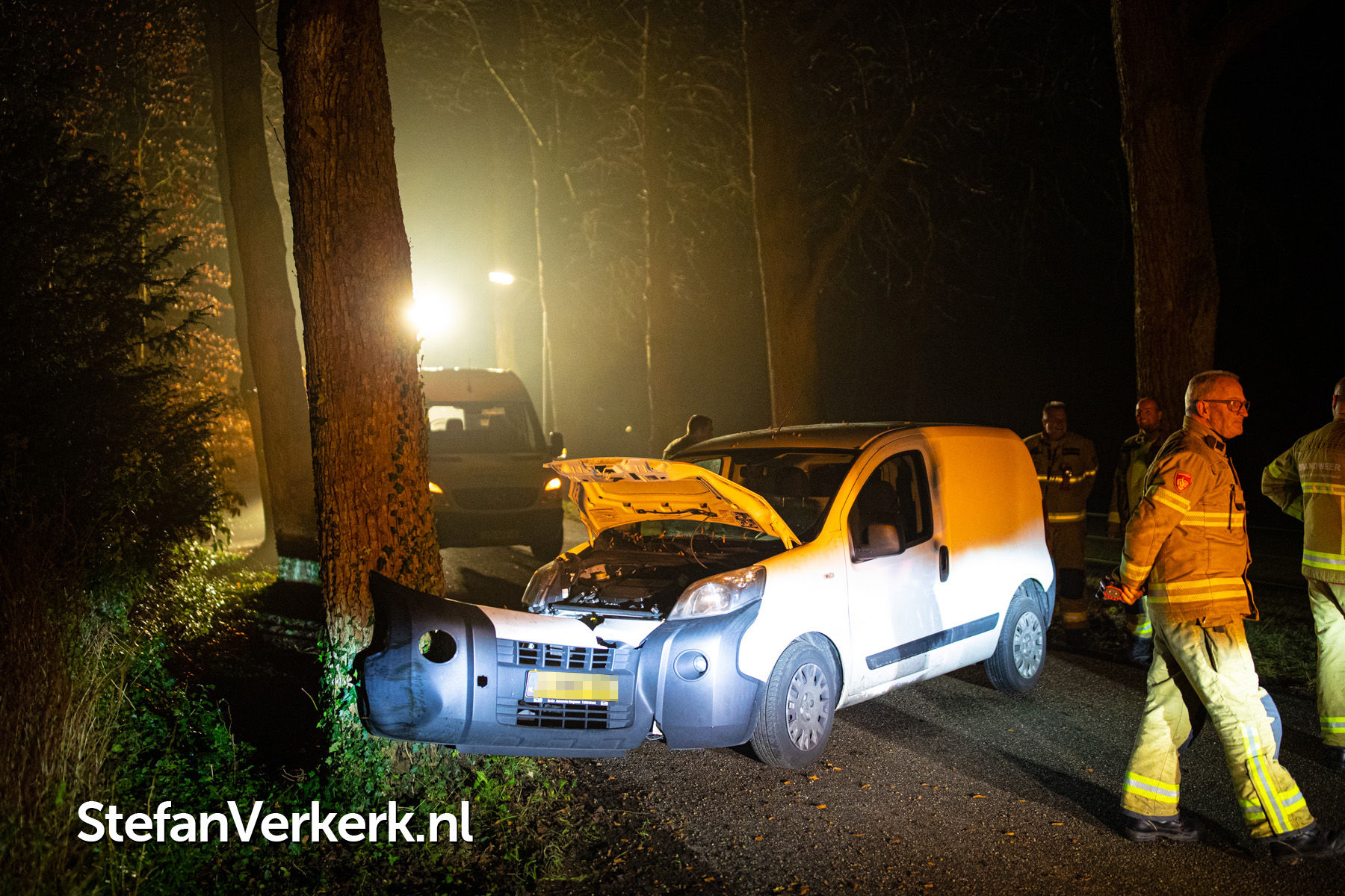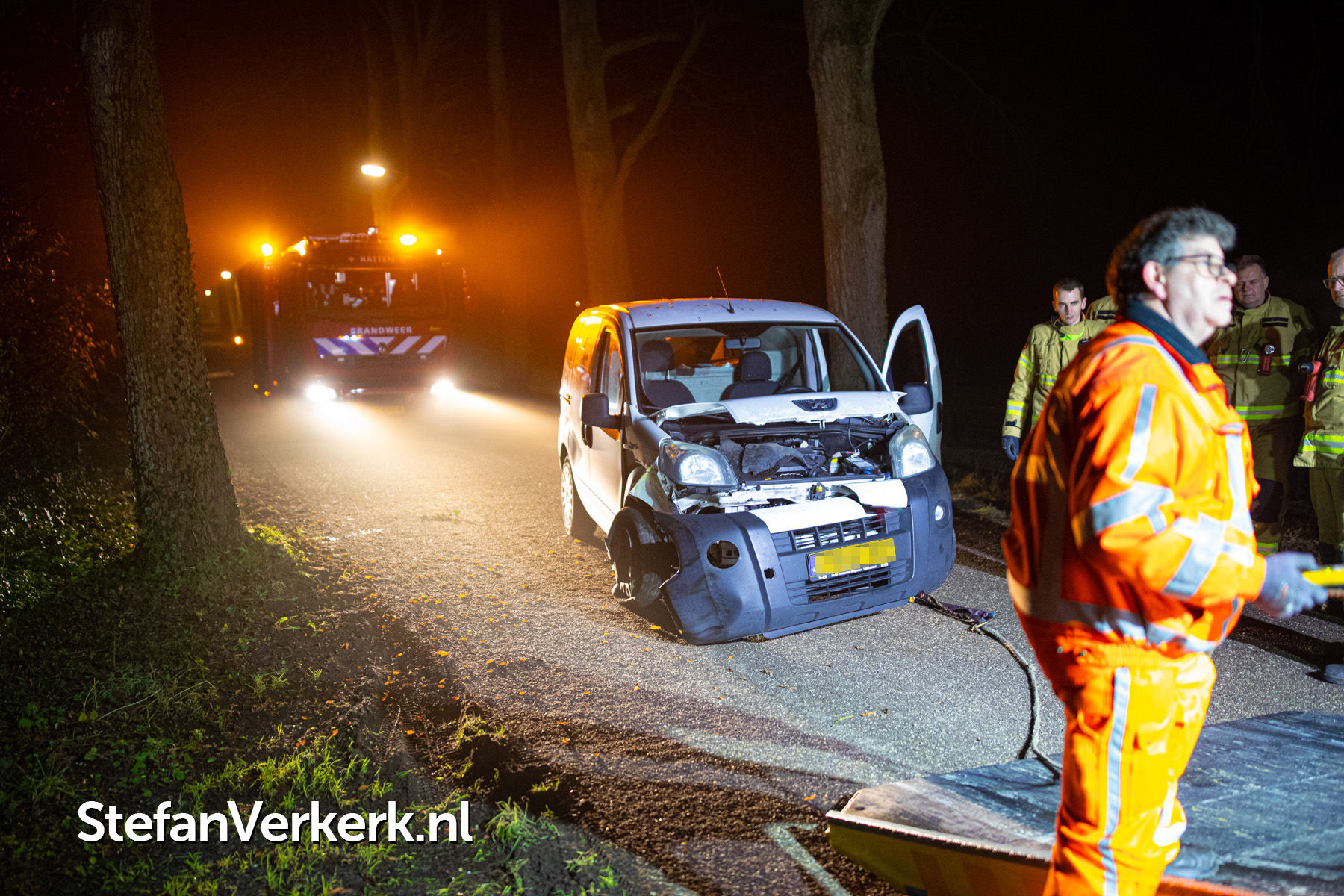 Foto's: Ongeval bedrijfsbusje tegen boom Veldweg Hattem