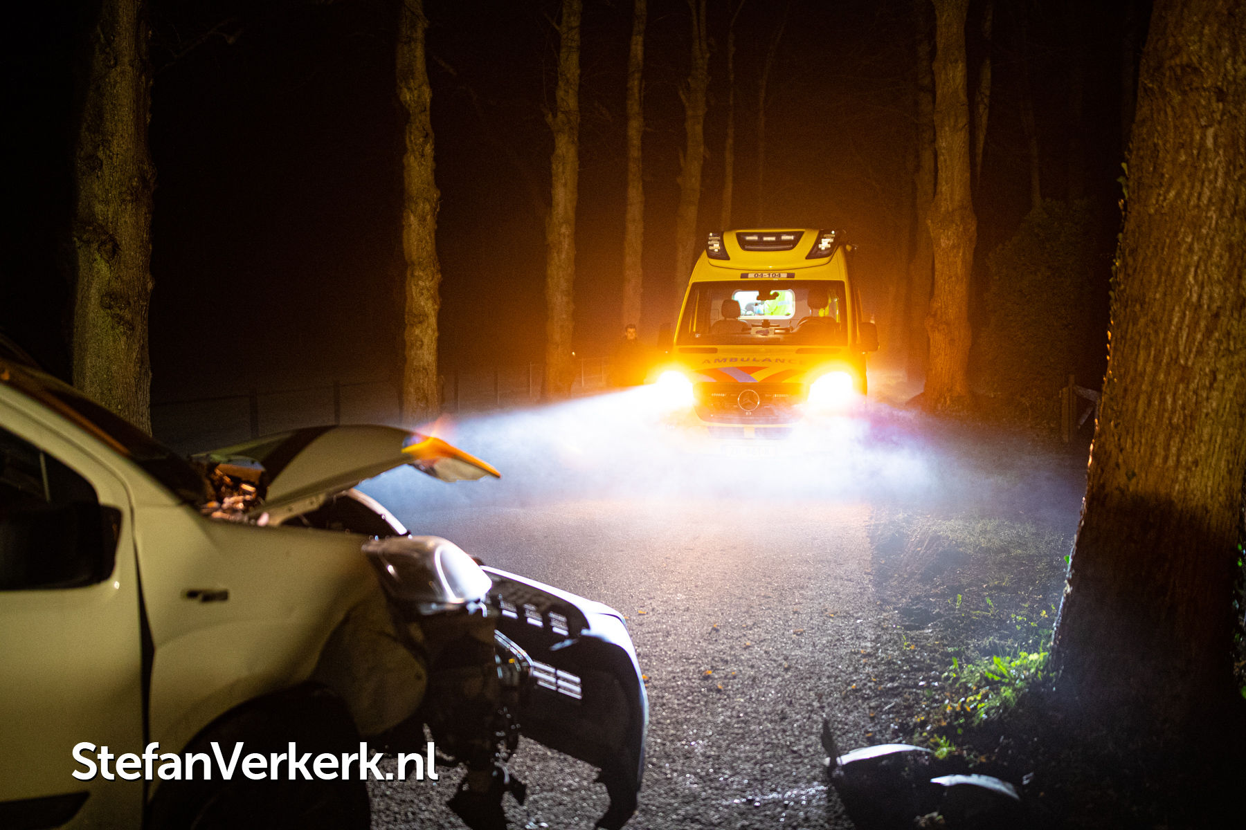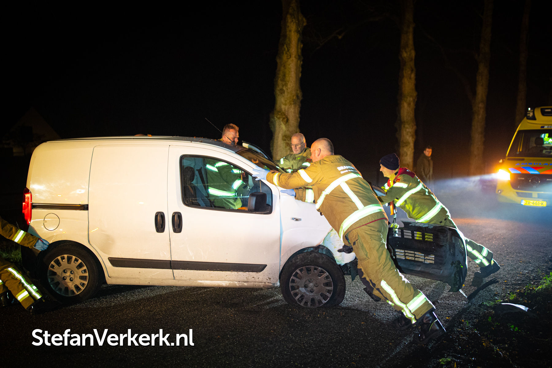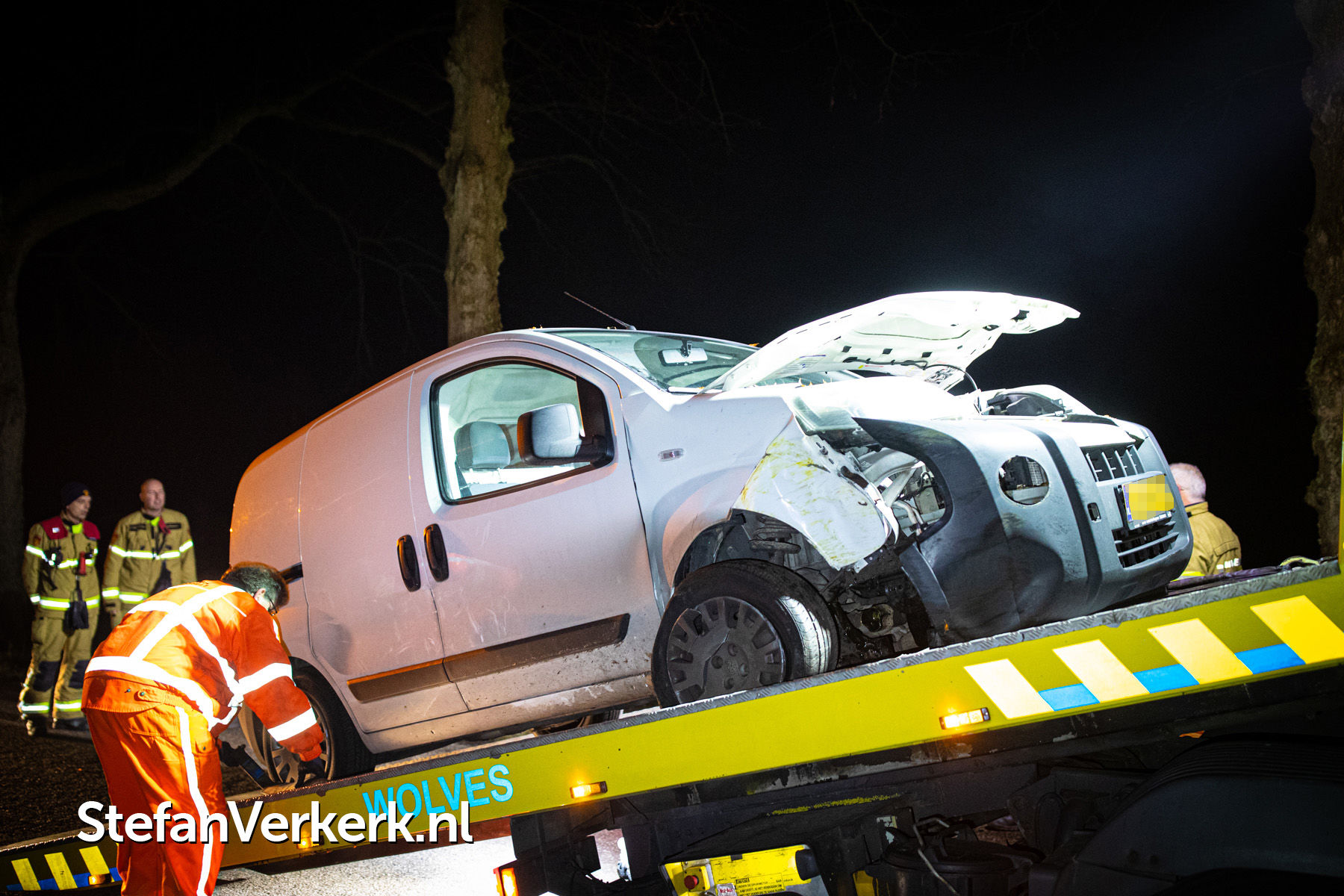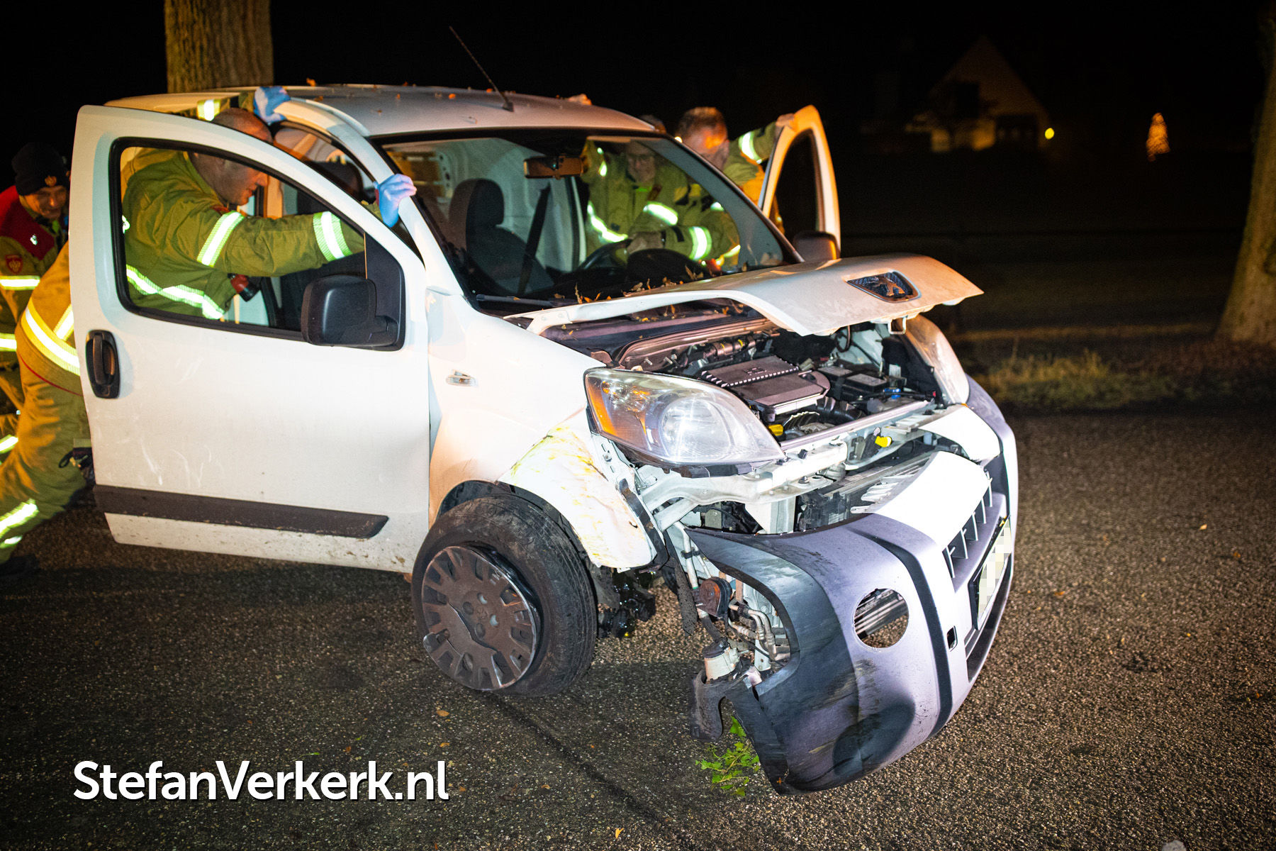 Foto's: Ongeval bedrijfsbusje tegen boom Veldweg Hattem