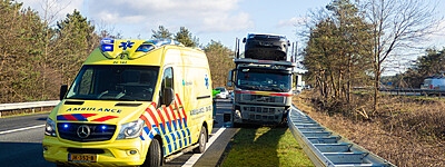 Ongeval vrachtwagen in middenberm tegen geleiderail A28 Li 67,3 Nunspeet