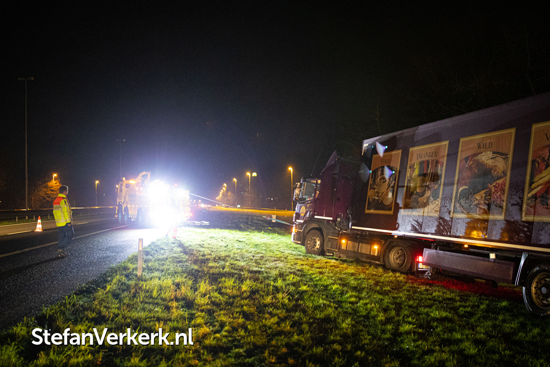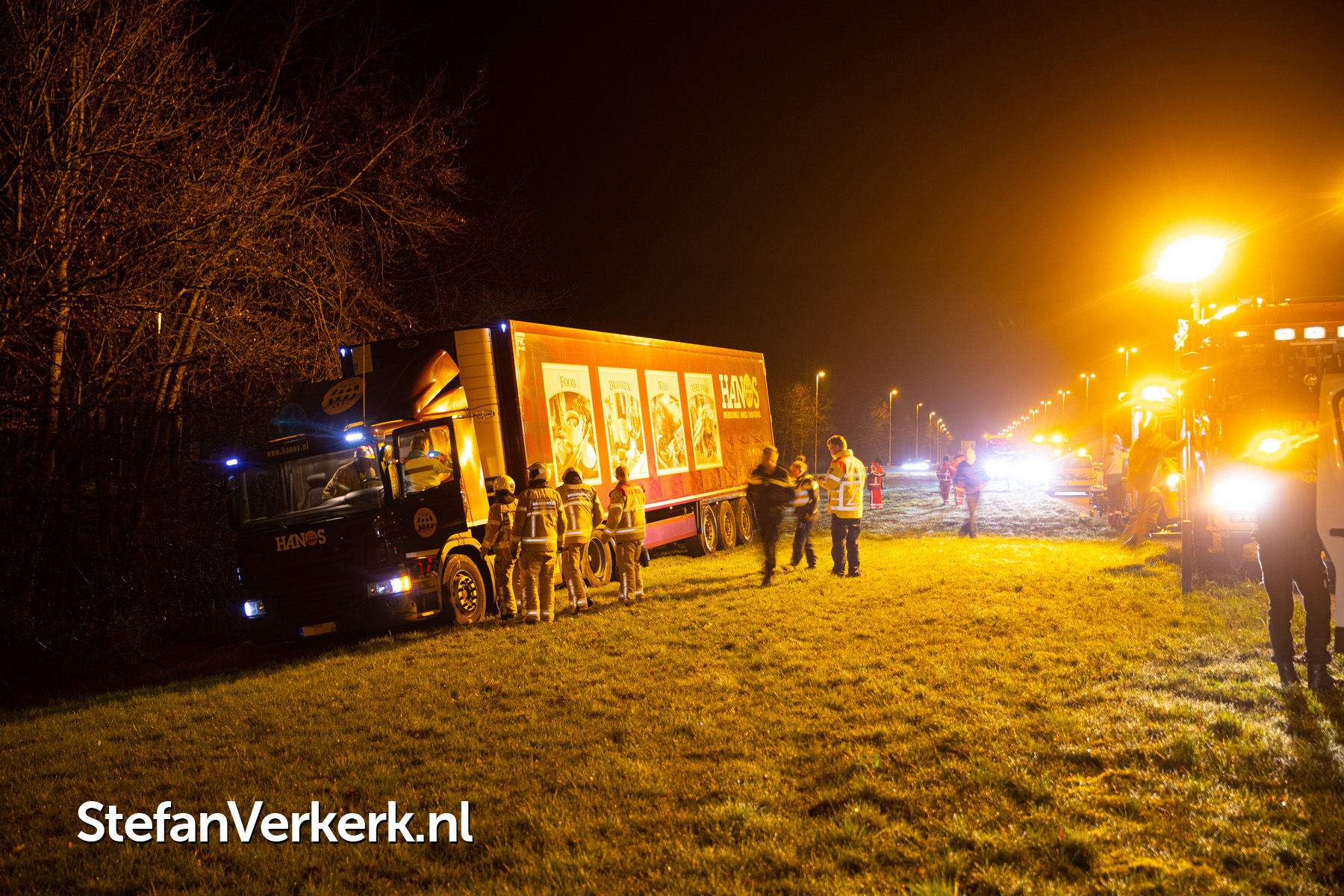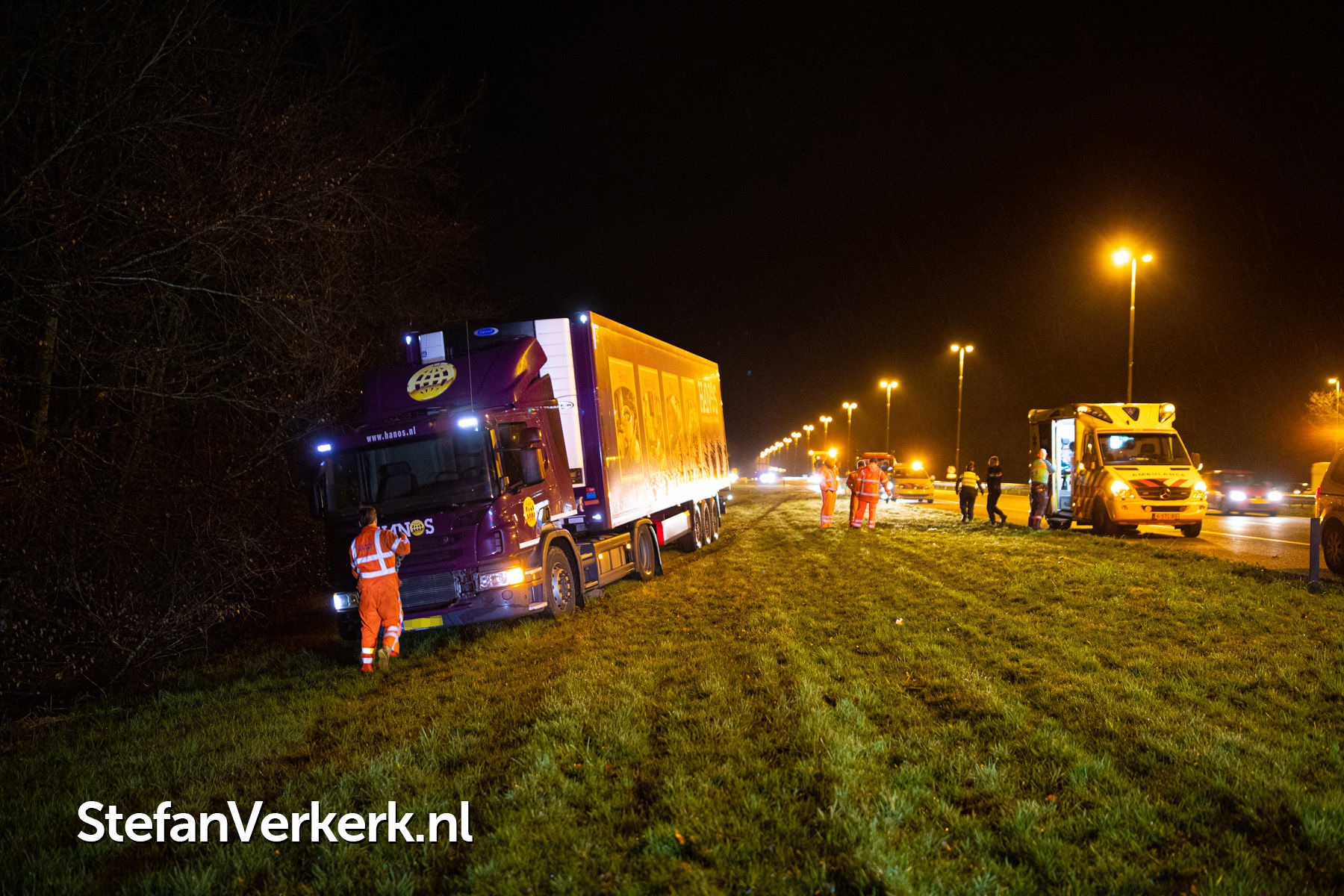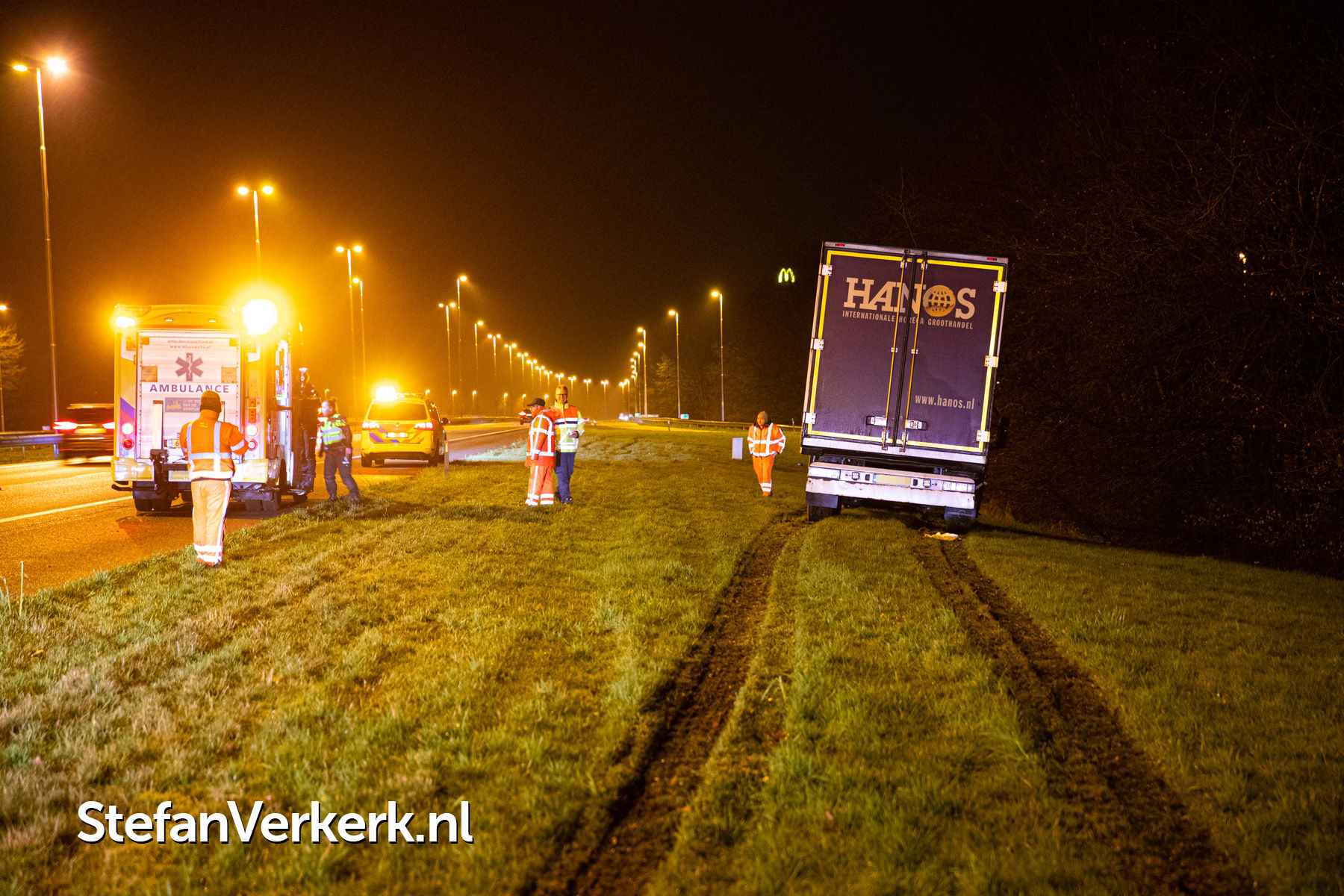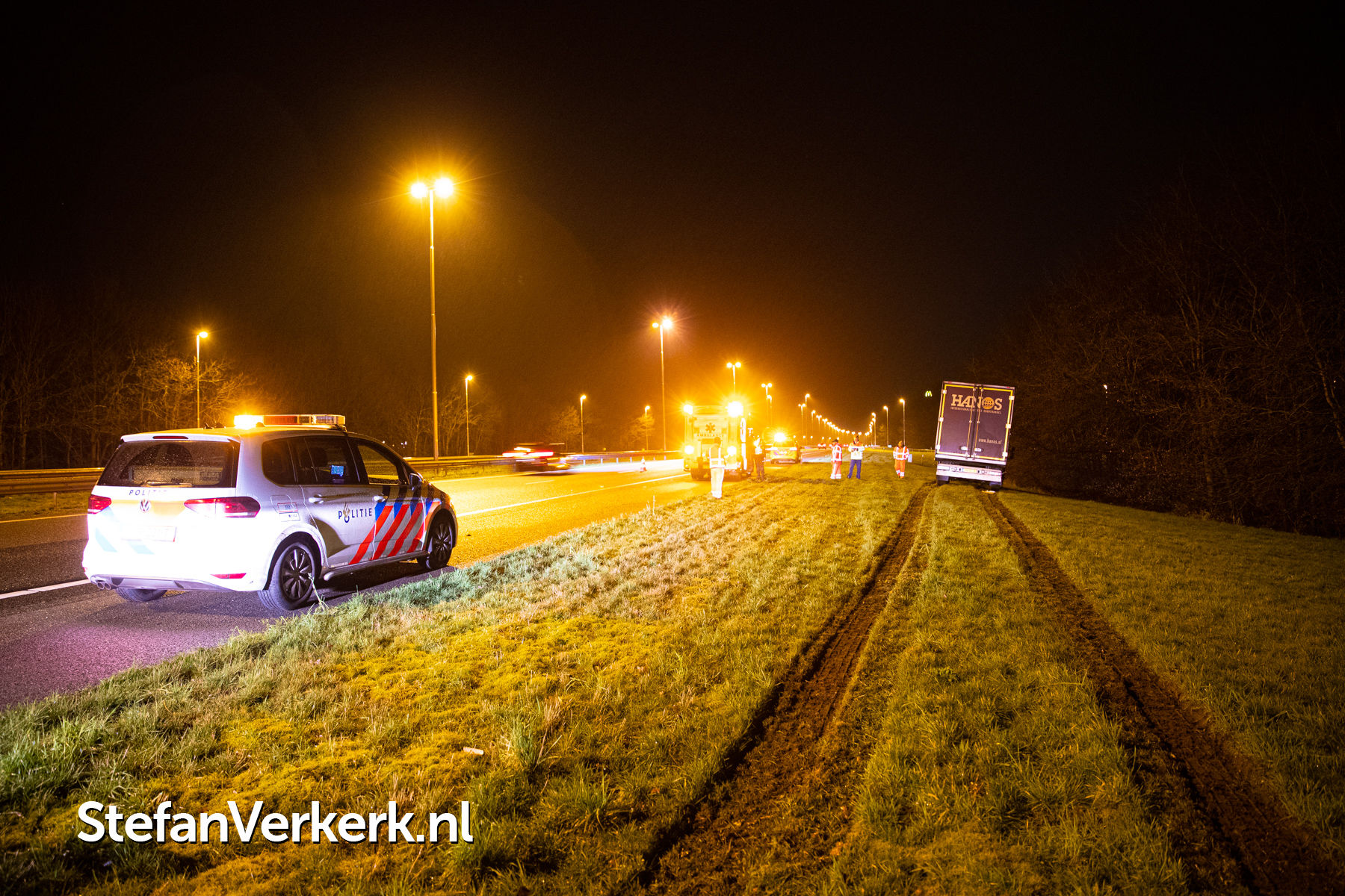 Foto's: Ongeval vrachtwagen van de weg A50 Li 225,4 Heerde