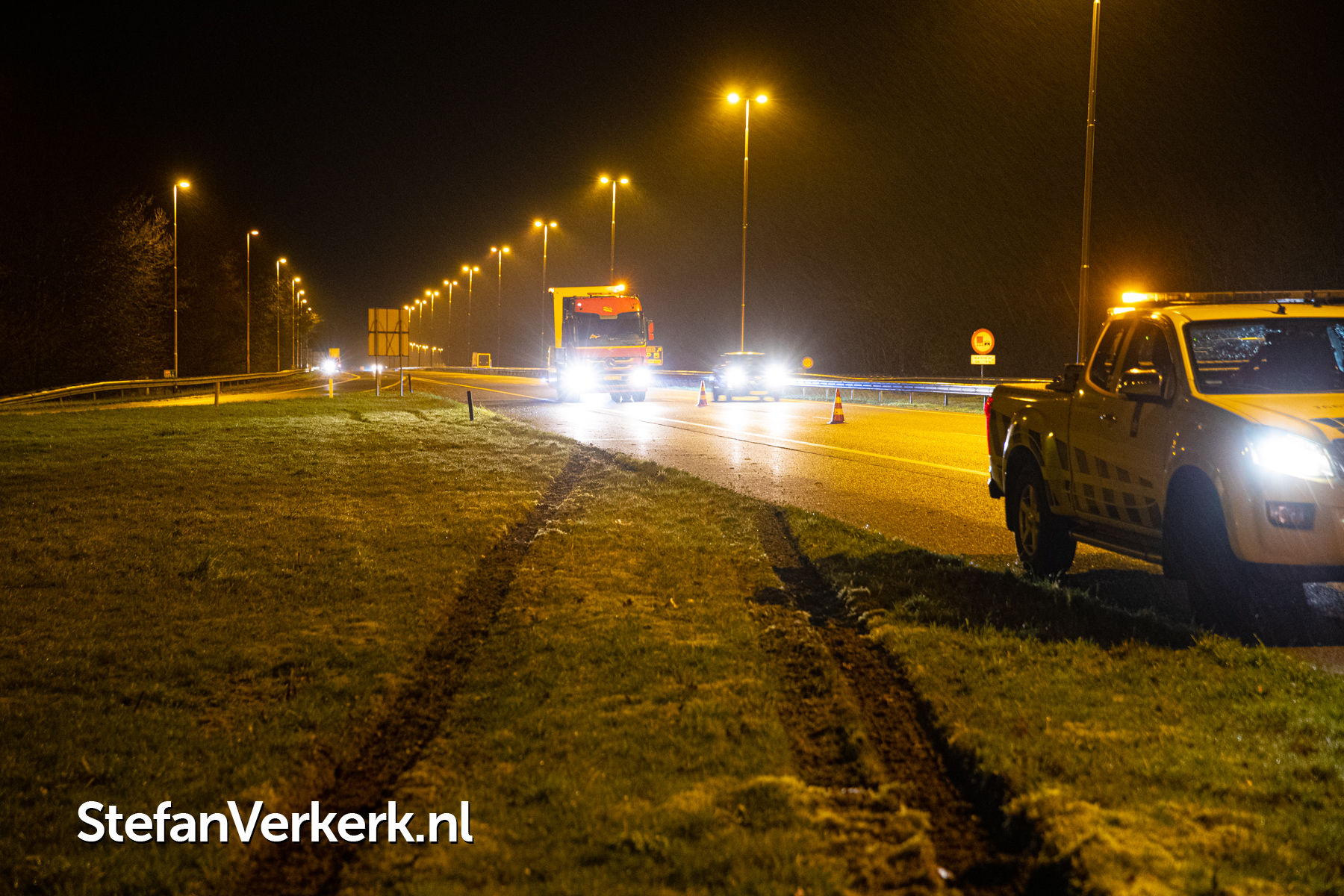 Ongeval vrachtwagen in middenberm tegen geleiderail A28 Li 67,3 Nunspeet