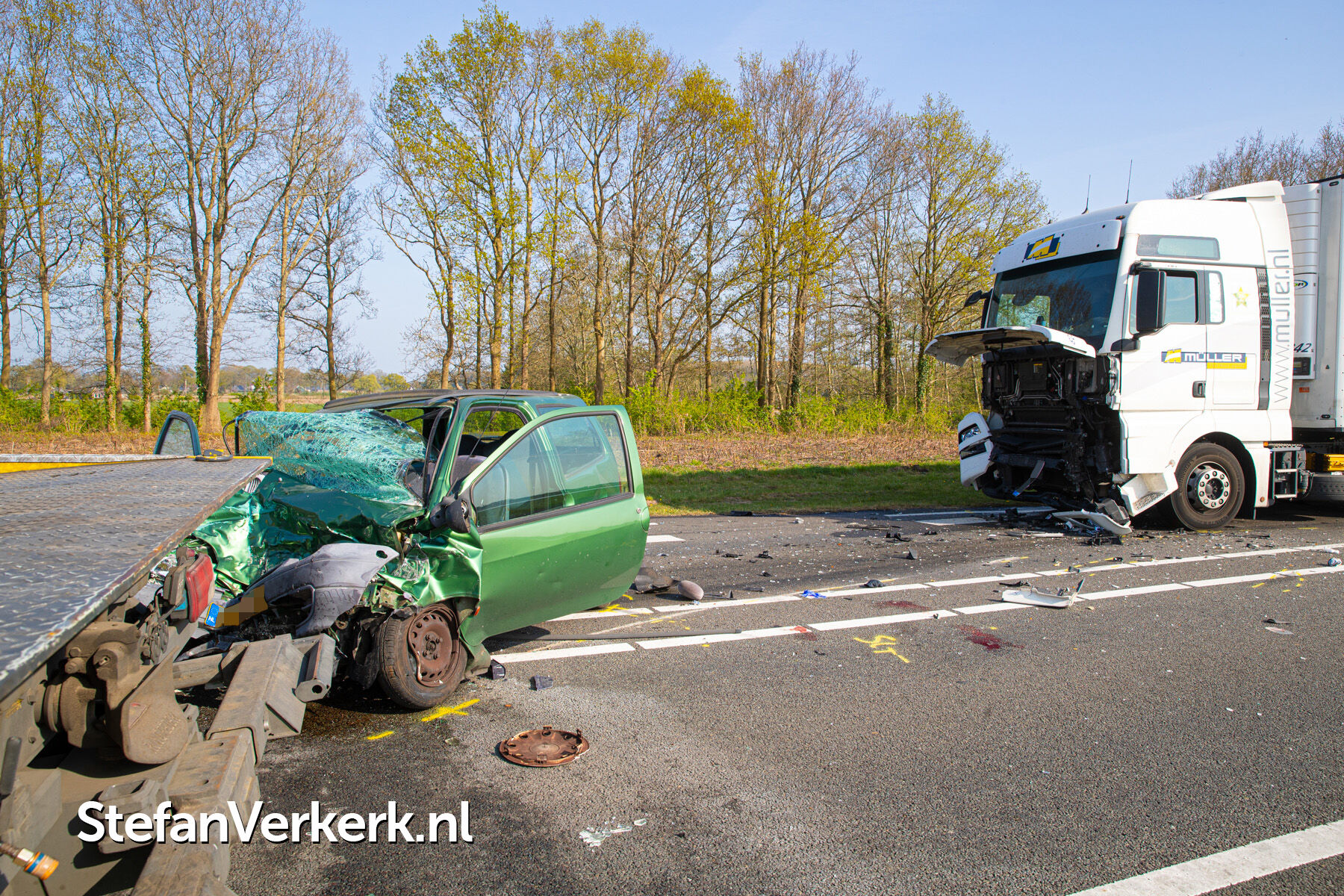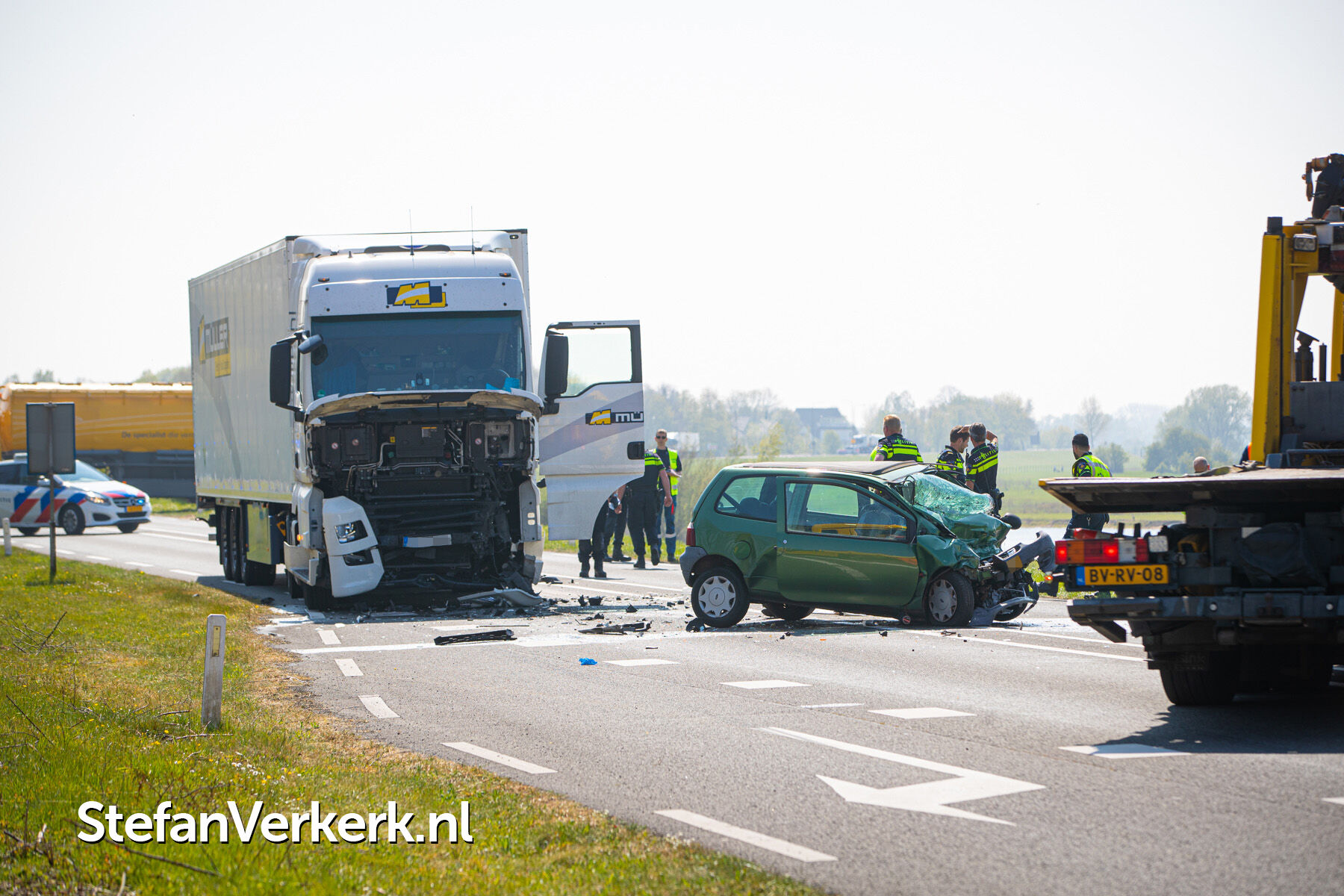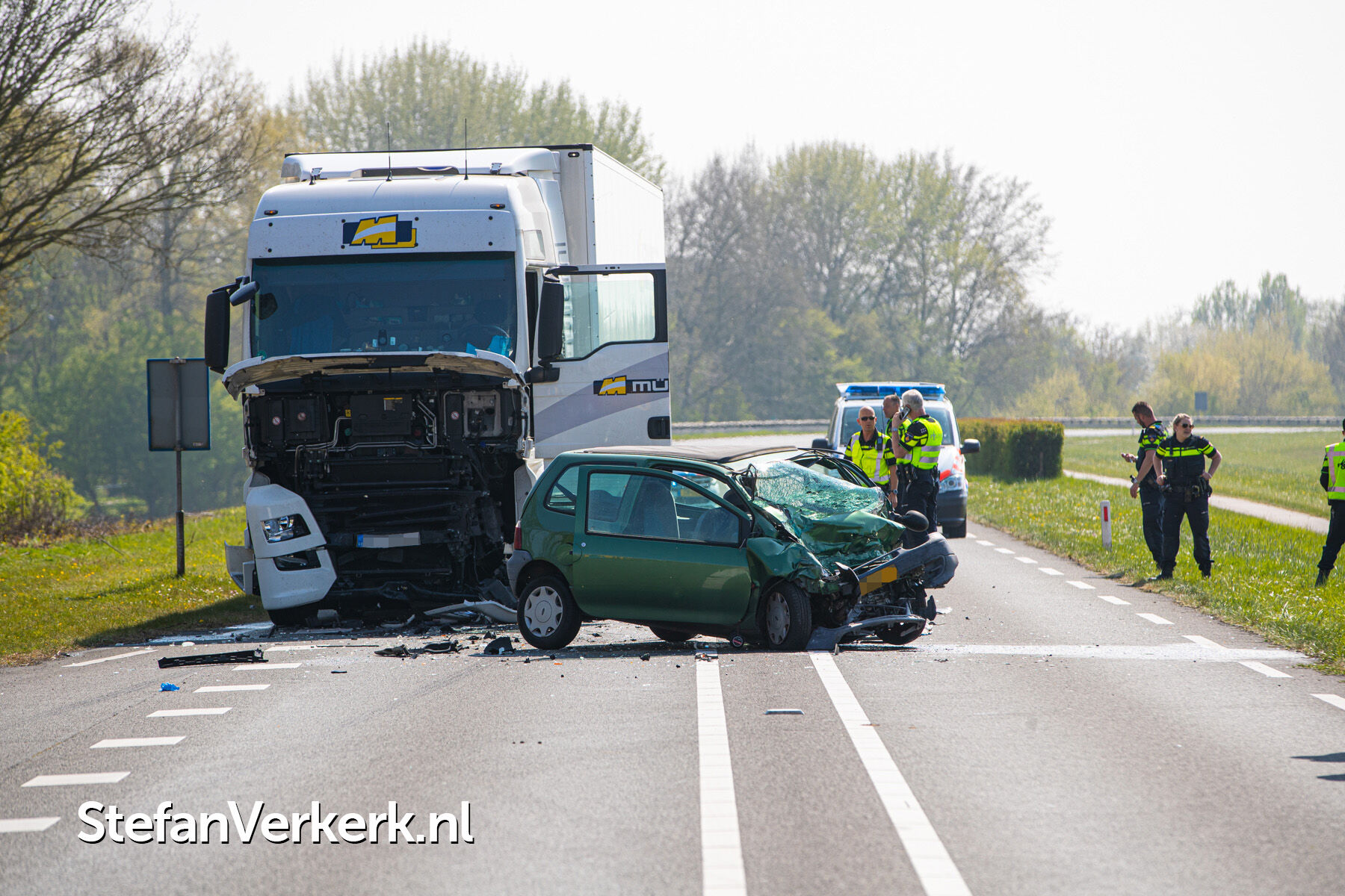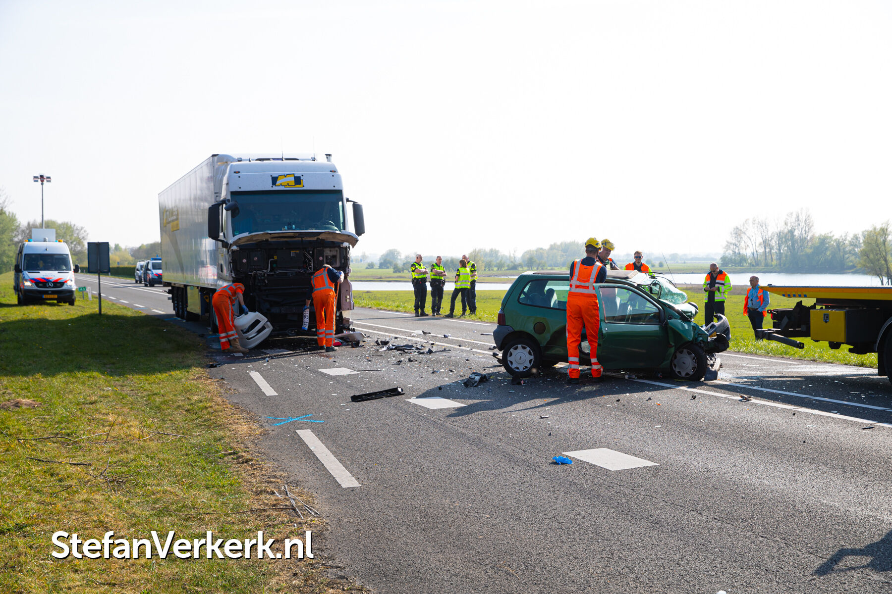 Foto's: Dodelijk ongeval auto - vrachtwagen N337 Rijksstraatweg 18,7 Wijhe