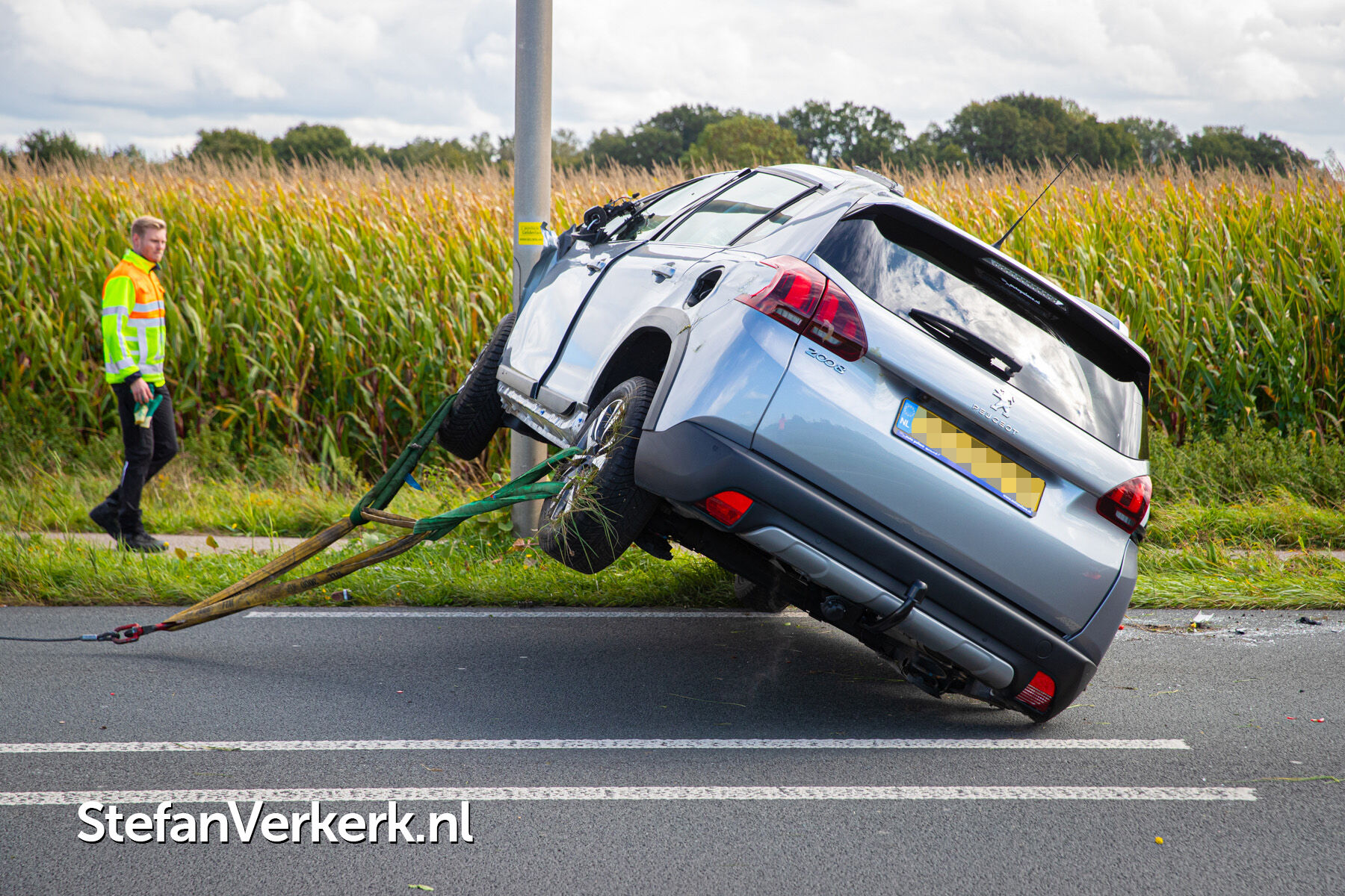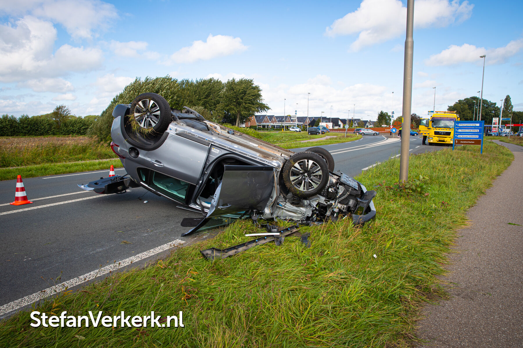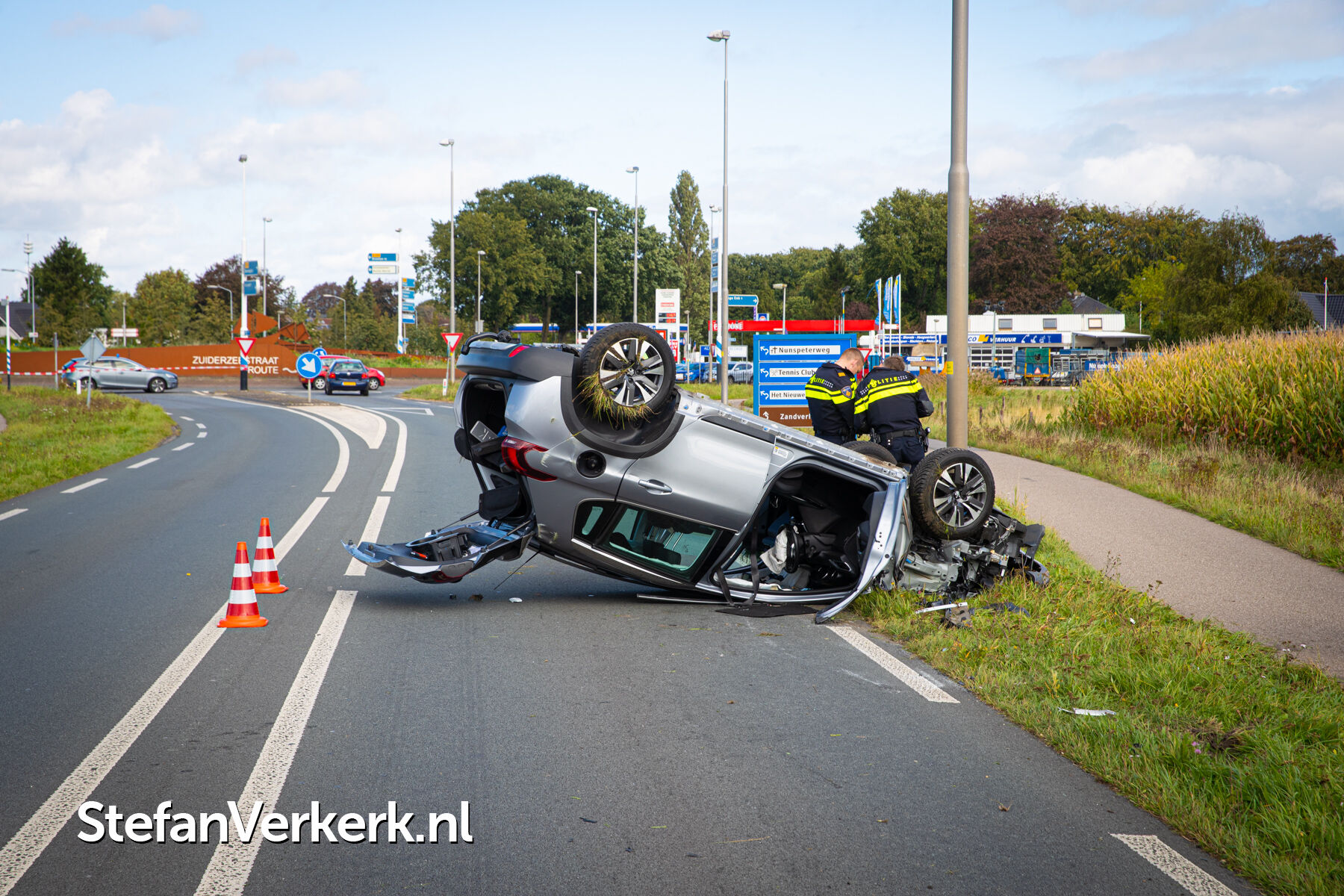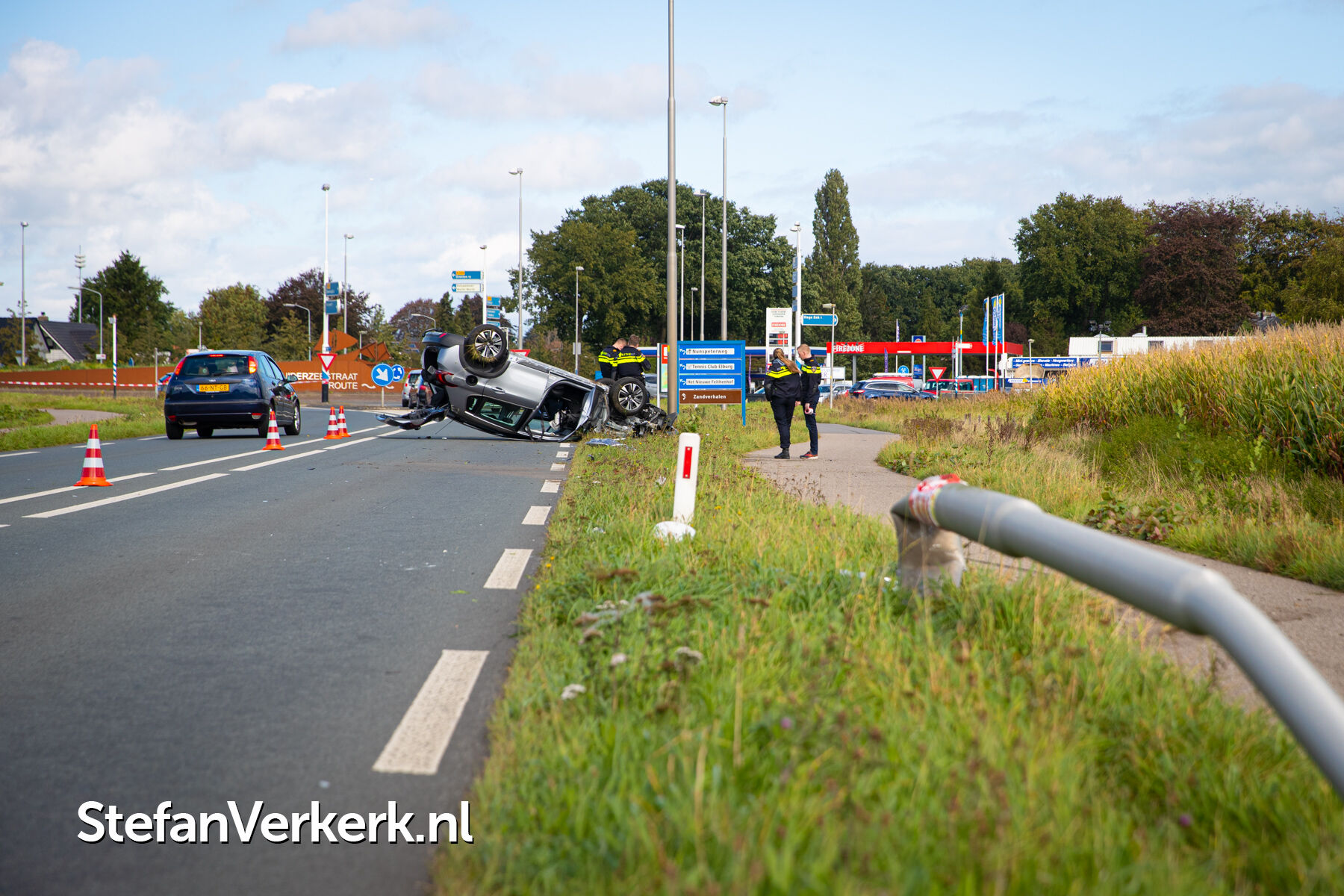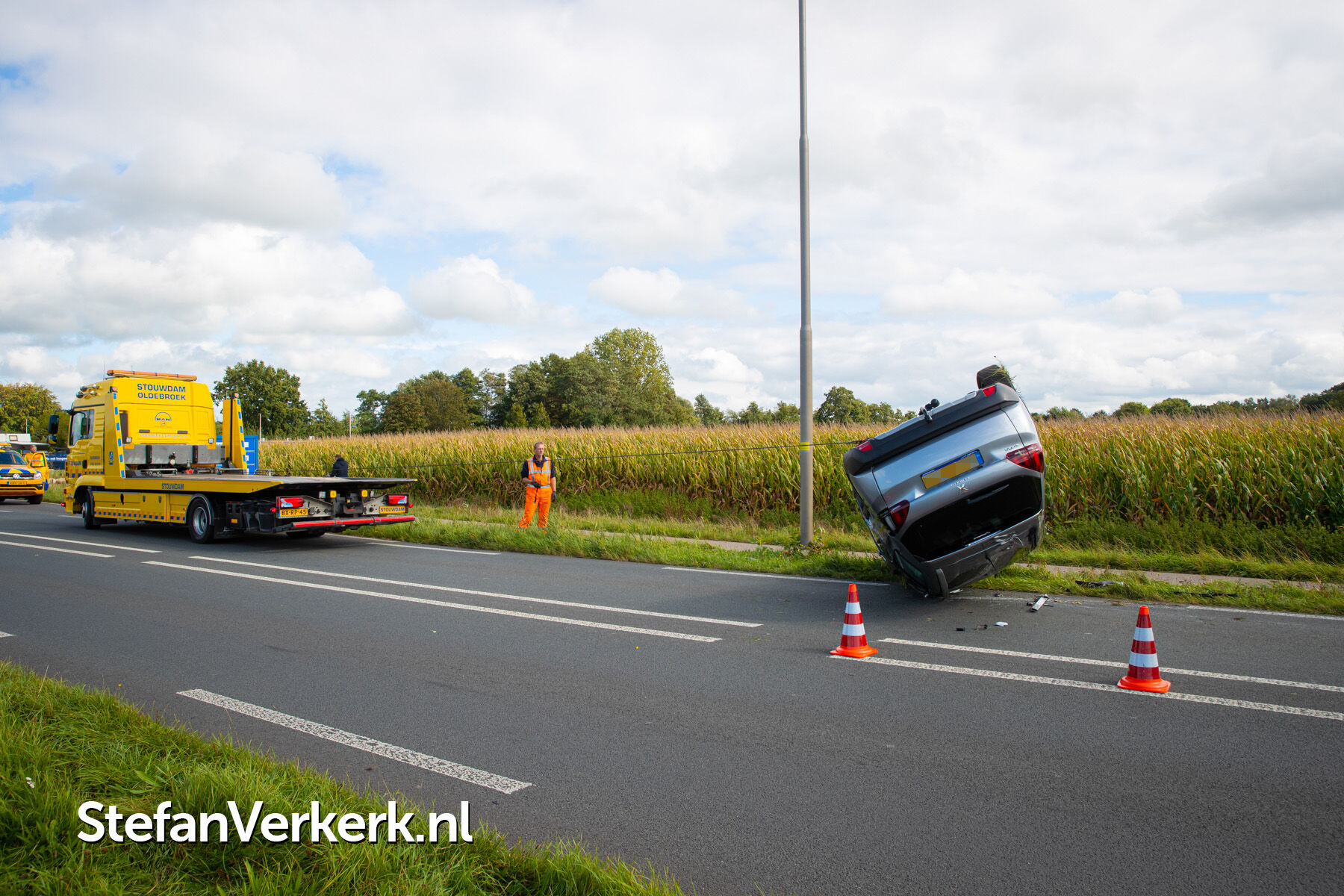 Foto's: Ongeval auto over de kop N310 Zuiderzeestraatweg West Elburg