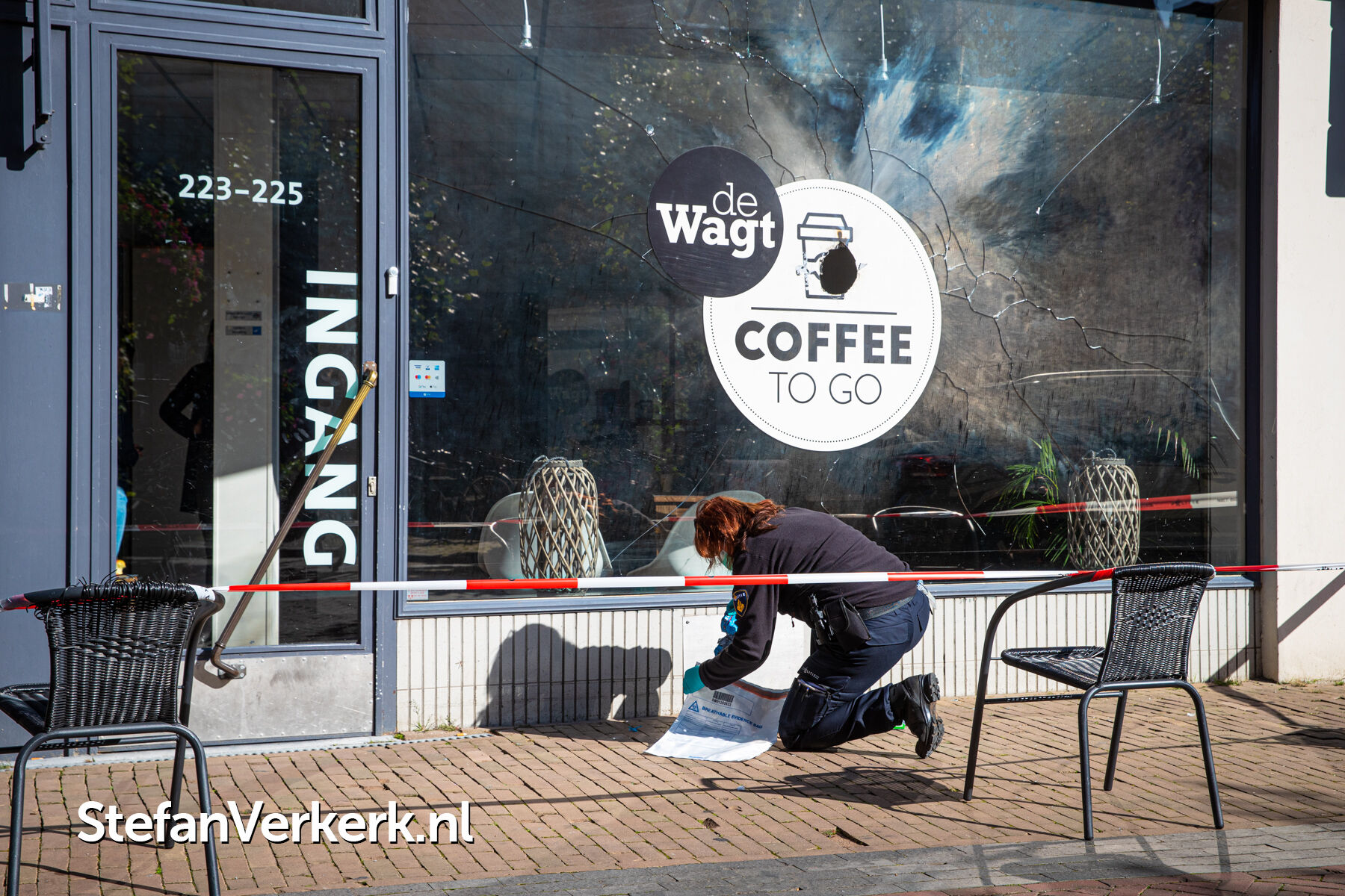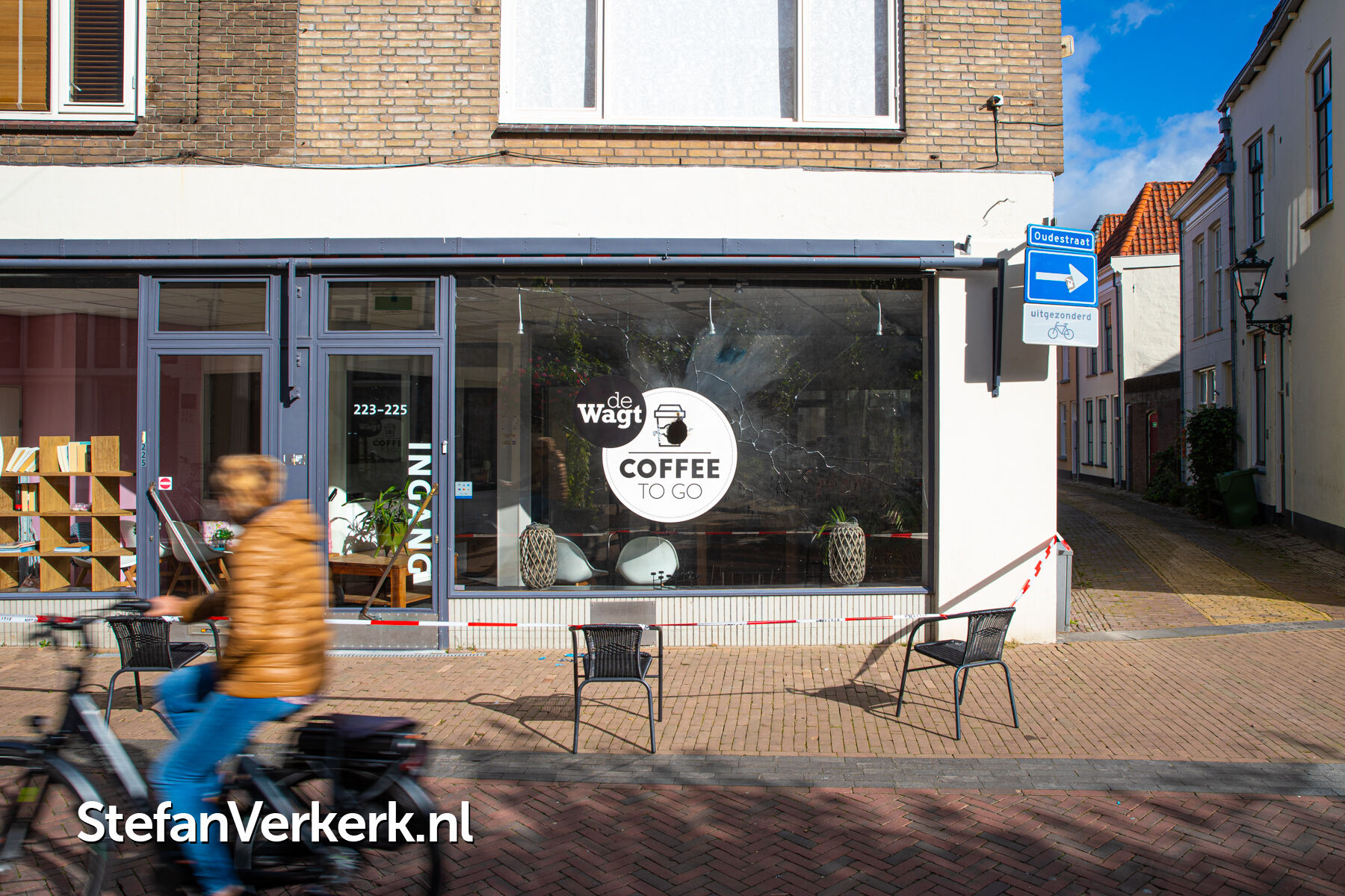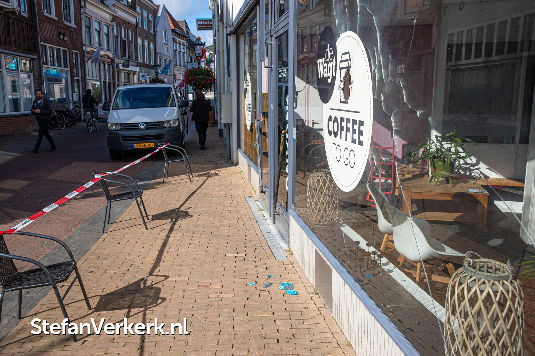 Foto's: Schade door explosie gasflesje tegen ruit pand Oudestraat Kampen