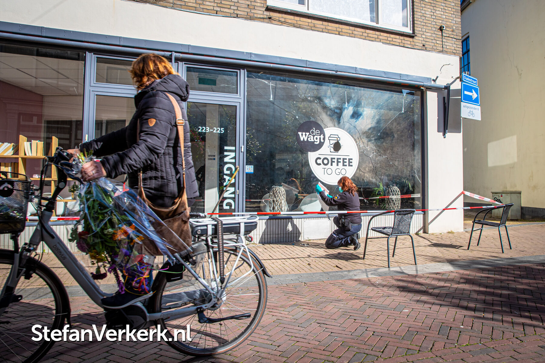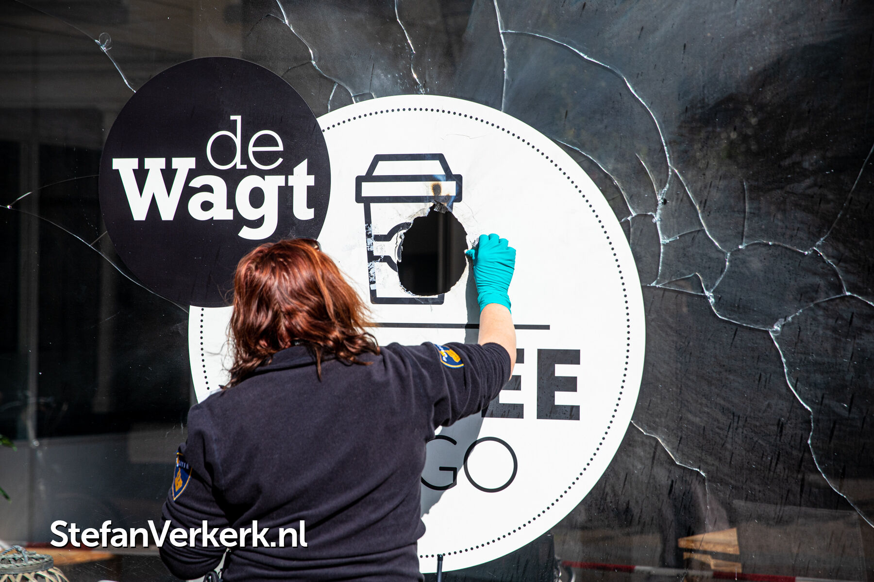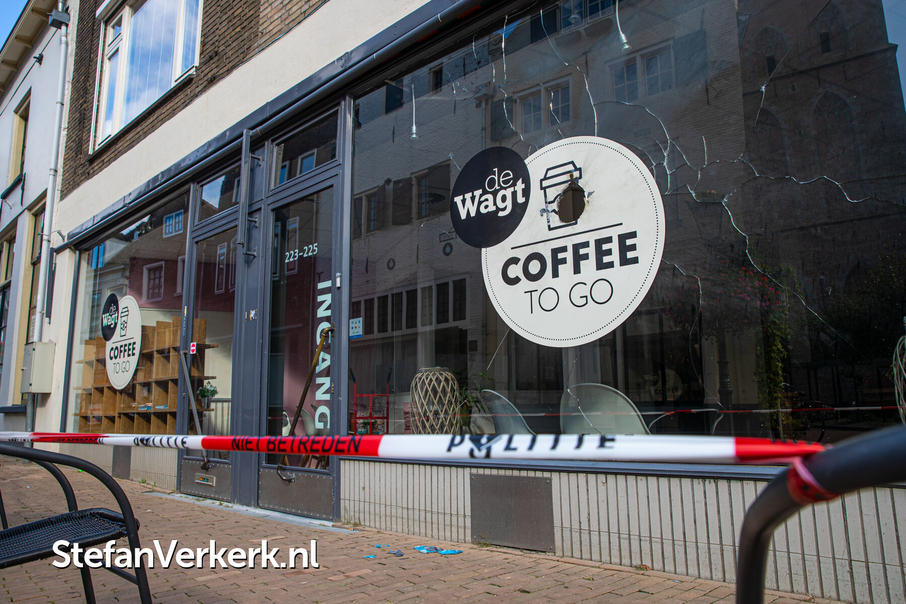 Foto's: Schade door explosie gasflesje tegen ruit pand Oudestraat Kampen