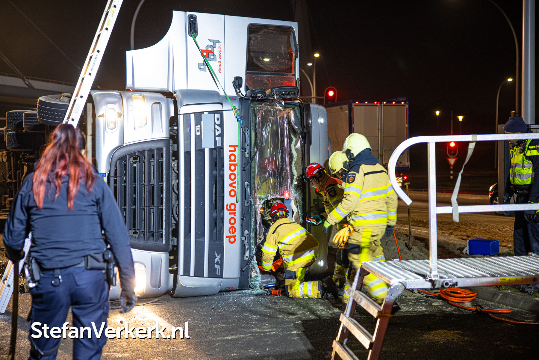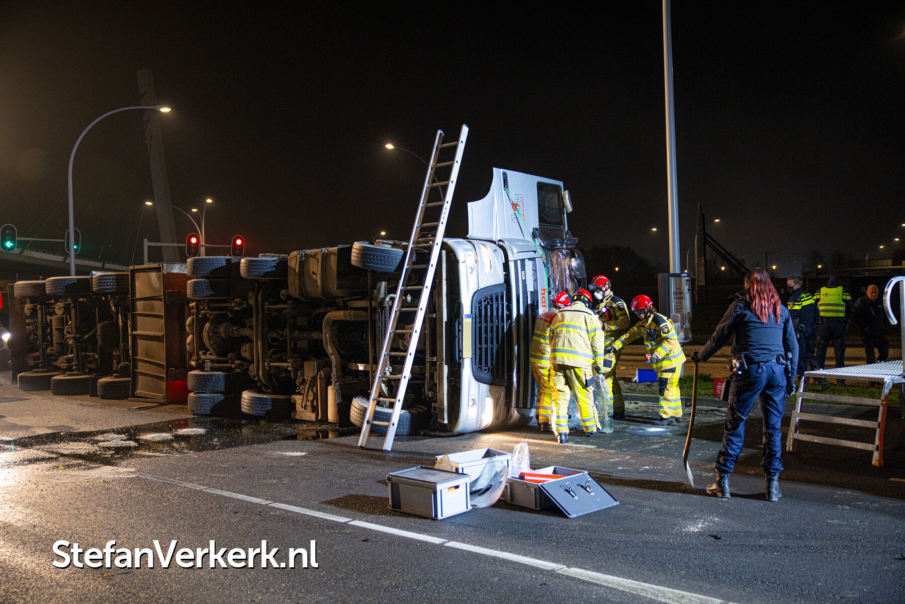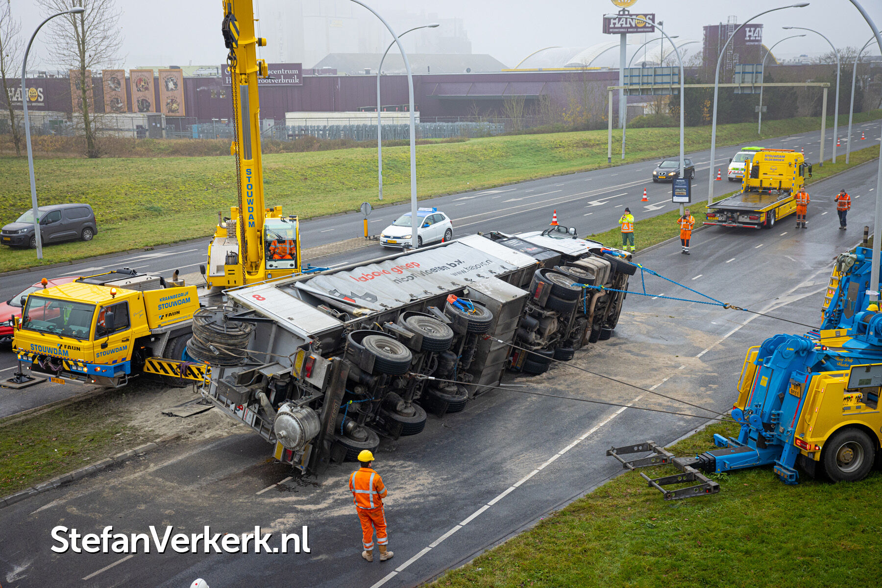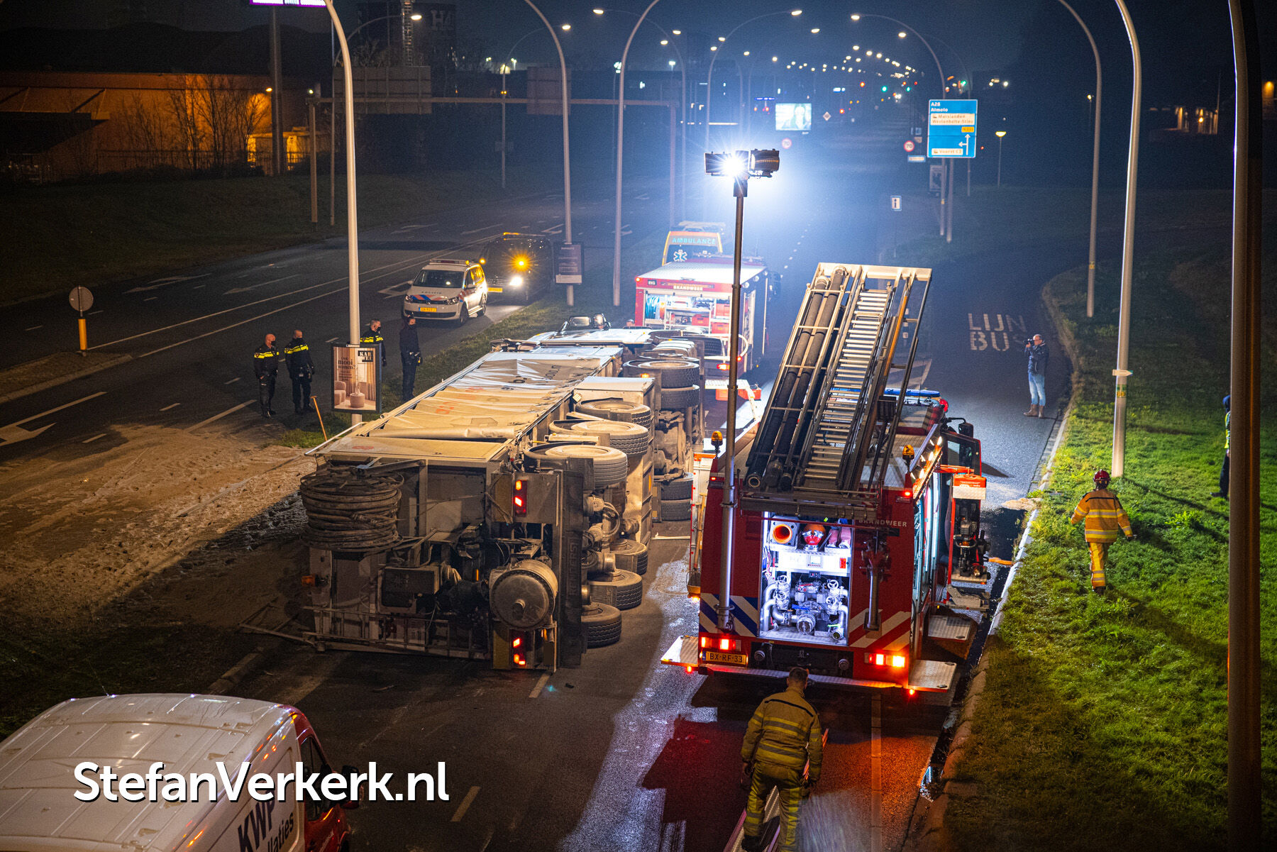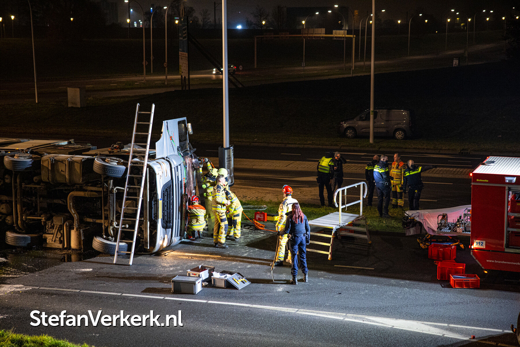 Foto's: Ongeval letsel gekantelde vrachtwagen Westenholterallee - Hasselterweg Zwolle