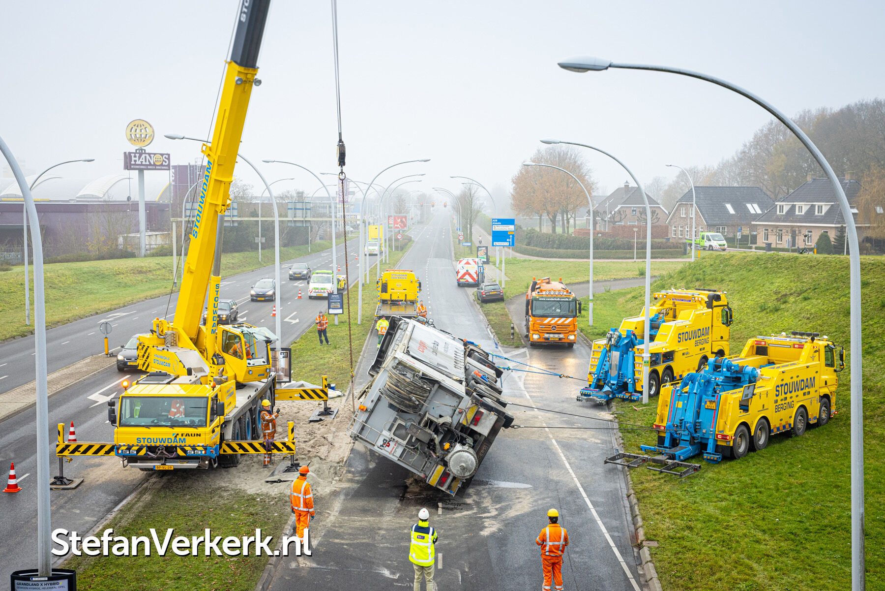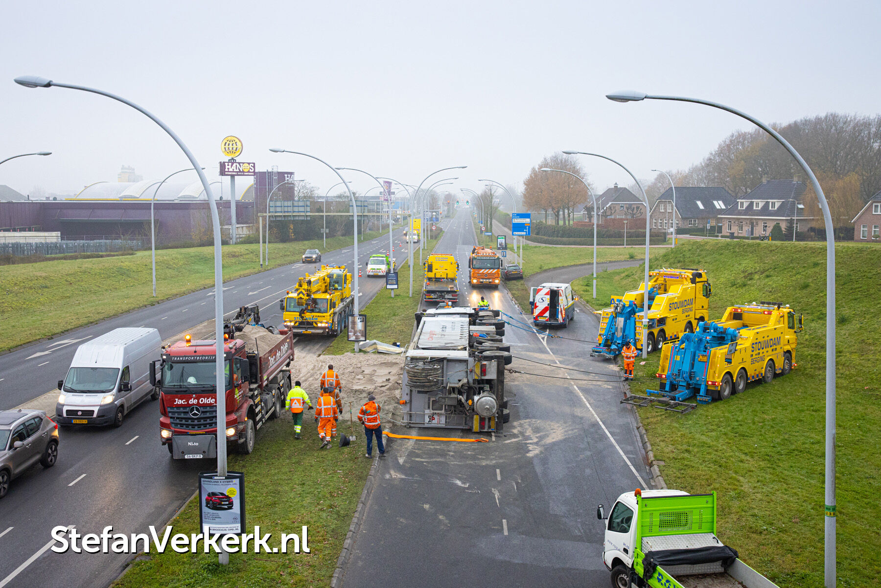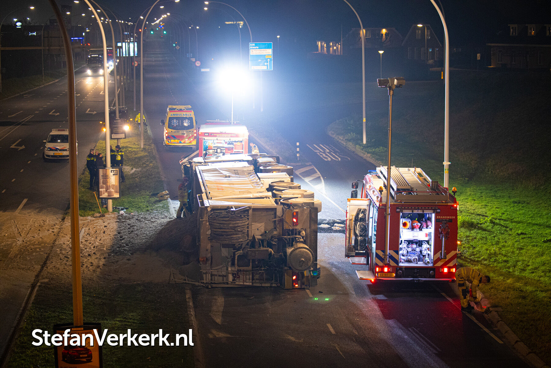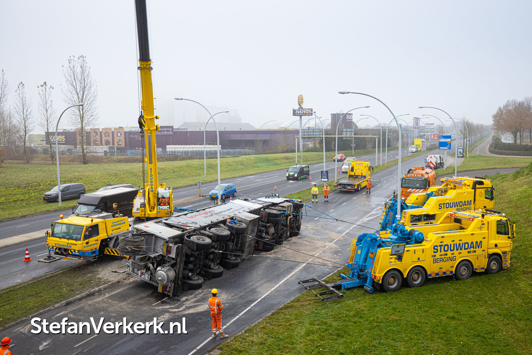 Foto's: Ongeval letsel gekantelde vrachtwagen Westenholterallee - Hasselterweg Zwolle