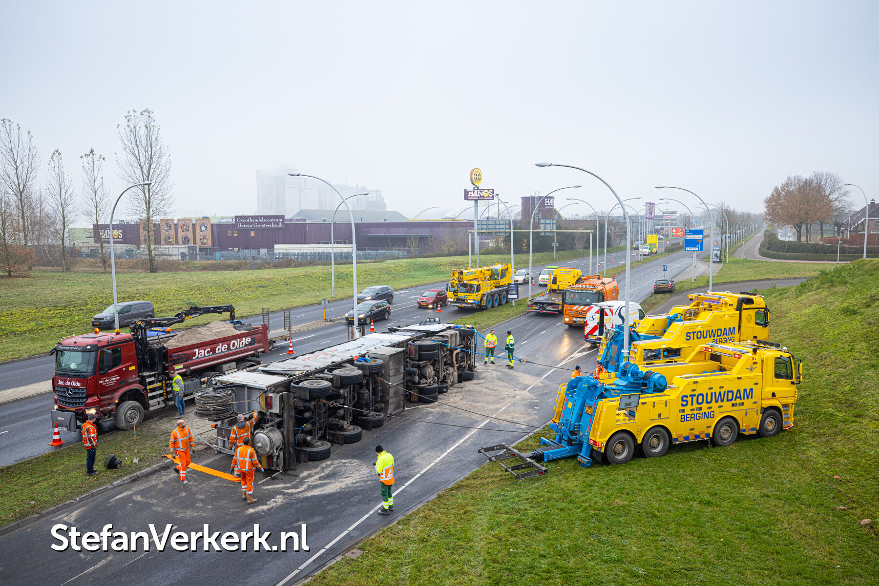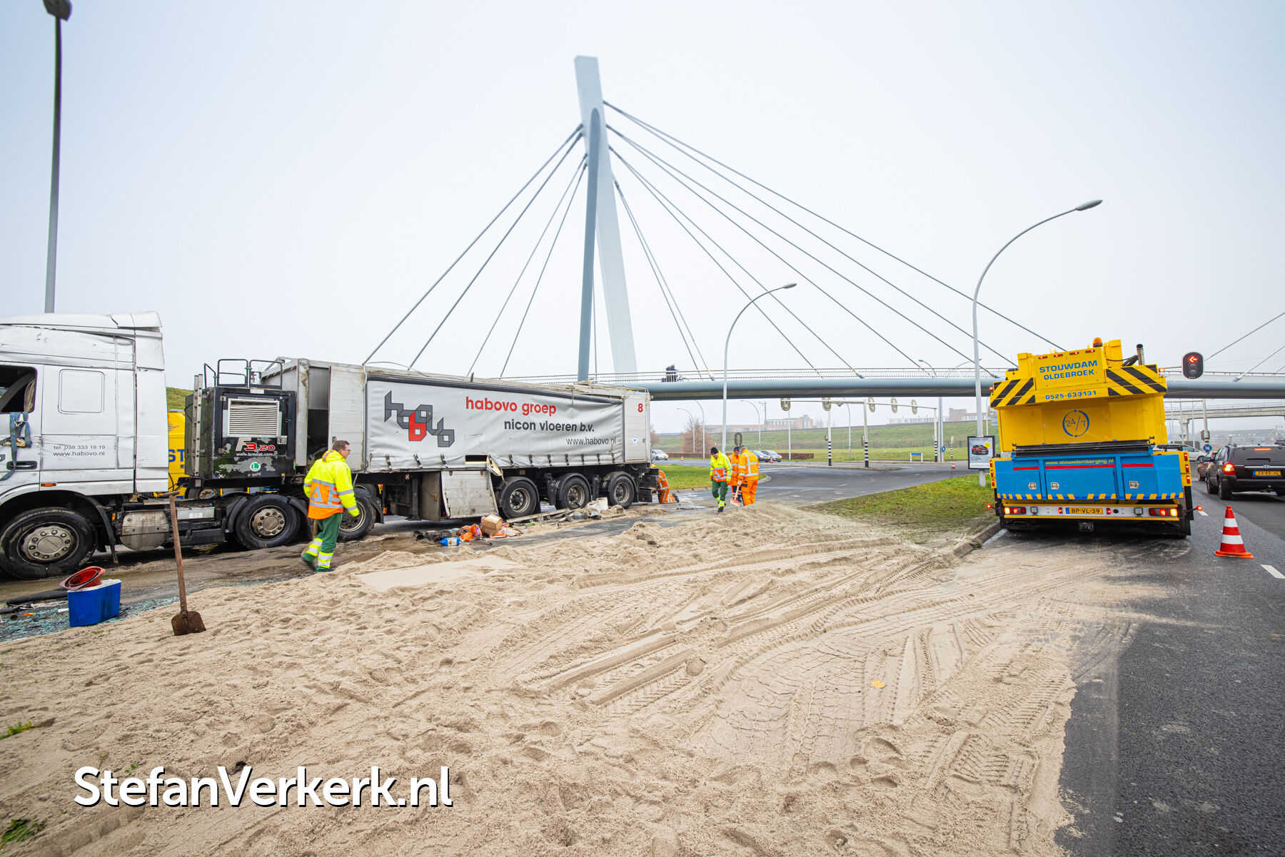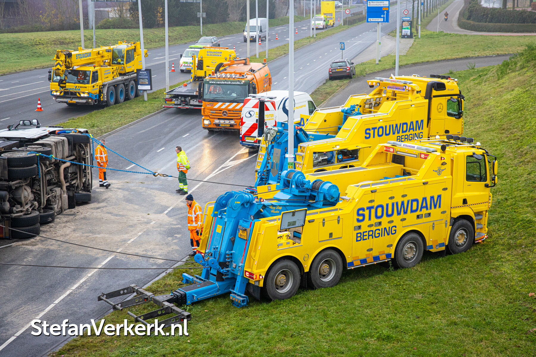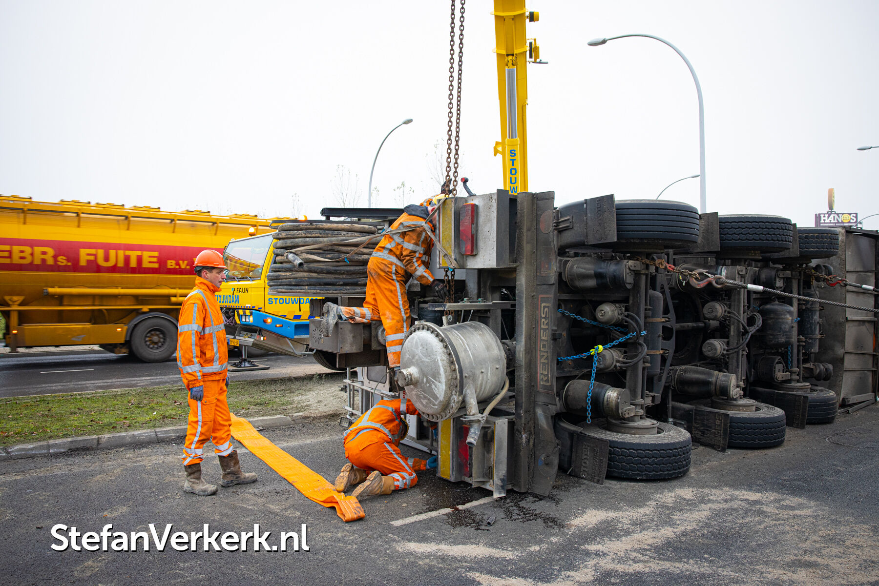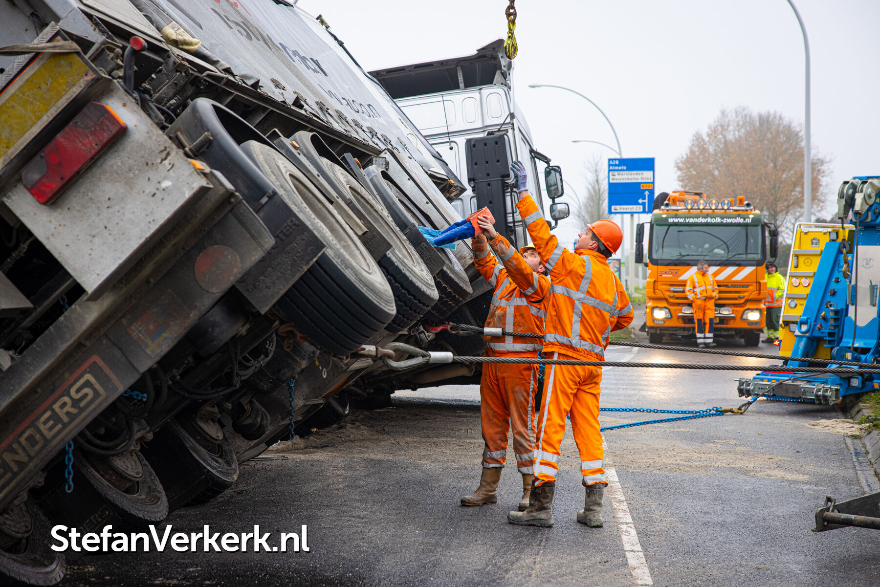 Foto's: Ongeval letsel gekantelde vrachtwagen Westenholterallee - Hasselterweg Zwolle