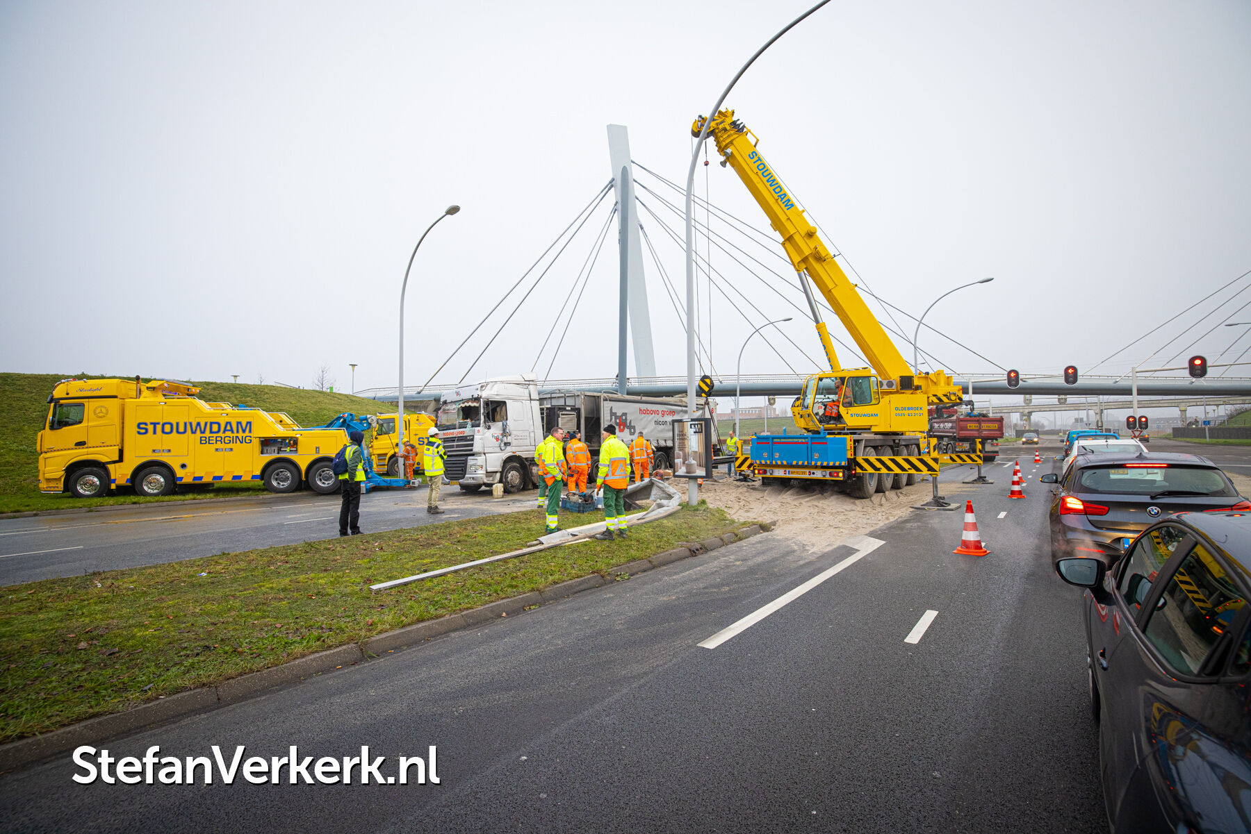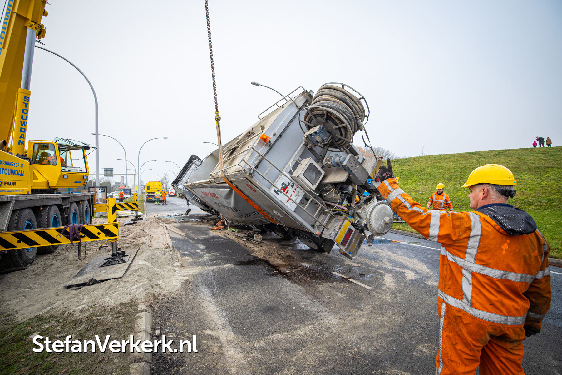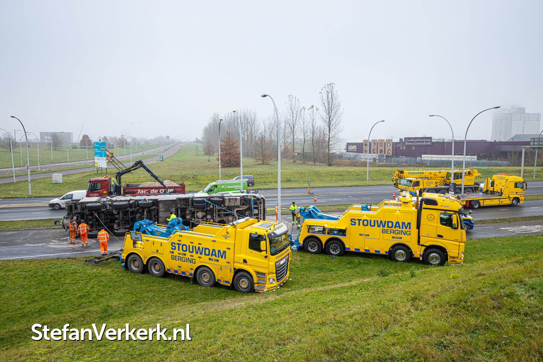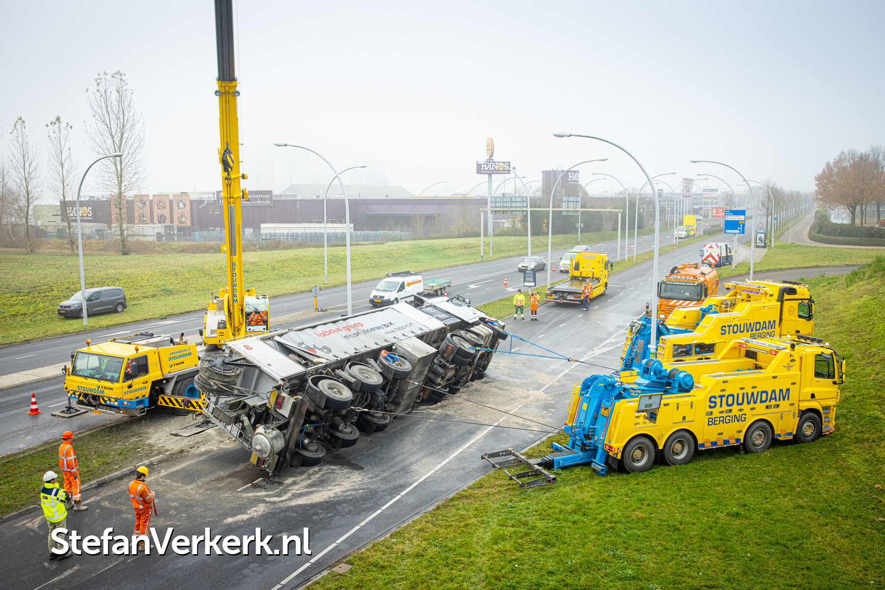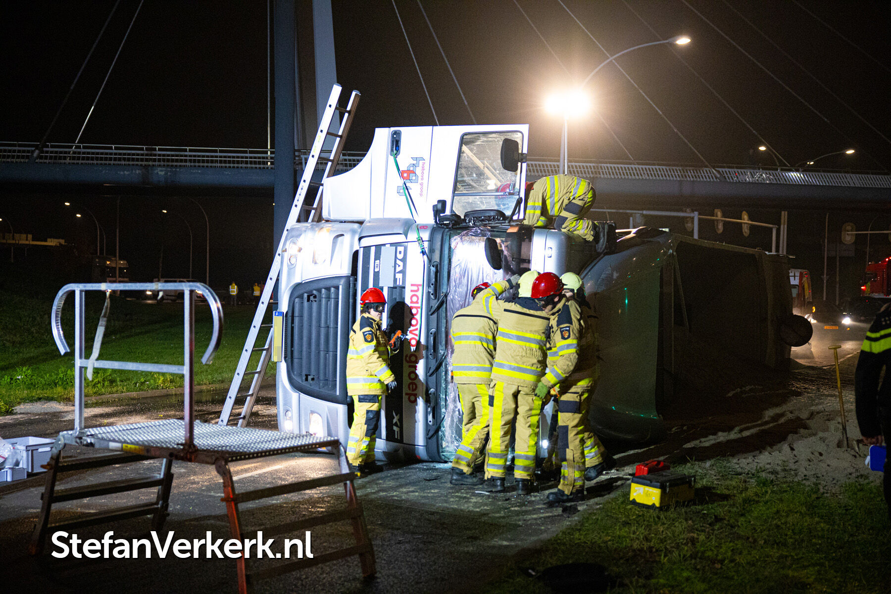 Foto's: Ongeval letsel gekantelde vrachtwagen Westenholterallee - Hasselterweg Zwolle