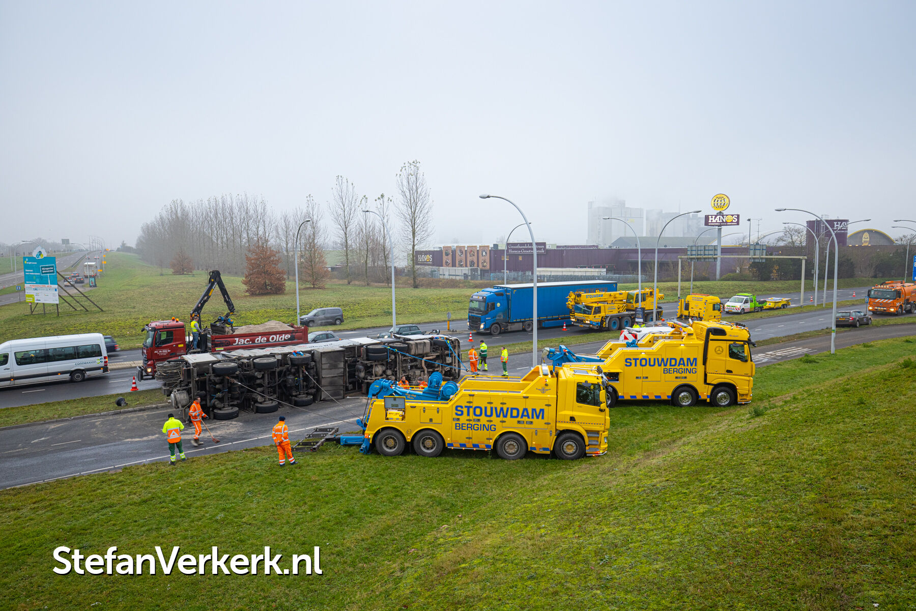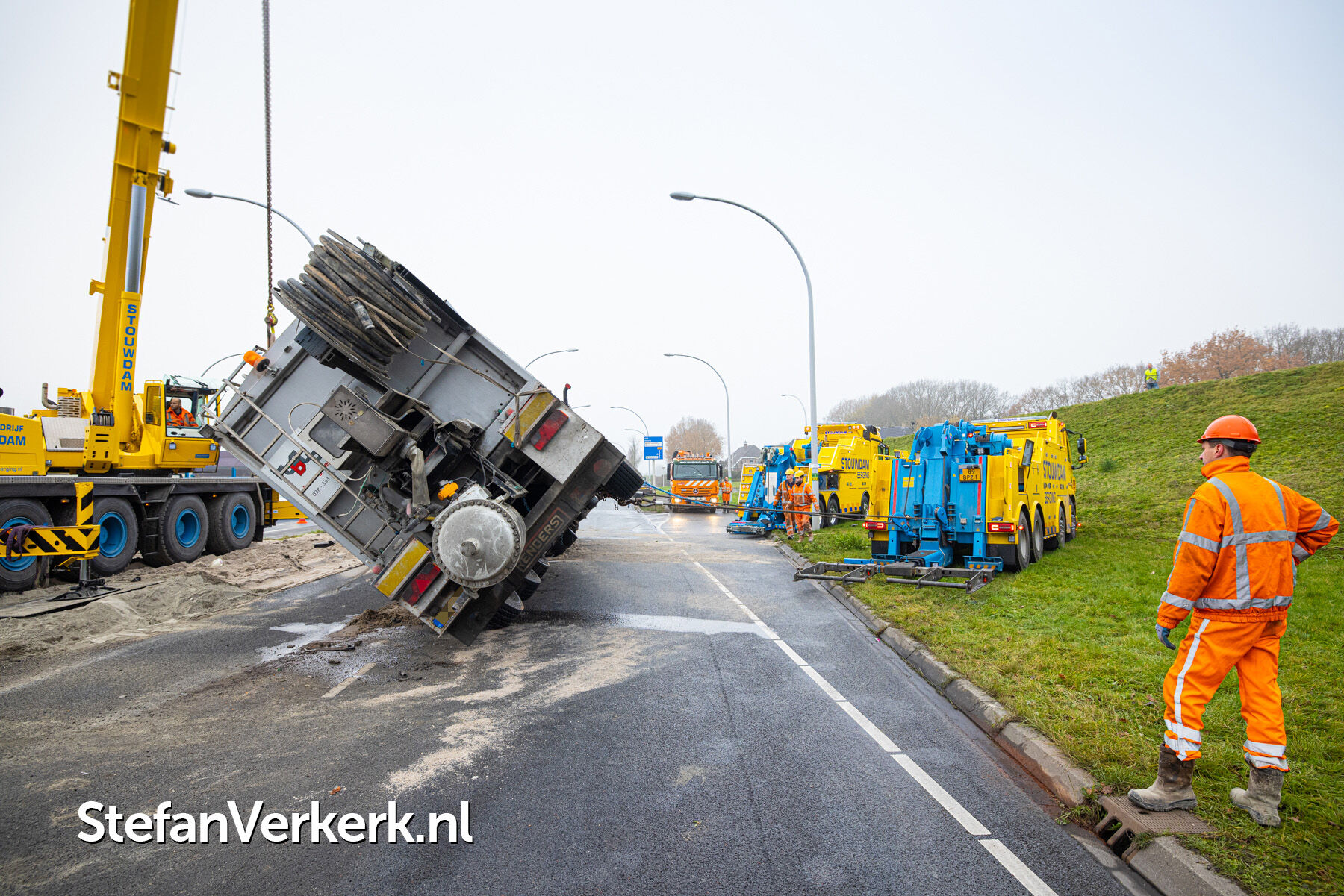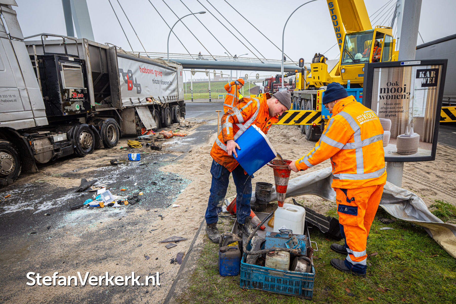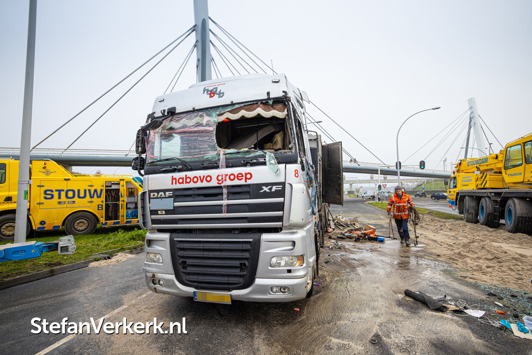 Foto's: Ongeval letsel gekantelde vrachtwagen Westenholterallee - Hasselterweg Zwolle