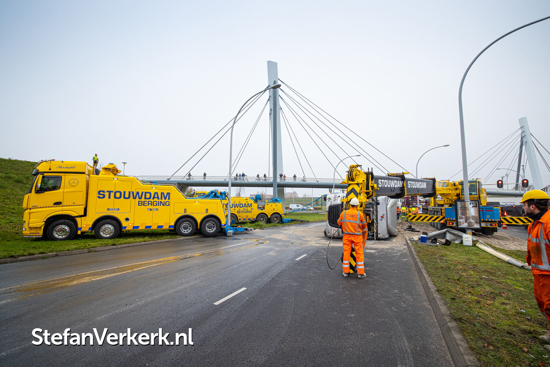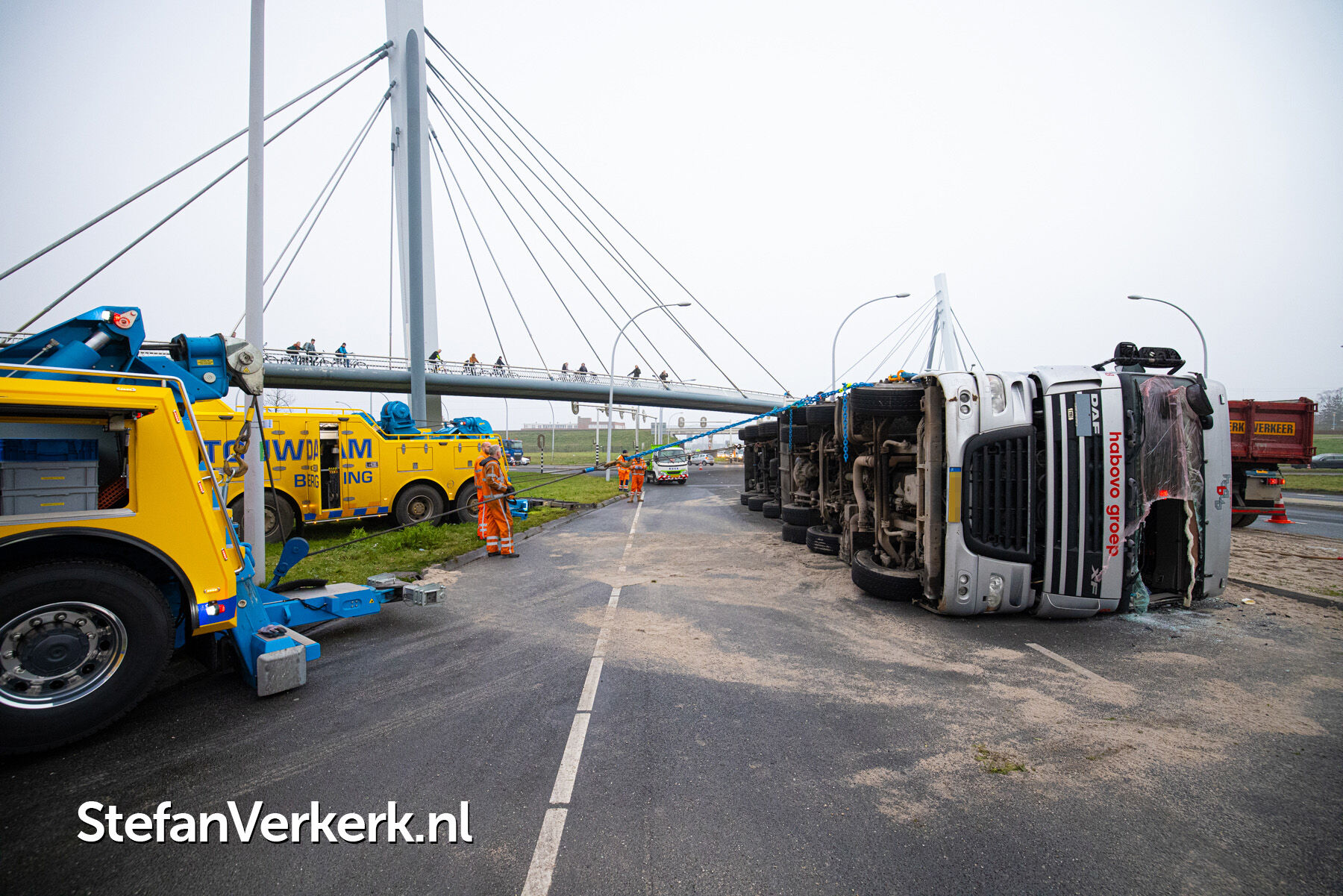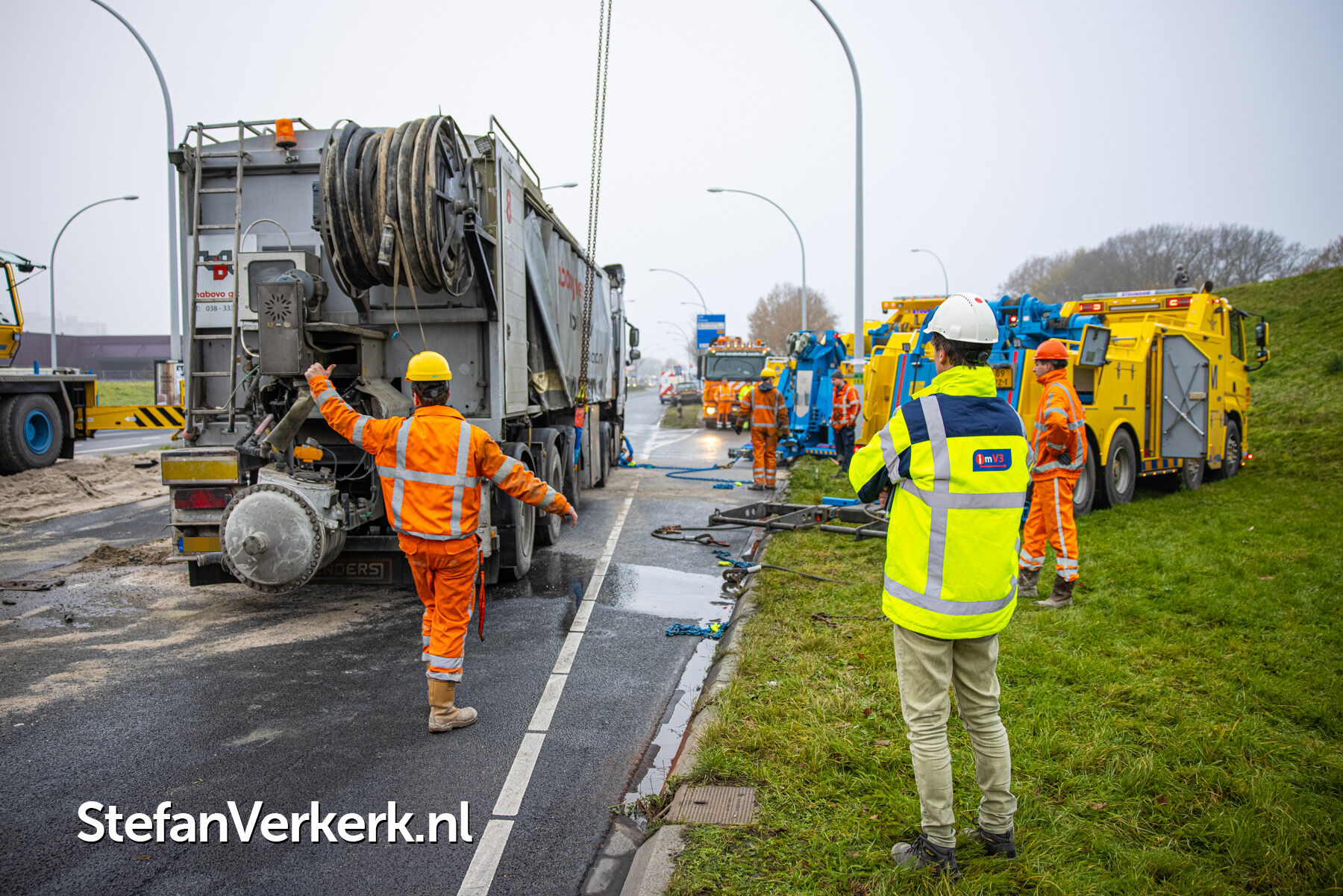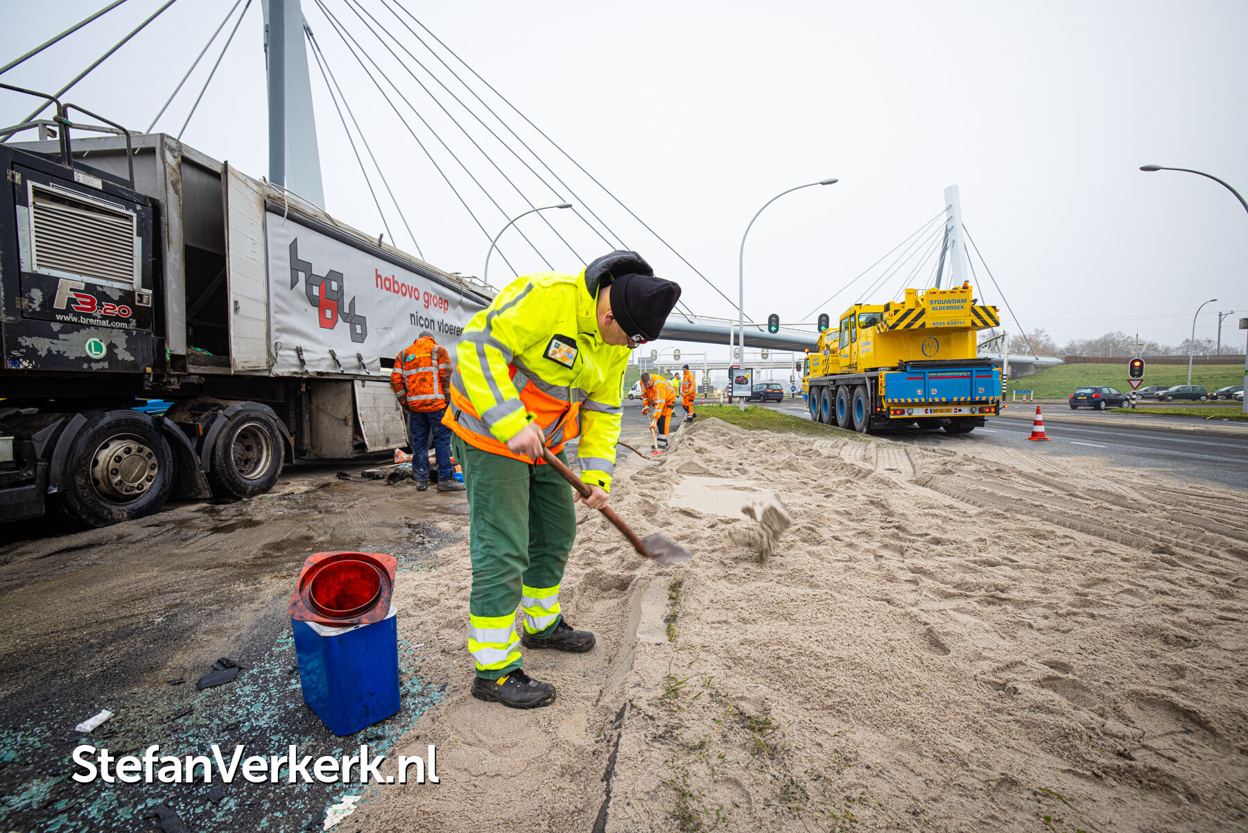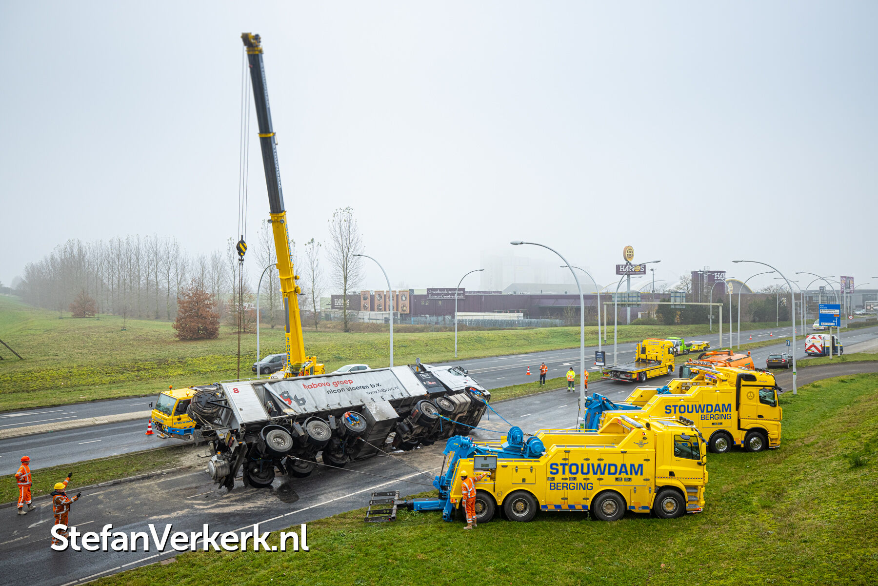 Foto's: Ongeval letsel gekantelde vrachtwagen Westenholterallee - Hasselterweg Zwolle