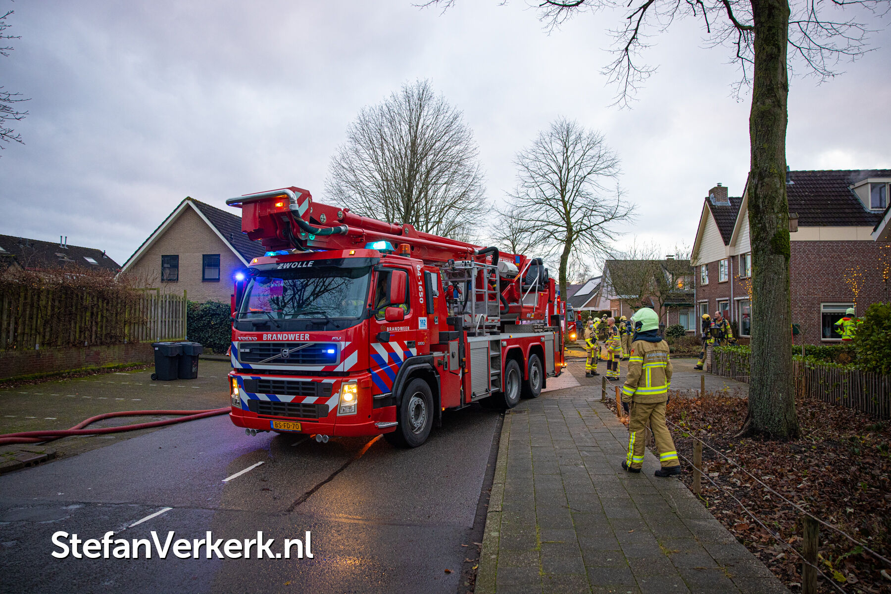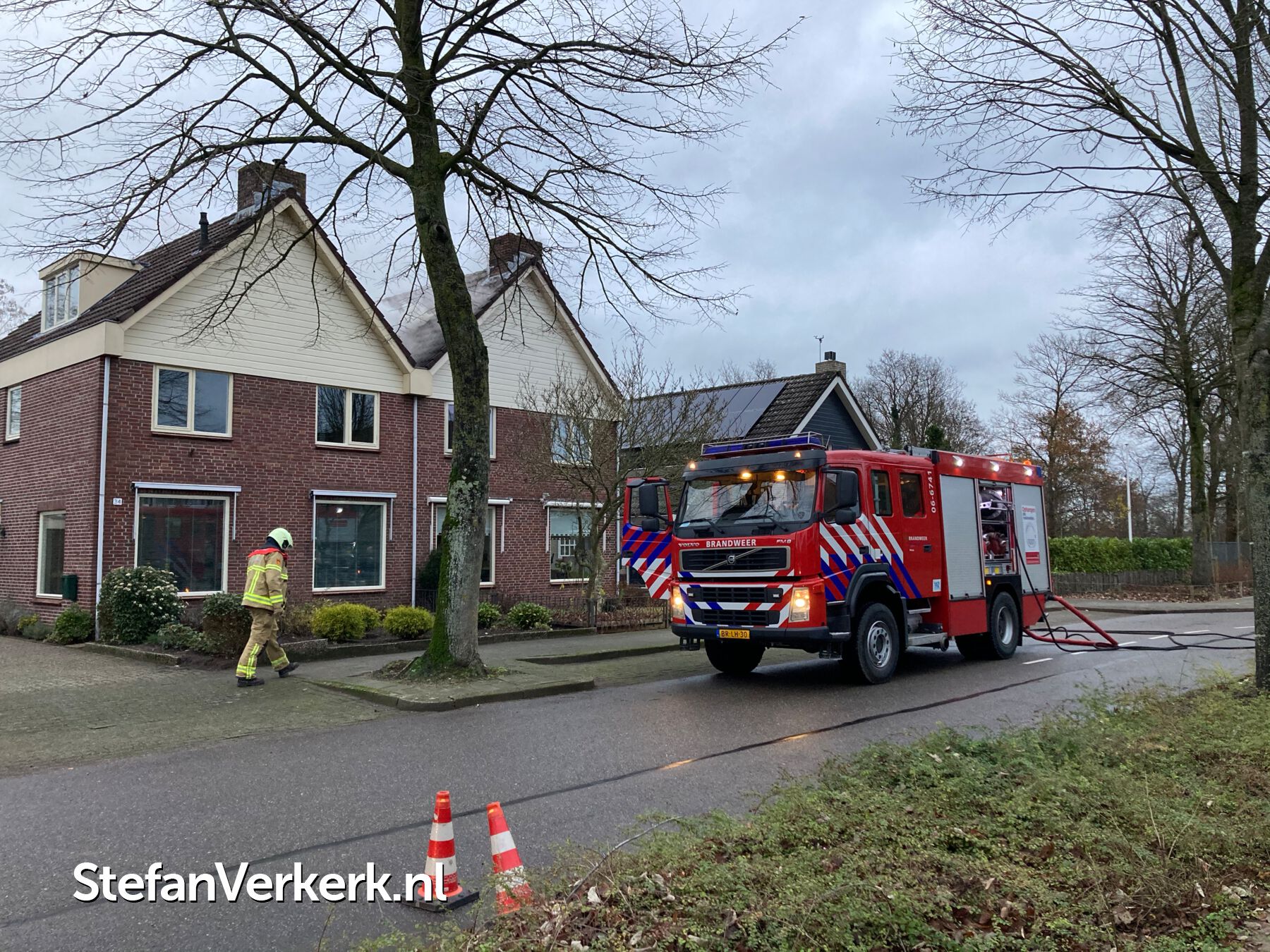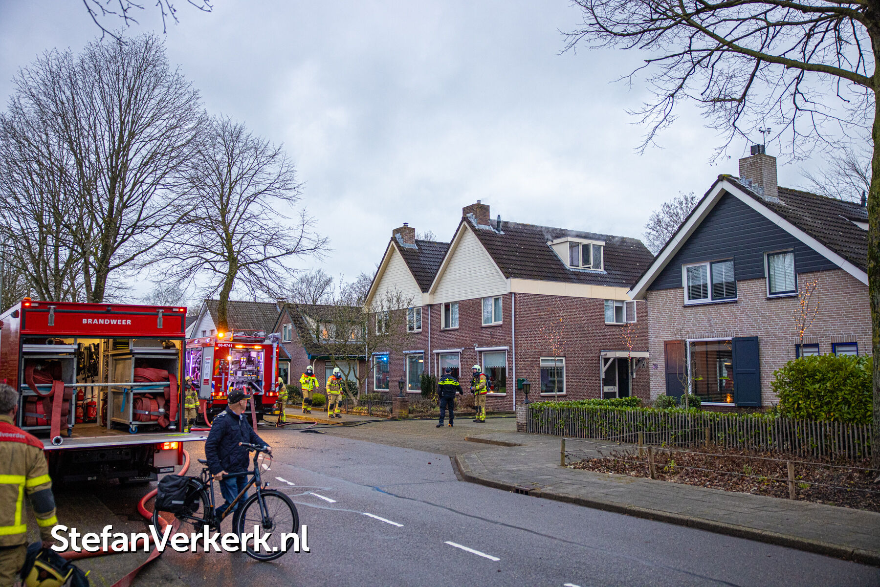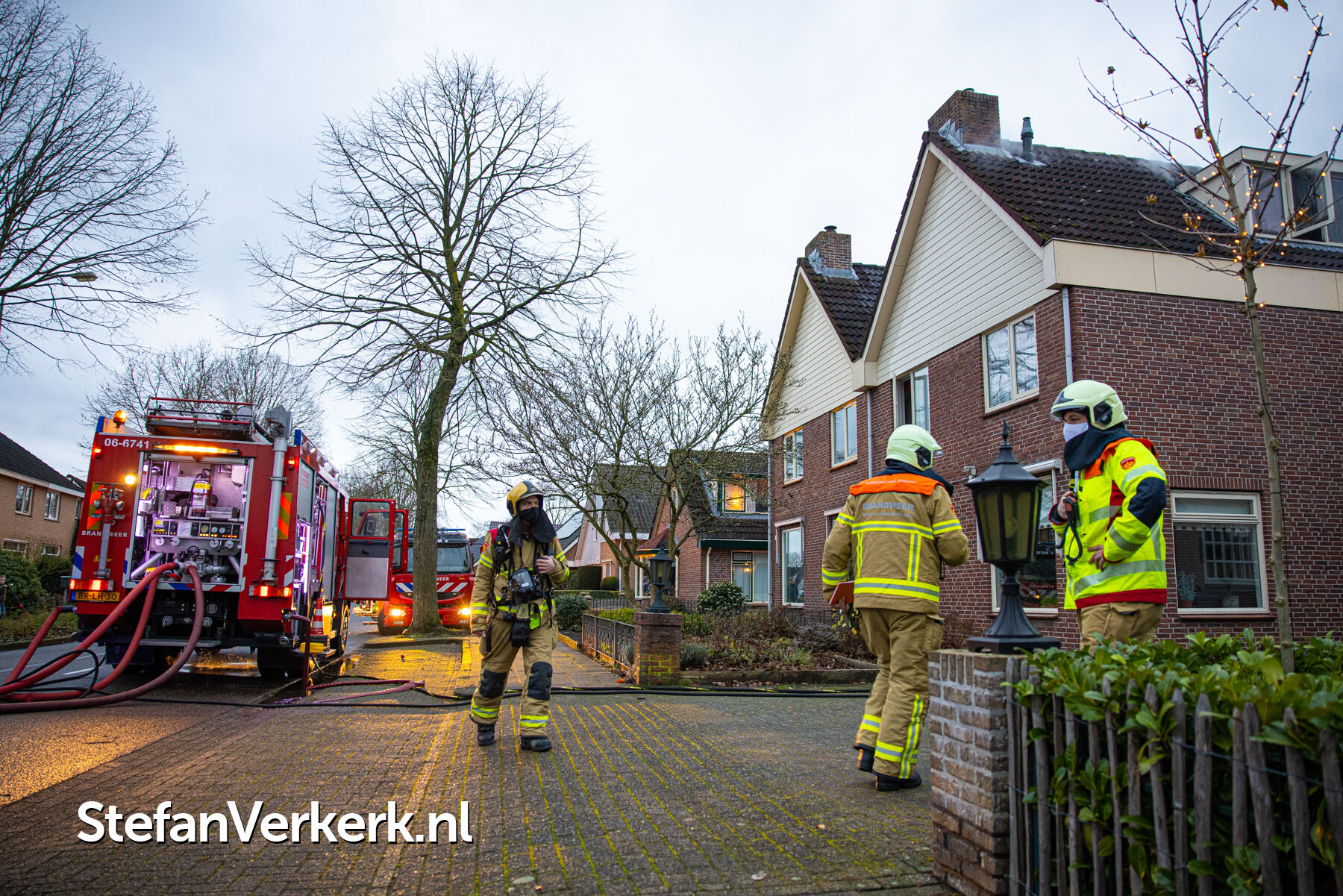 Foto's: Middelbrand woning zolder Verlengde Meidoornstraat Wezep