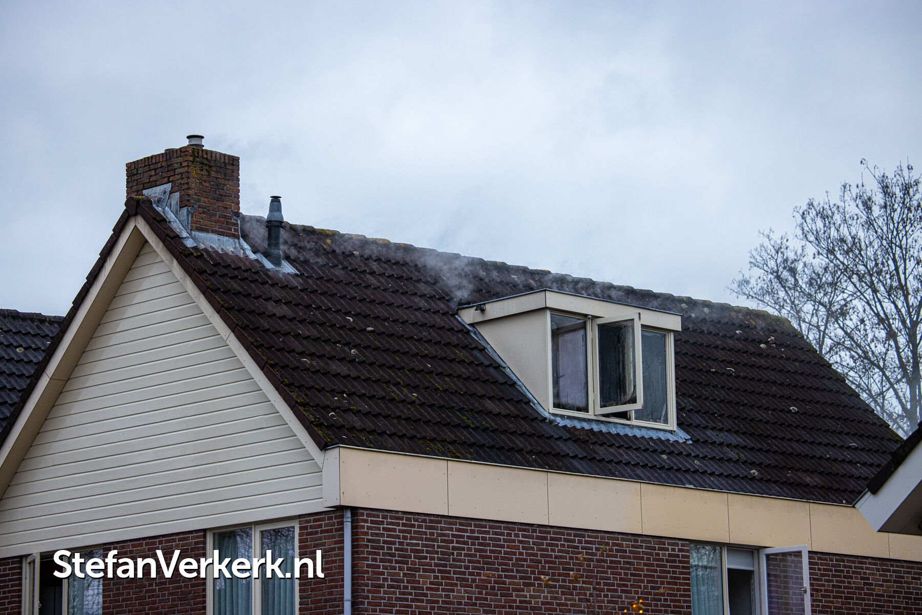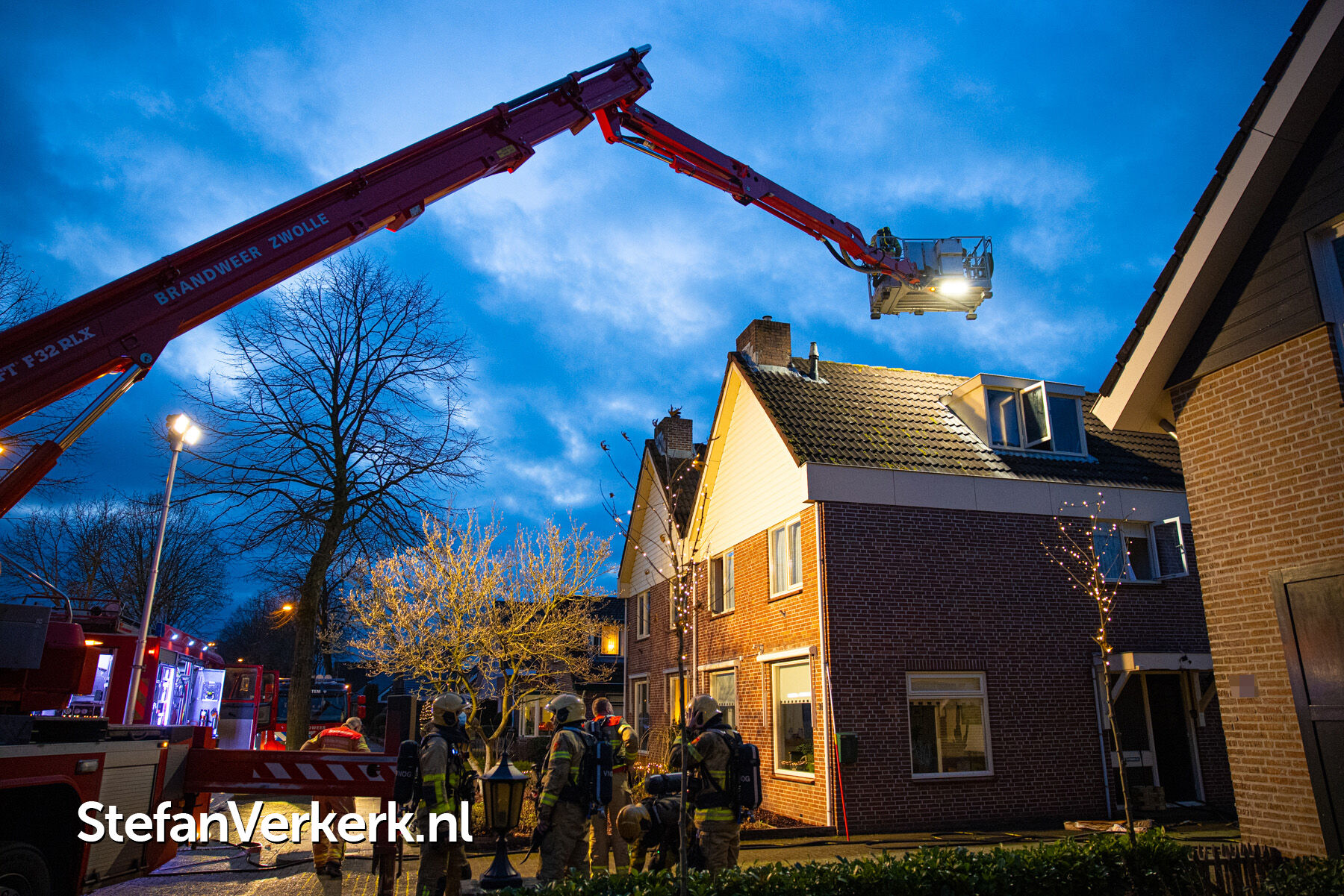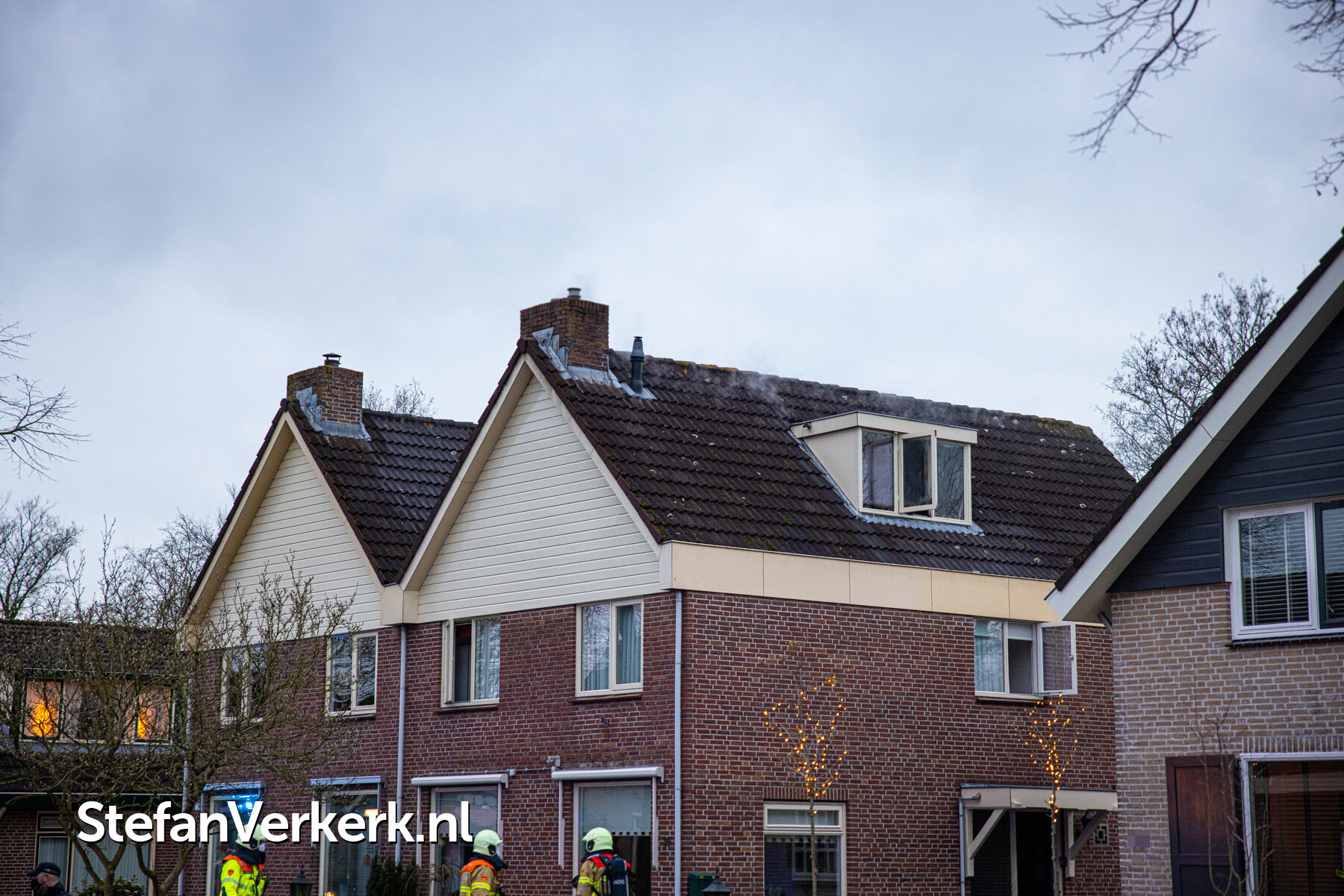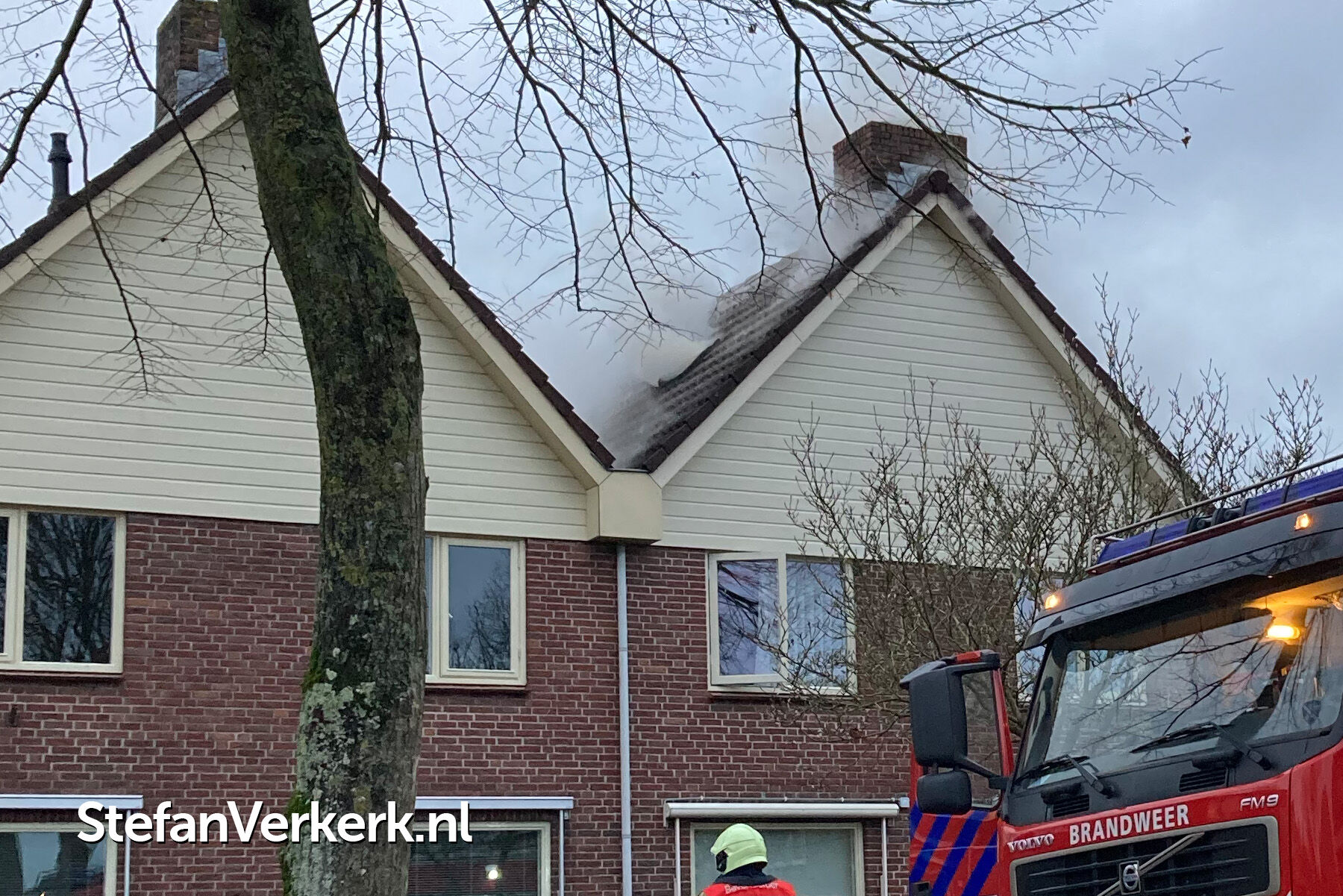 Foto's: Middelbrand woning zolder Verlengde Meidoornstraat Wezep