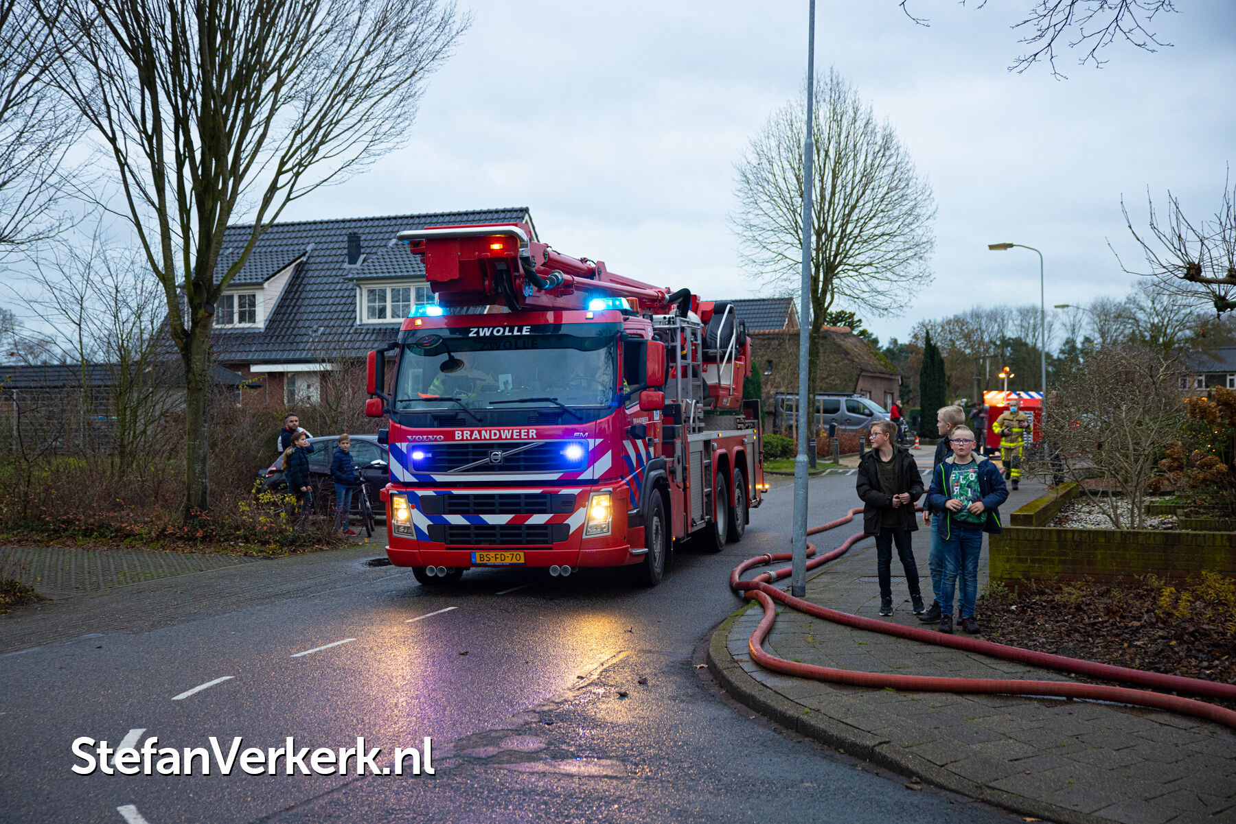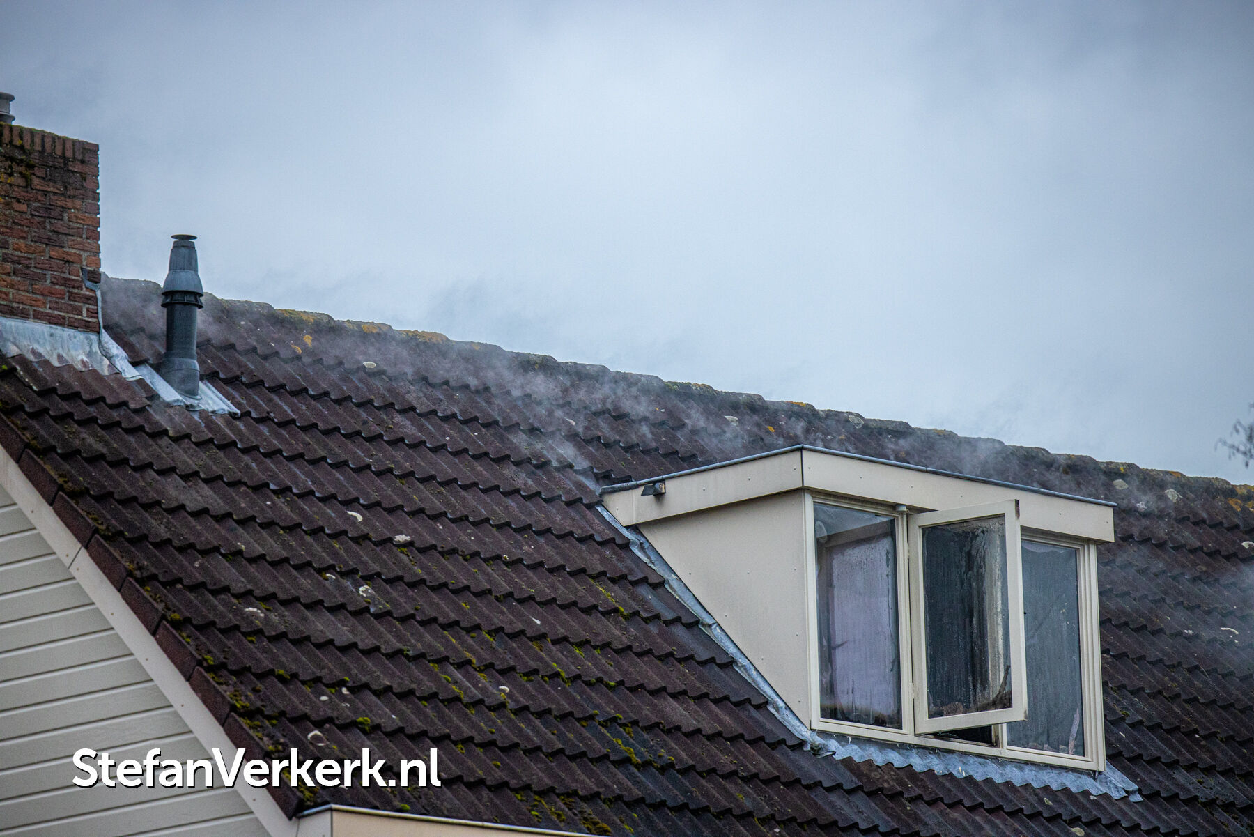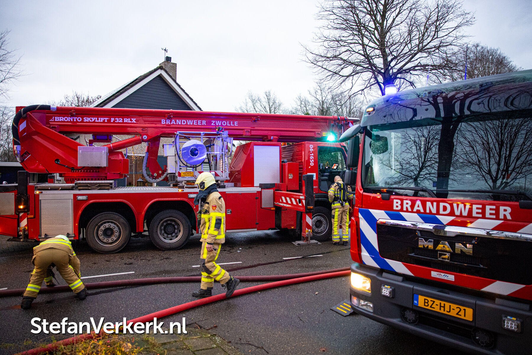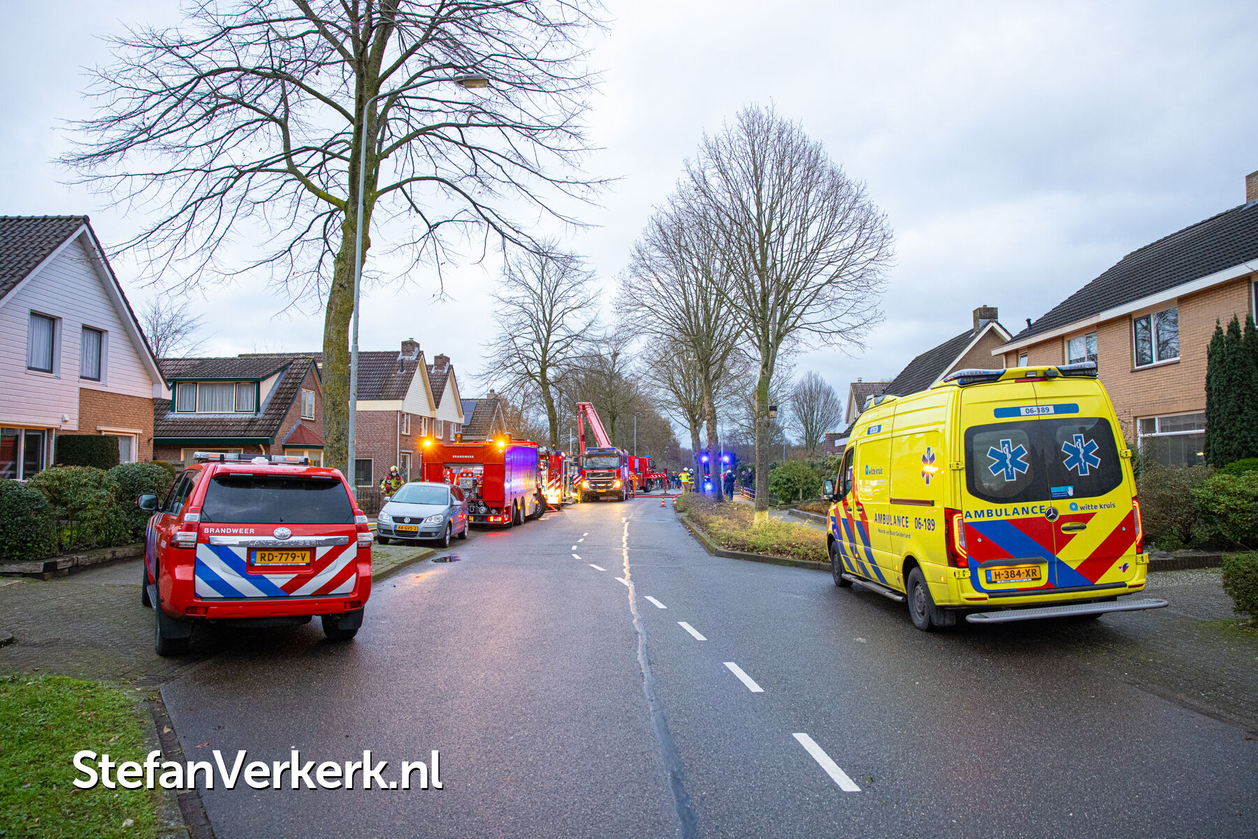 Foto's: Middelbrand woning zolder Verlengde Meidoornstraat Wezep