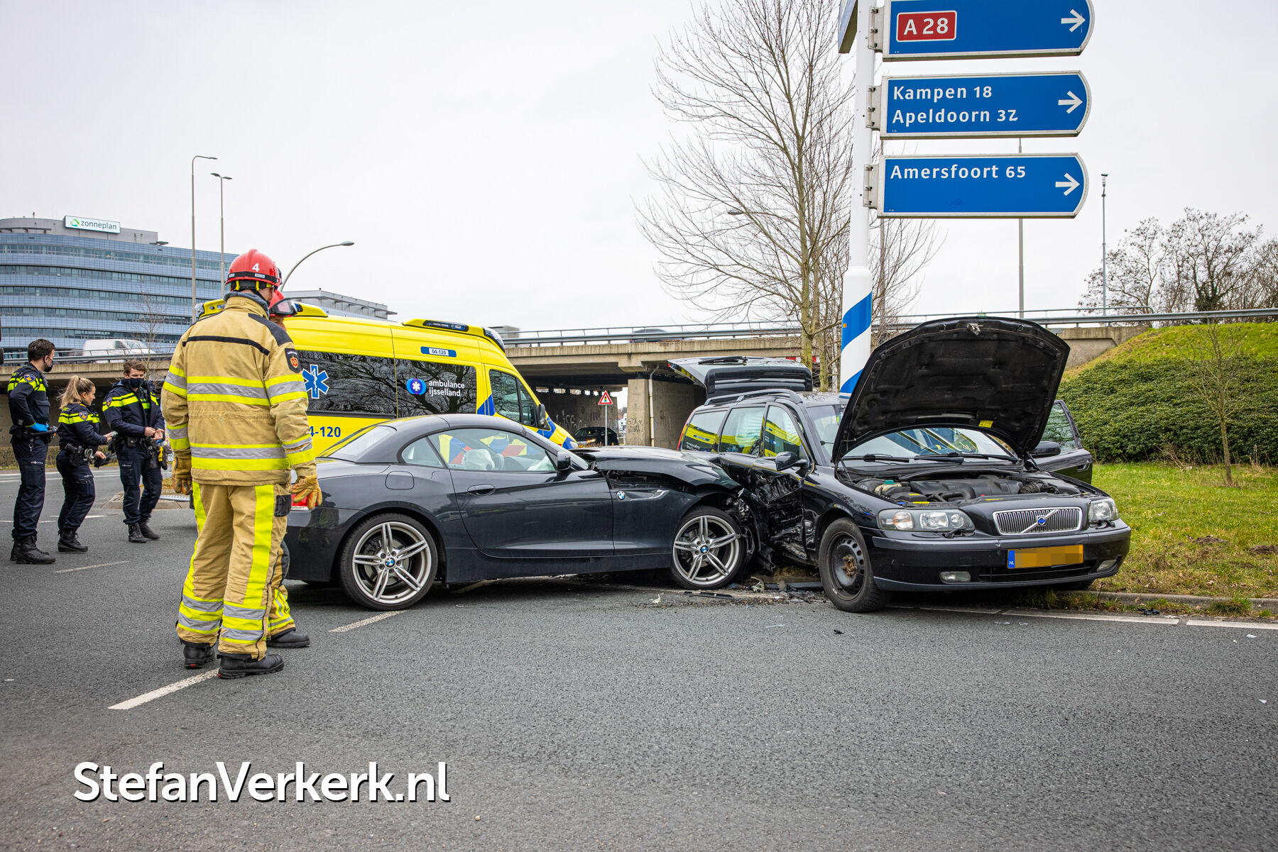 Foto's: Ongeval auto - auto Katerdijk - toerit A28 Zwolle-Centrum Zwolle