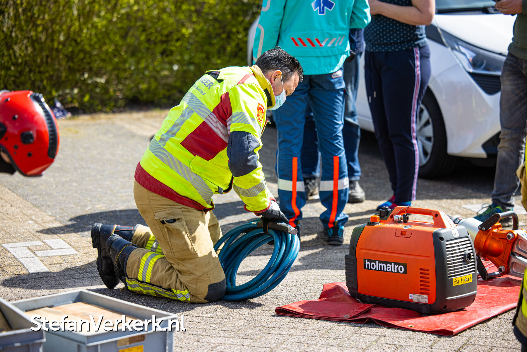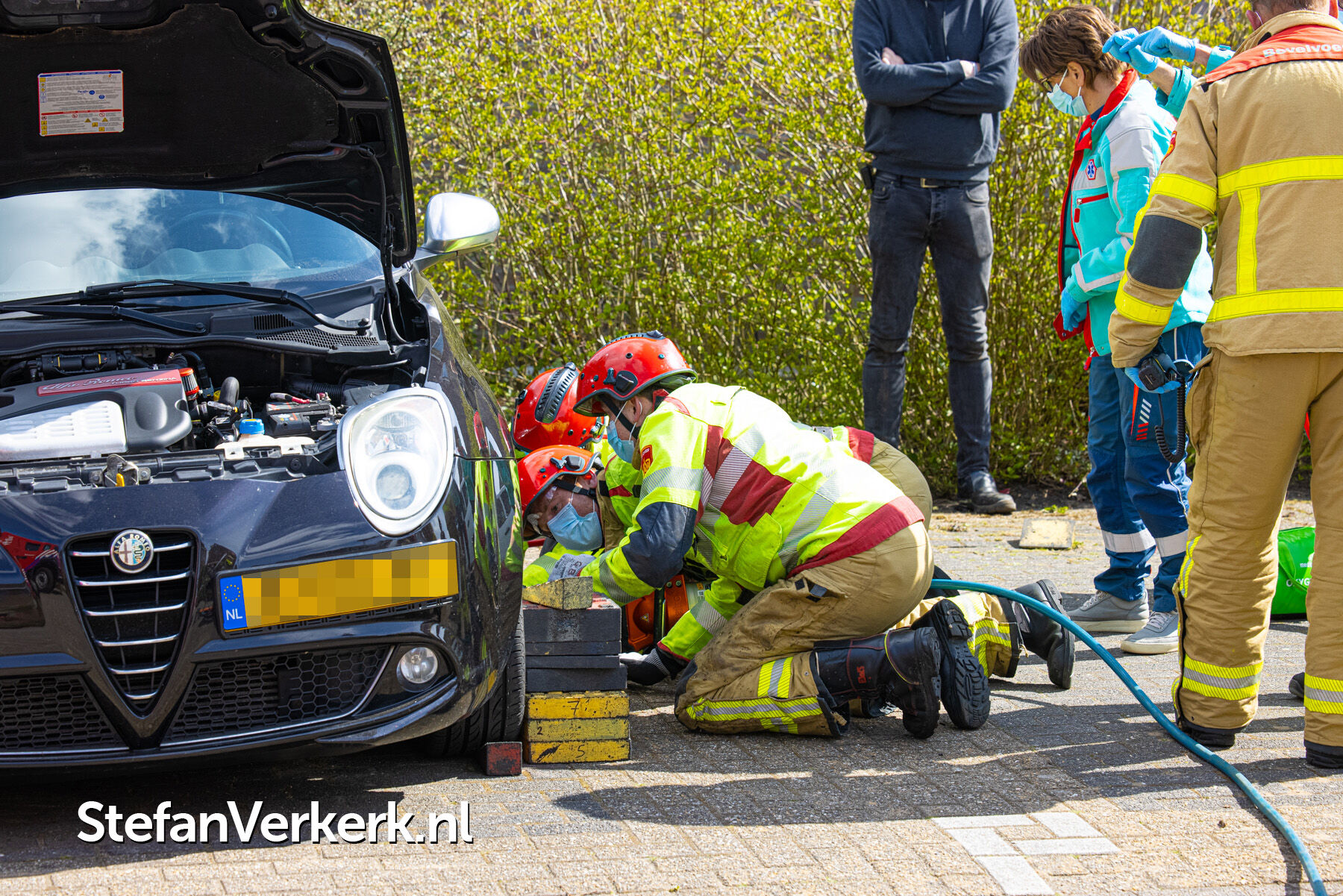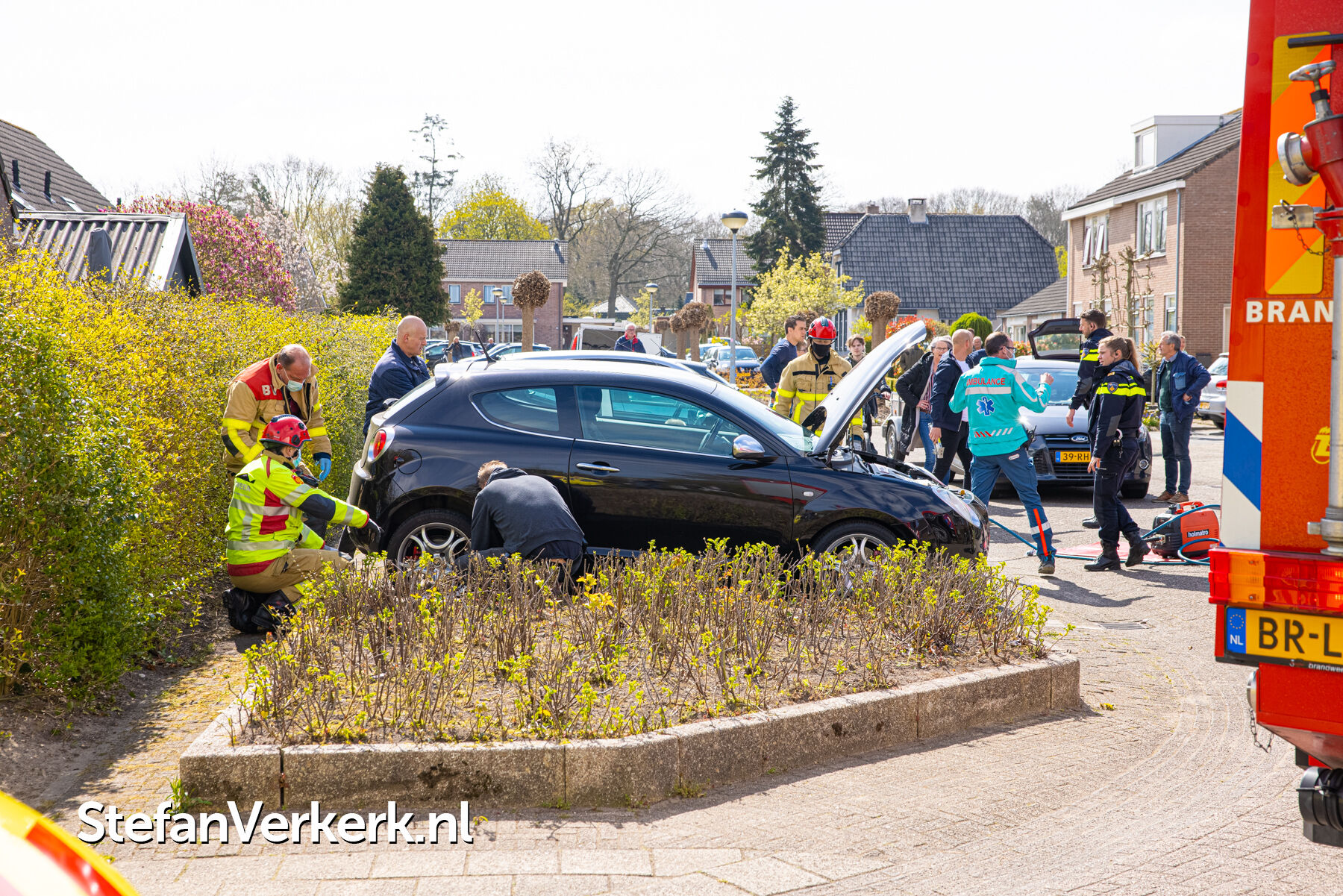 Foto's: Ongeval persoon vast onder auto tijdens sleutelen Koolzaadakker Wezep