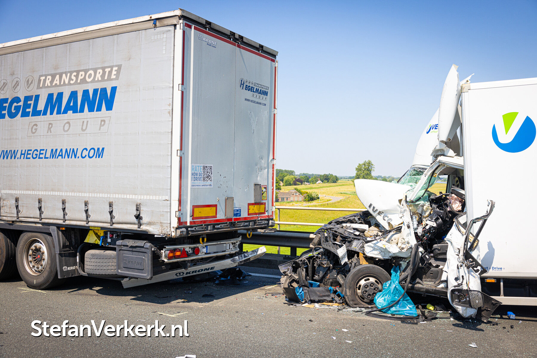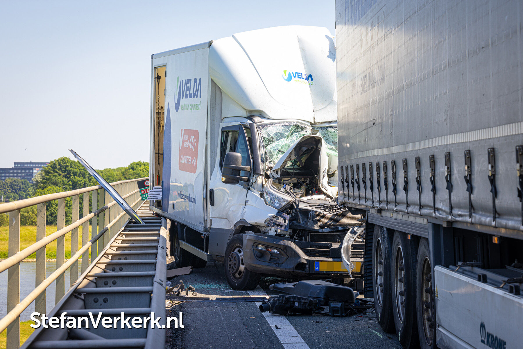 | Nieuwsbericht: | Chauffeur van bakwagen zwaargewond na botsing met vrachtwagen op de A28 bij Hattem |